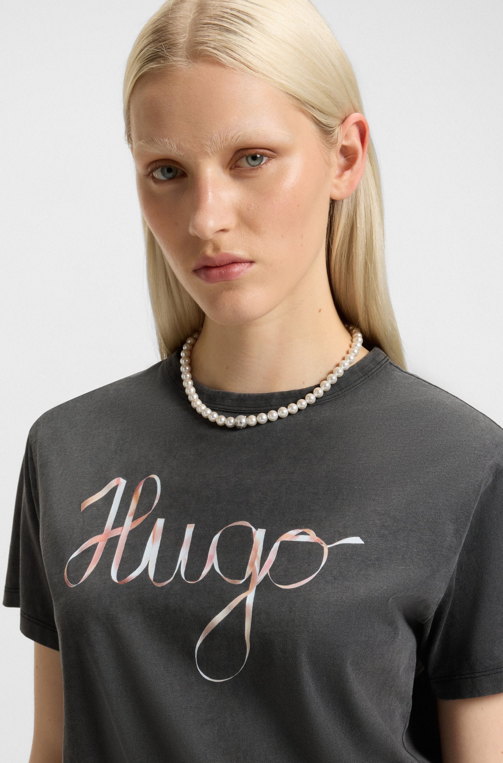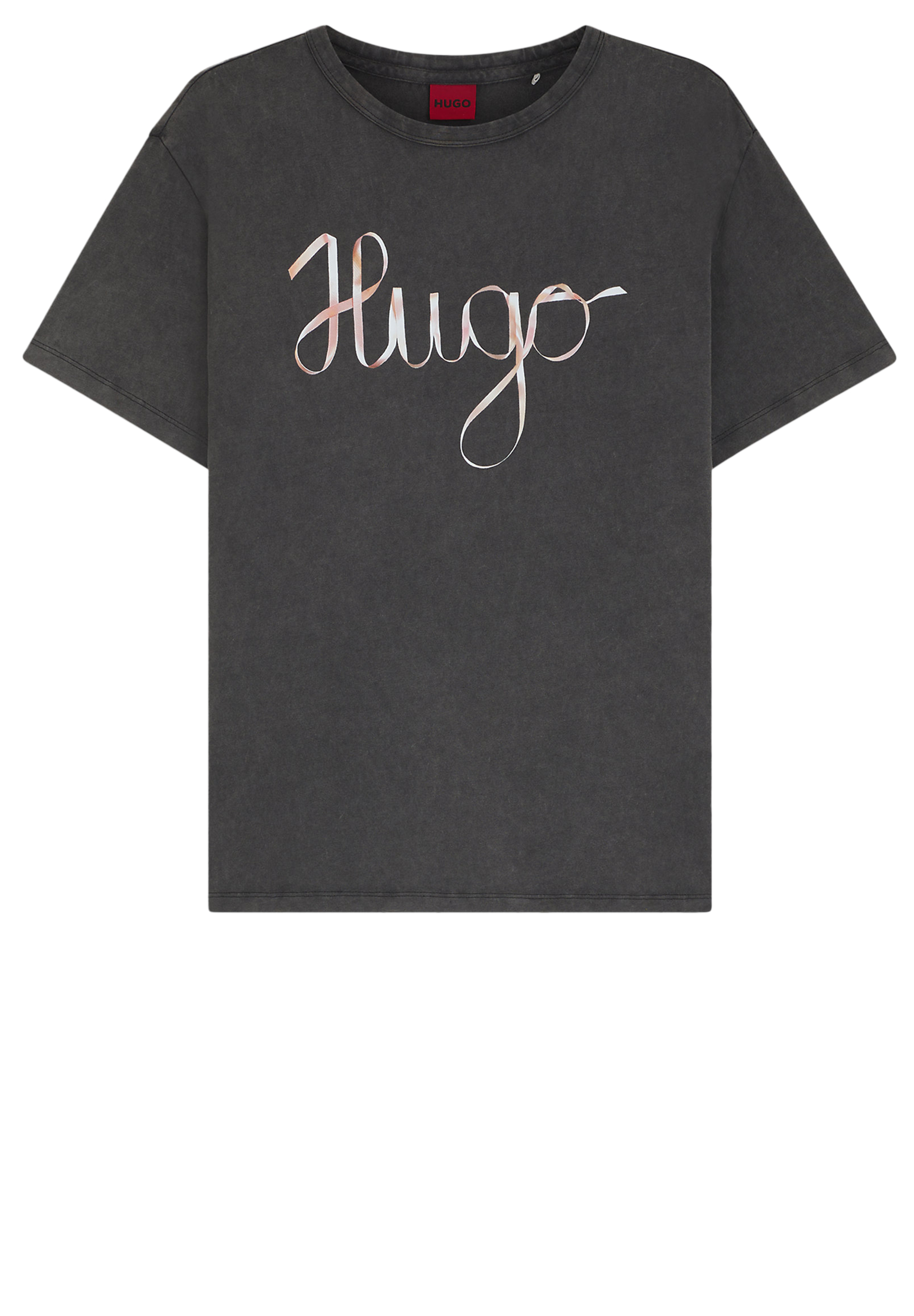 Bring frischen Wind in deine Casual-Garderobe mit diesem HUGO T-Shirt in gerader Passform. Das verspielte Logo-Motiv verleiht dem Design einen modernen Twist, während der weiche, gewaschene Baumwoll-Jersey für optimalen Komfort sorgt. Zudem besteht das Shirt zu mindestens 60 % aus nachhaltigeren Materialien – für einen stylischen und verantwortungsbewussten Look.