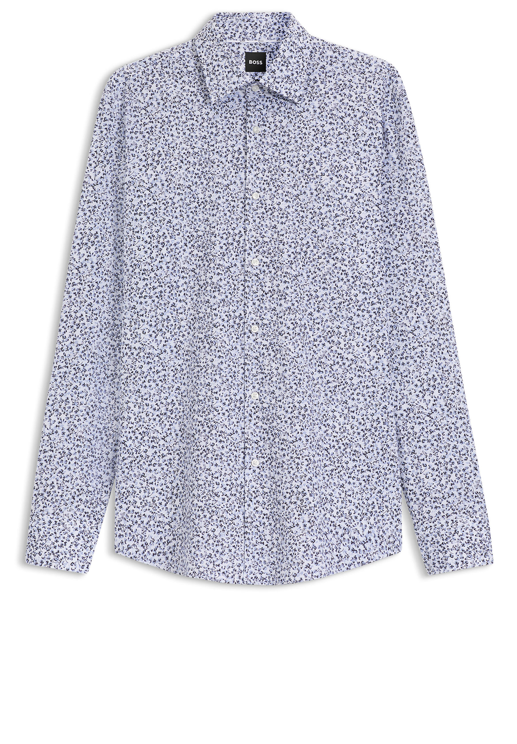 Das schmal geschnittene BOSS Hemd ist durchgehend mit einem zeitgemäßen Blumen-Print bedruckt. Aus elastischer Baumwolle mit softer Popeline-Struktur.