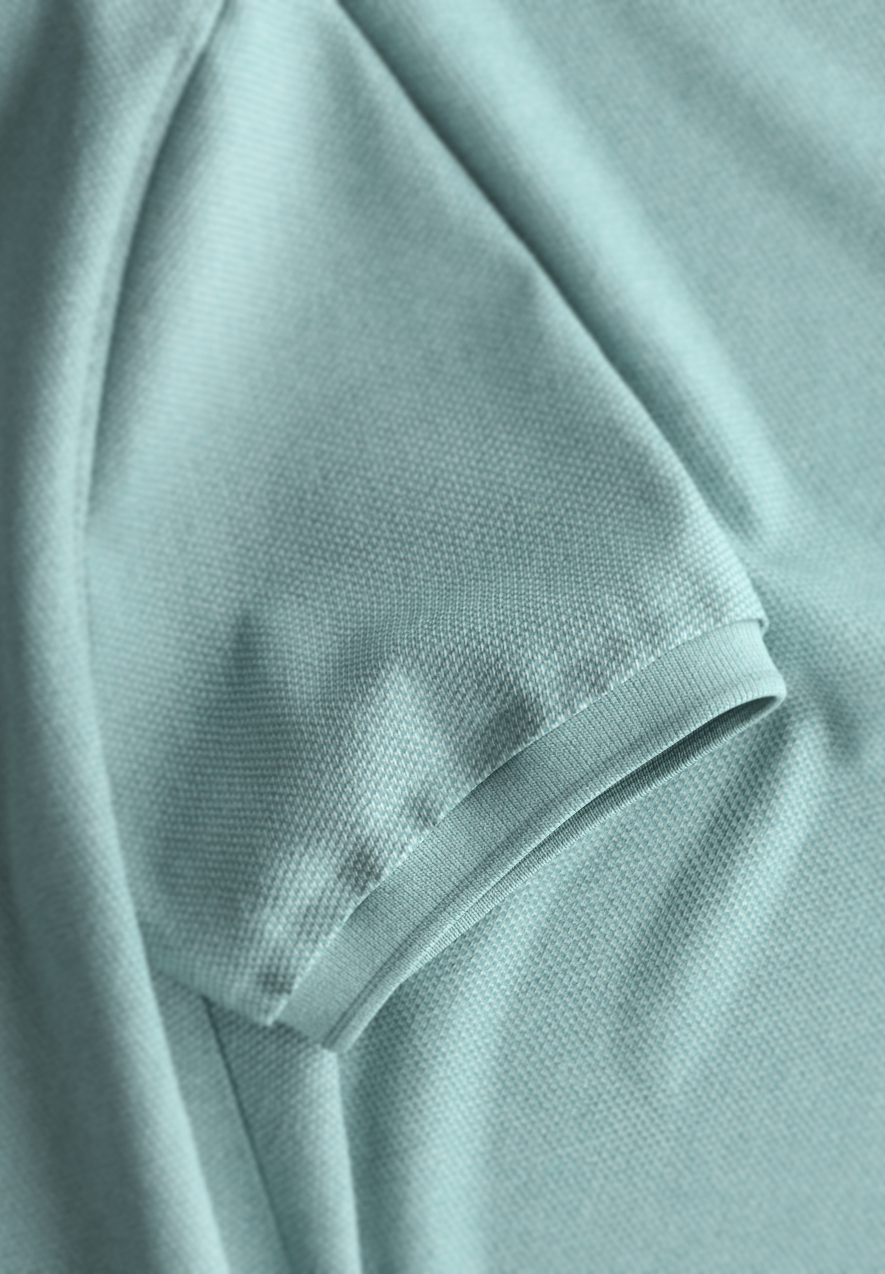 • Gerippter Polokragen mit kurzer Knopfleiste