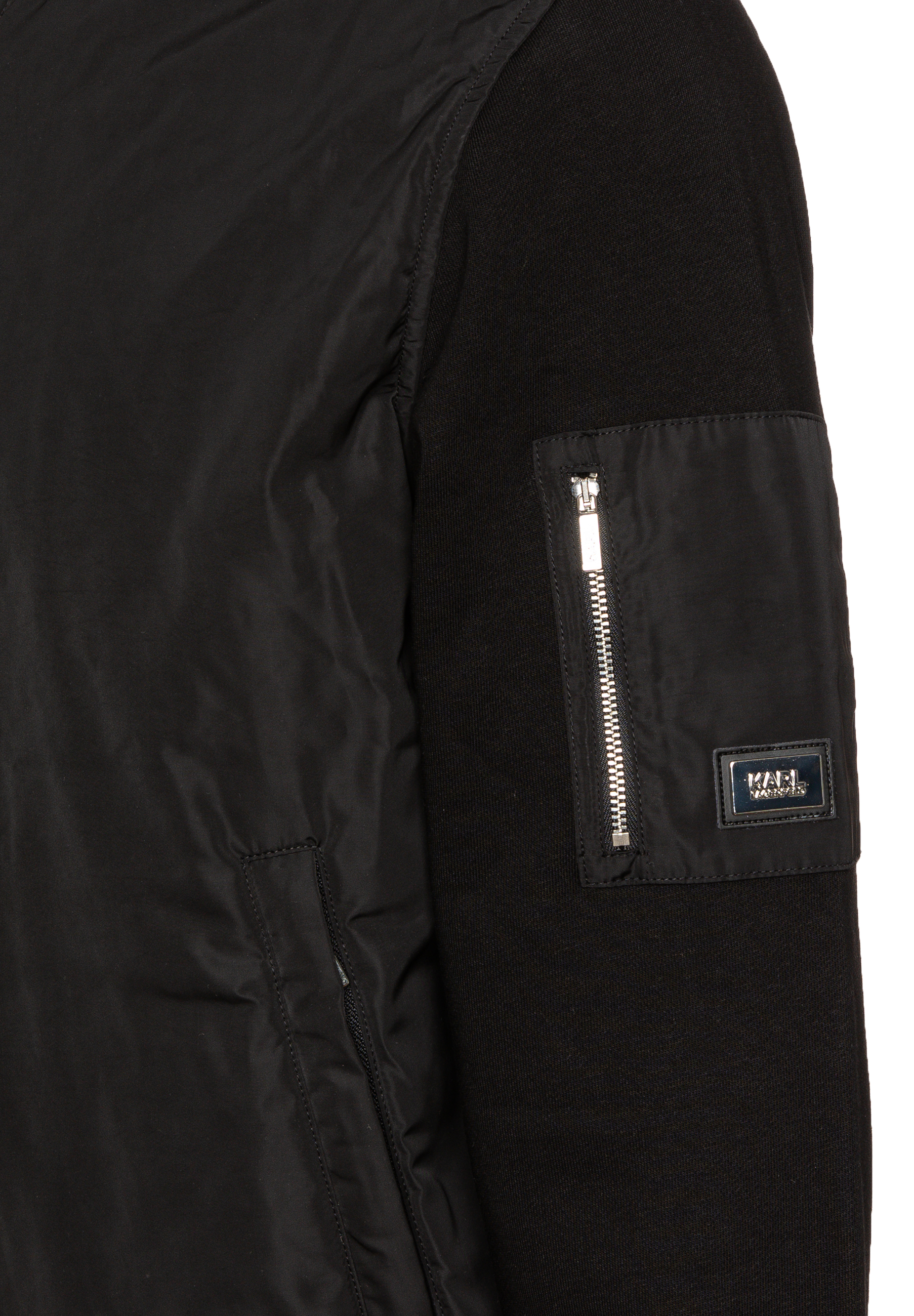 Die perfekte Symbiose aus modernem Design und markanter Silhouette: Diese Bomberjacke von KARL LAGERFELD ist ein echtes Statement-Piece für stilbewusste Männer. Die glatte Vorderseite im Nylon-Look kontrastiert stilvoll mit den Strickärmeln und dem gerippten Saum. Silberfarbene Reißverschlüsse und die charakteristischen Ärmeltaschen runden das Design funktional und trendstark ab.