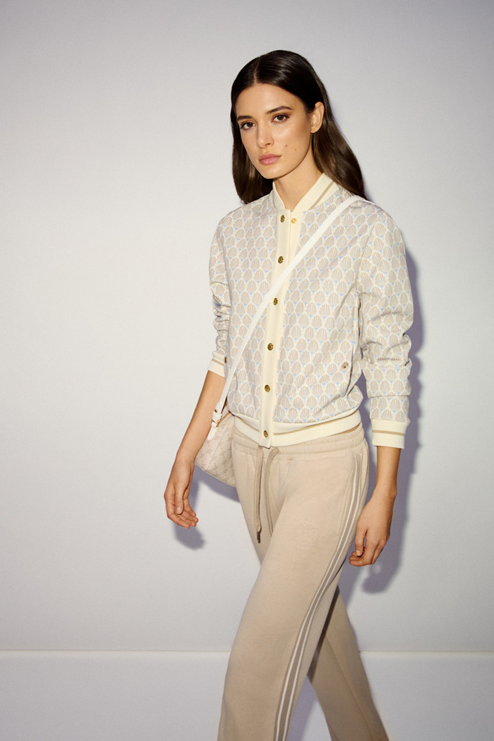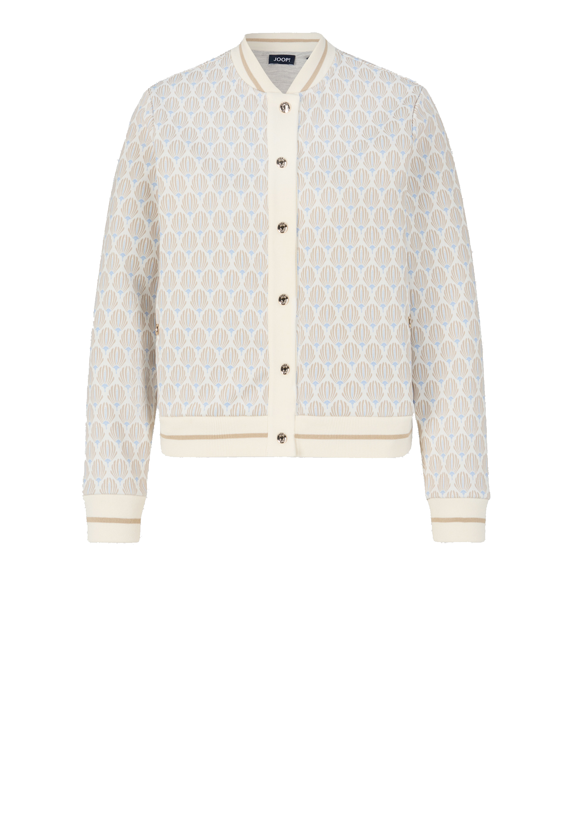 Die Collegejacke Tjara begeistert im Signature-Design mit Cornflower-Print – perfekt im Match mit Joggpants Tullla. Gerippte Bündchen, die durchgehende Druckknopfblende sowie der klassische Collegekragen zeichnen den Style aus. Für Komfort sorgt die stretchige Qualität im Baumwollmix.
