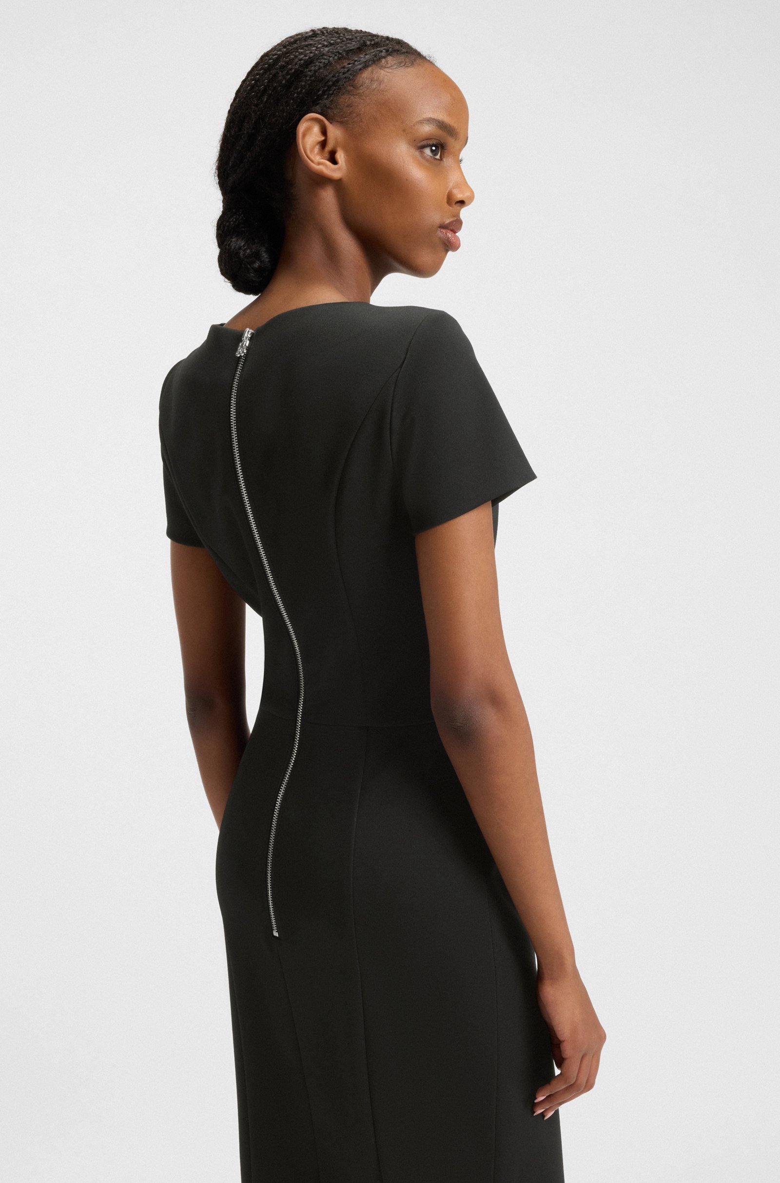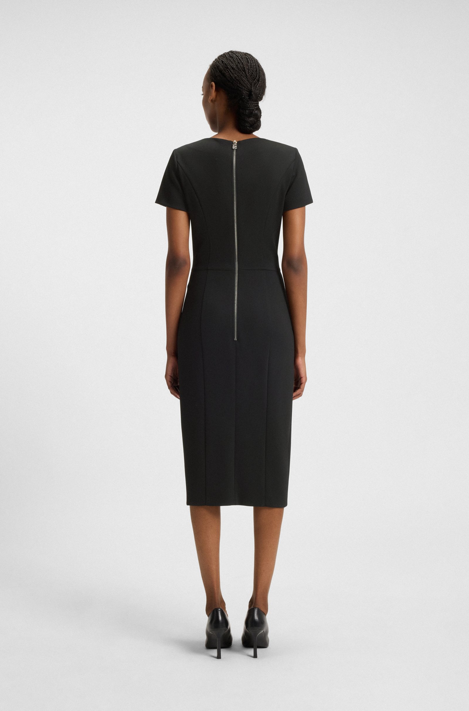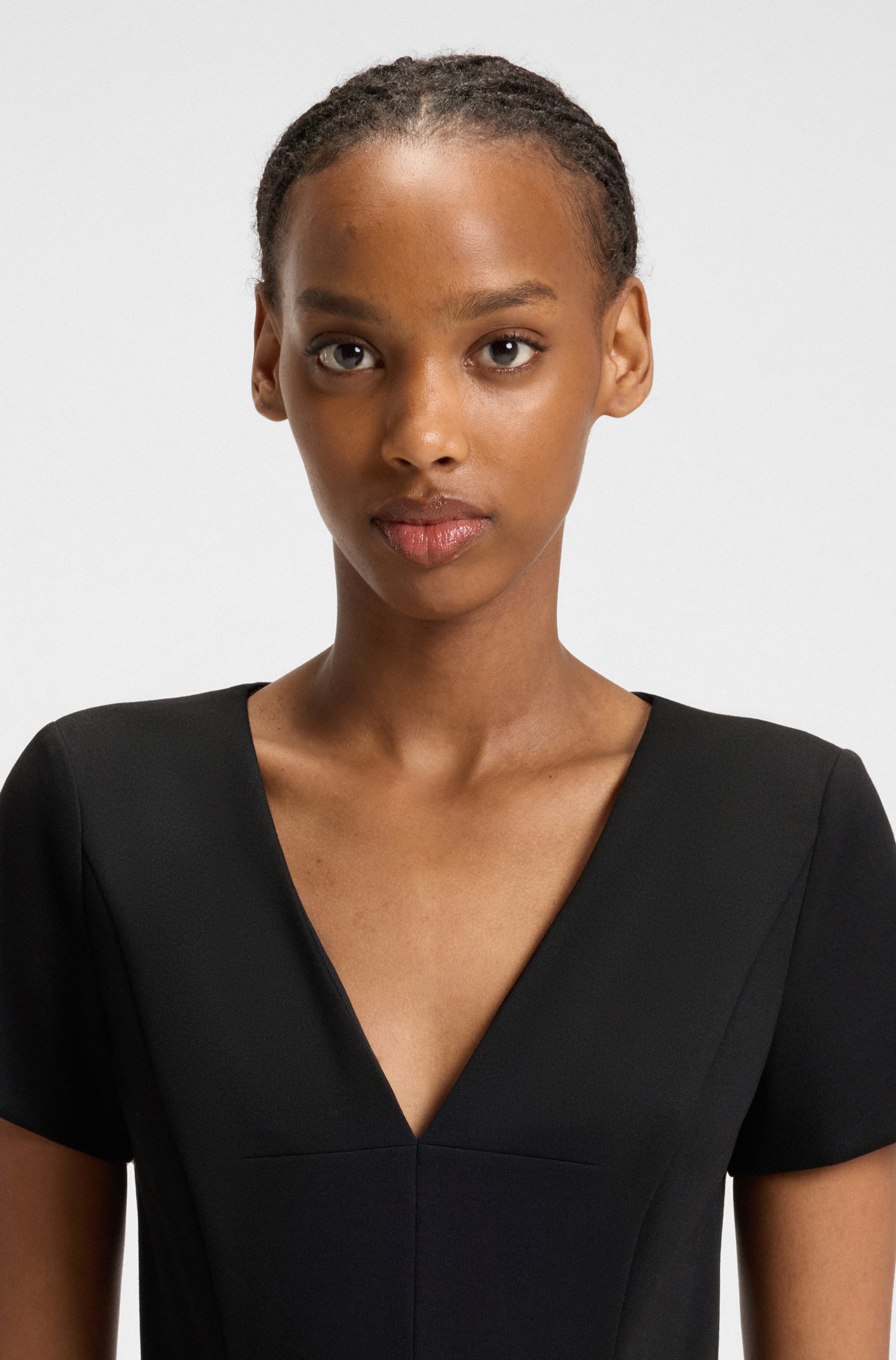 HUGO Midikleid aus Stretch-Gewebe. Der figurbetonte Style mit V-Ausschnitt hat ein glattes, bequemes Innenfutter.