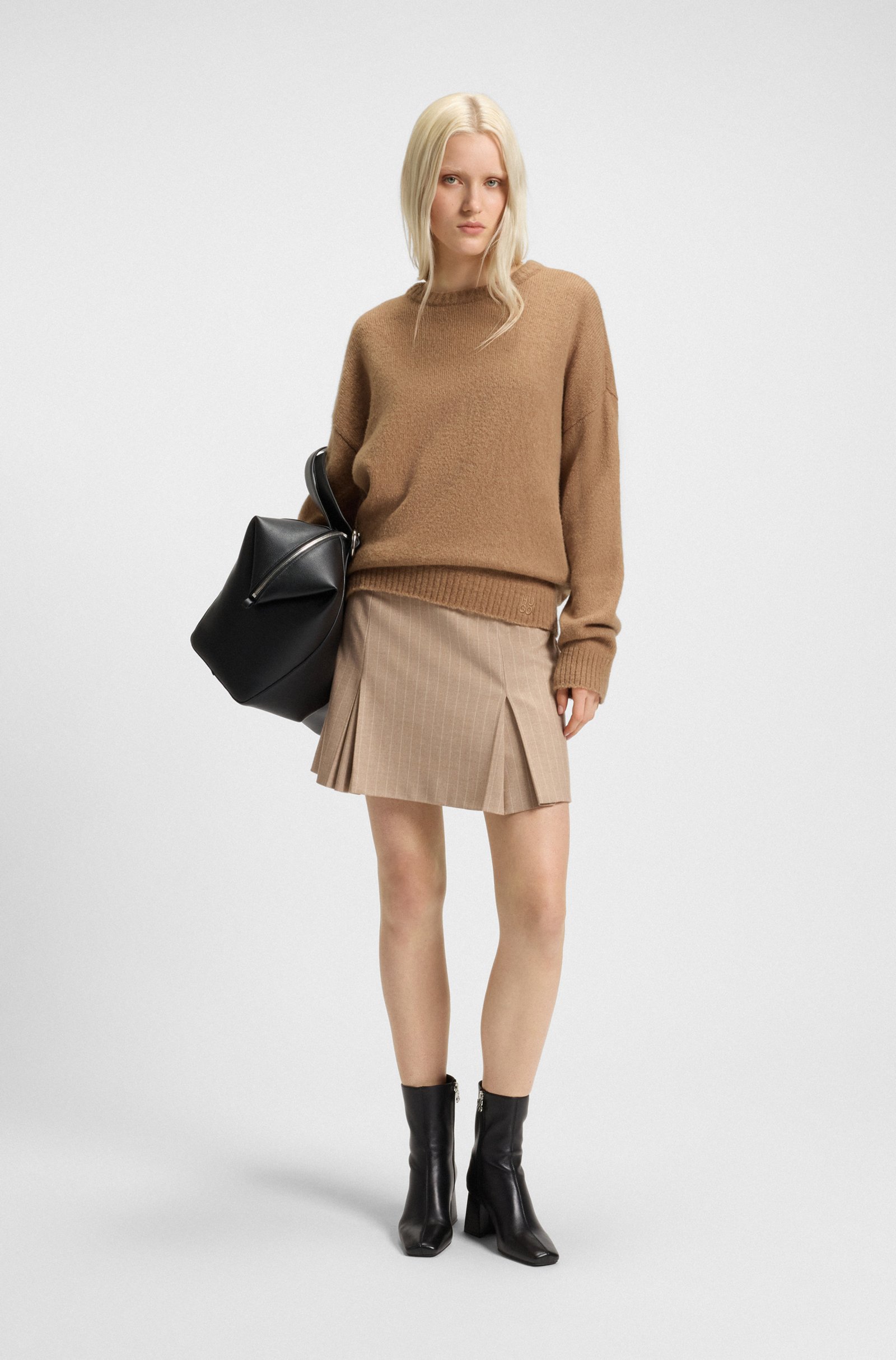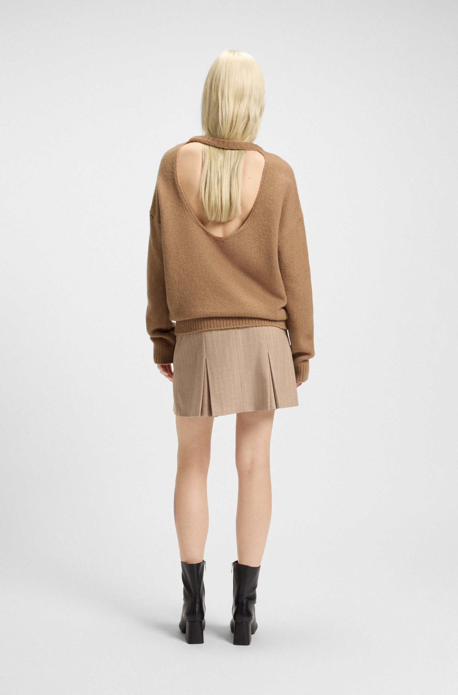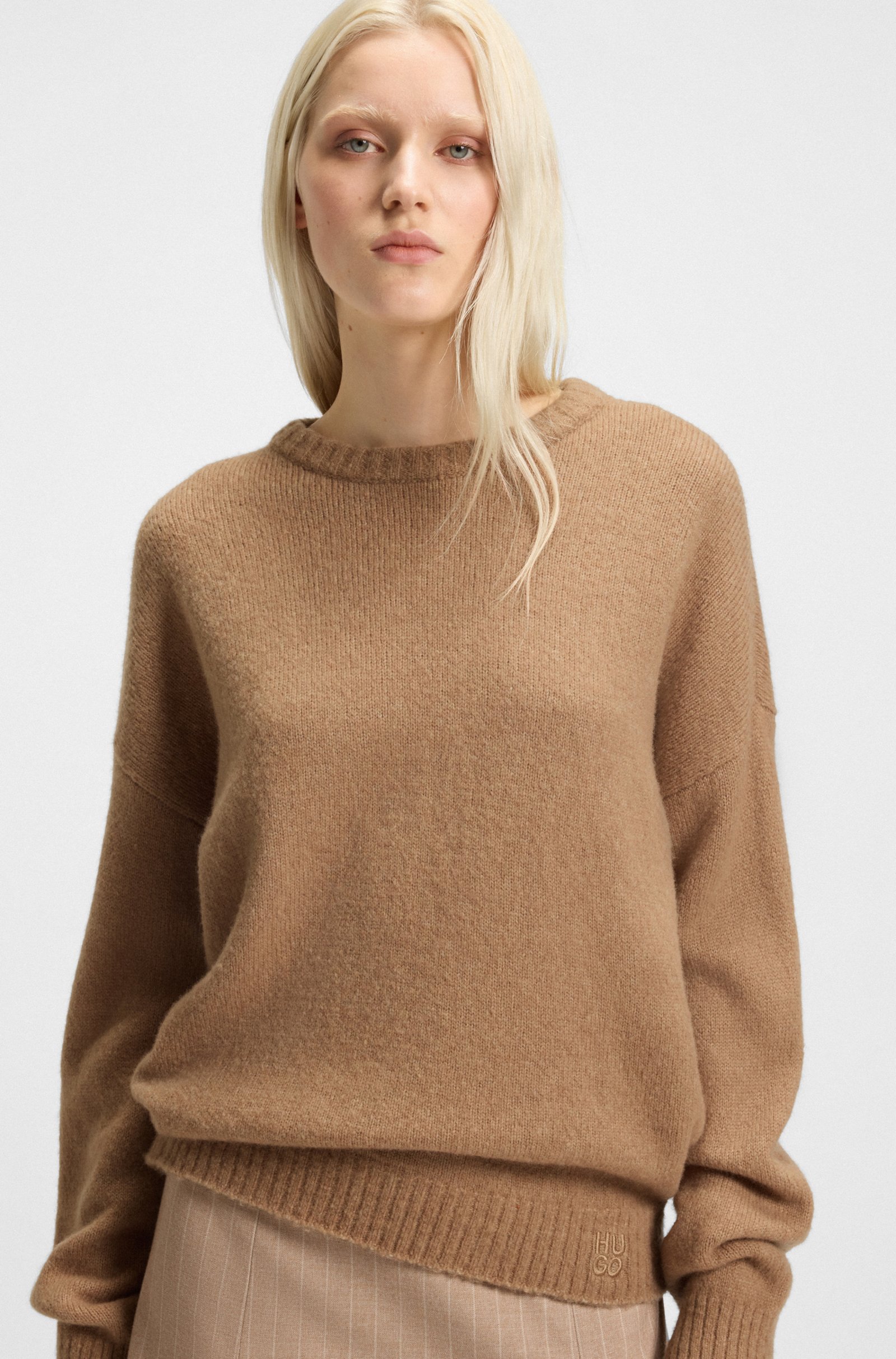 Der extra weit geschnittene HUGO Pullover mit Cut-out am Rücken ist ein fresher Layer für die Saison. Aus einem soften Woll-Mix gestrickt.