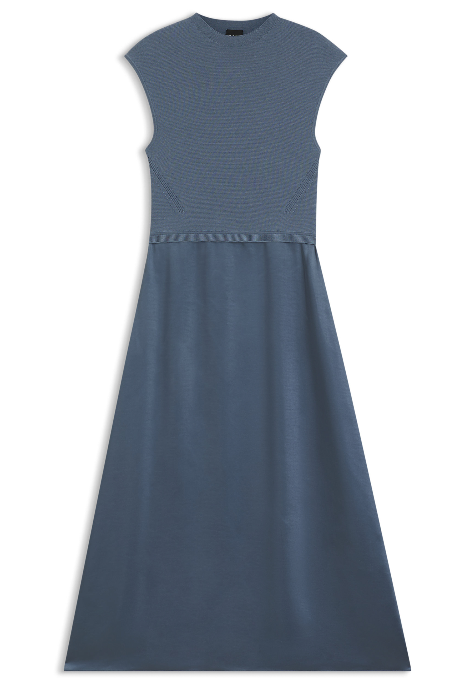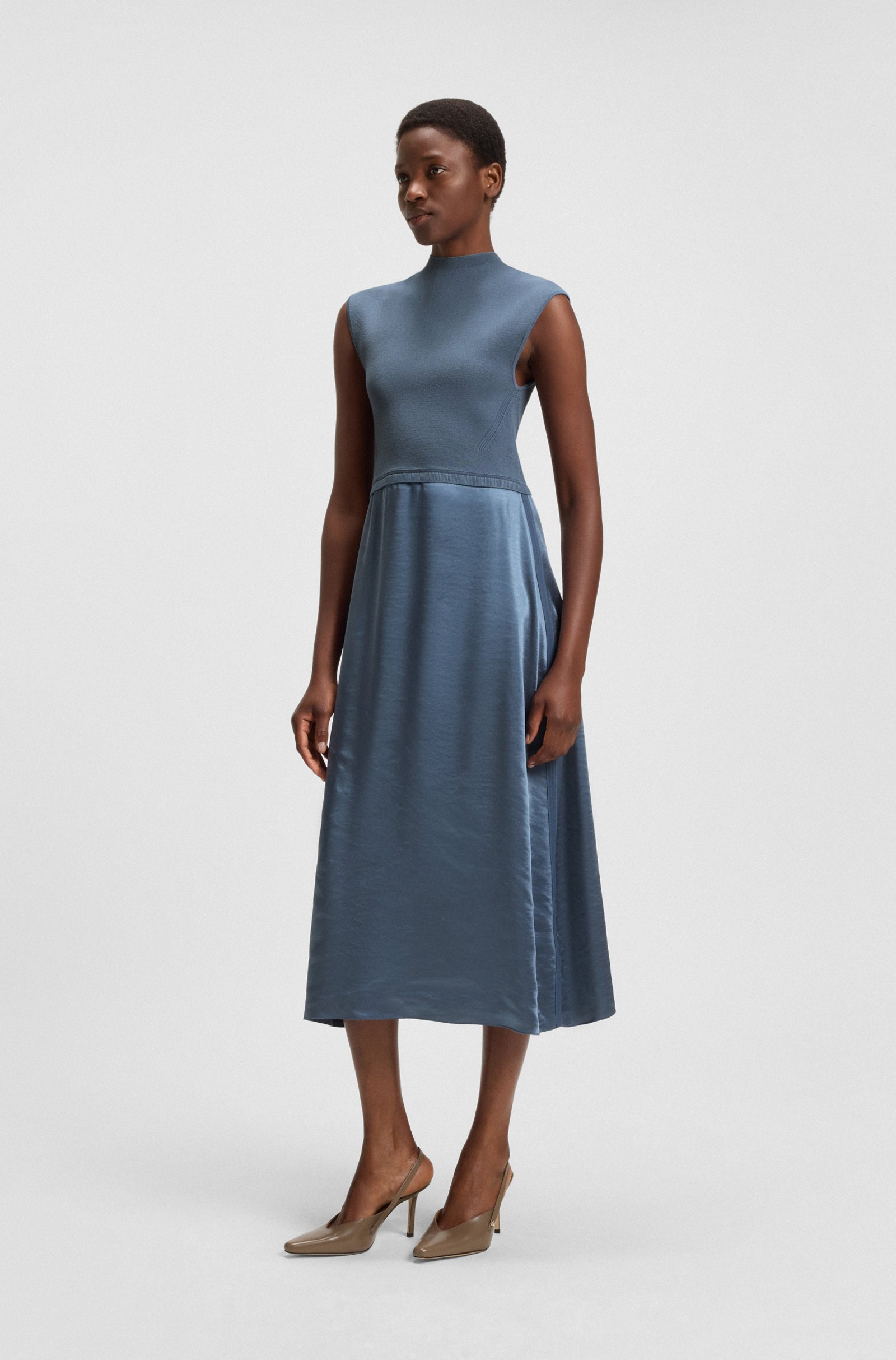Das BOSS Kleid kombiniert glatten Satin mit weichem Strick zu einem stylishen Look, den du lieben wirst. Elegante Streifen an der Seitennaht.