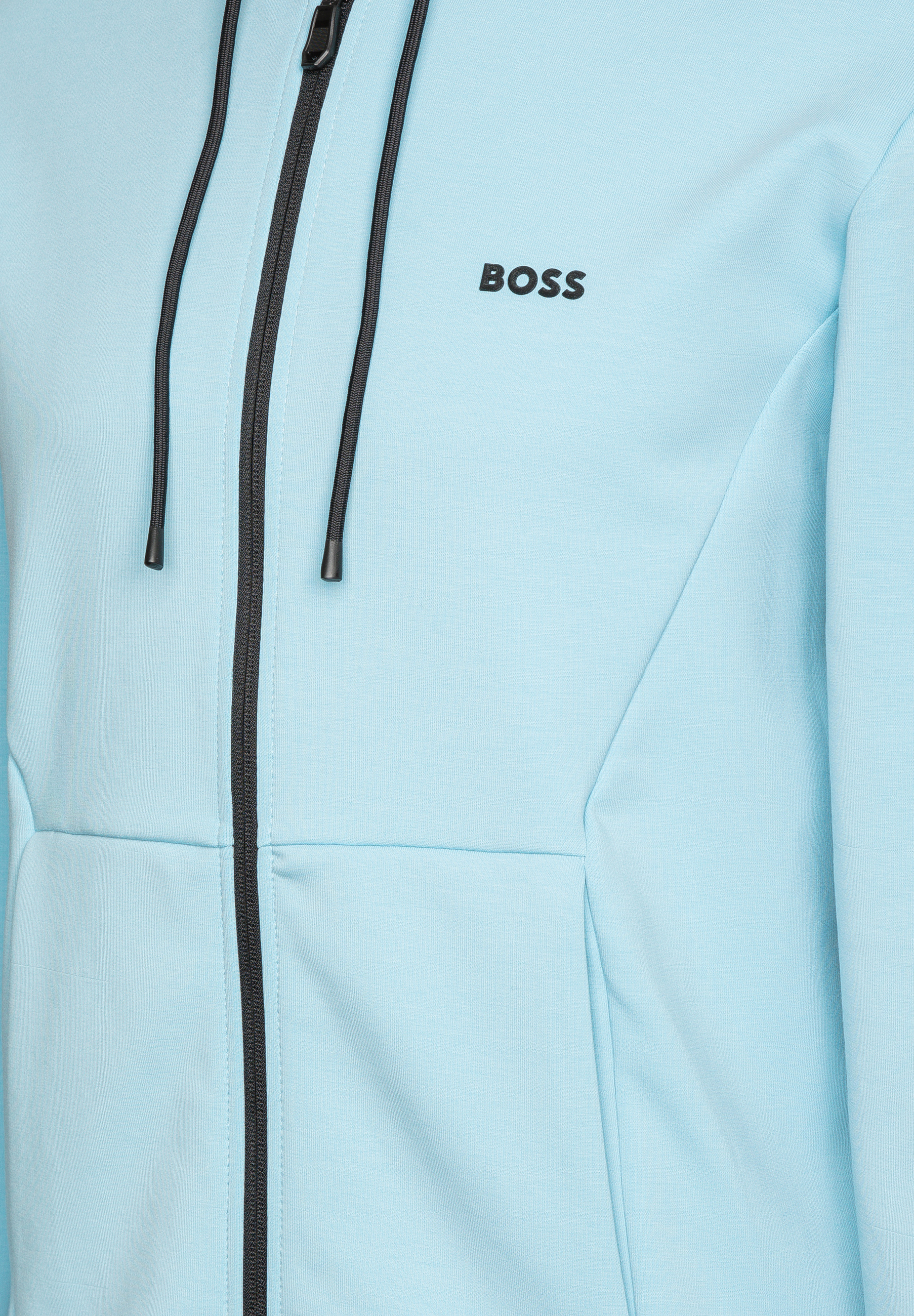 Die gerade geschnittene BOSS Kapuzenjacke mit Reißverschluss ist aus einem elastischen Baumwoll-Mix gefertigt und lässt sich einfach layern. Streifen-Details und geformtes Logo.