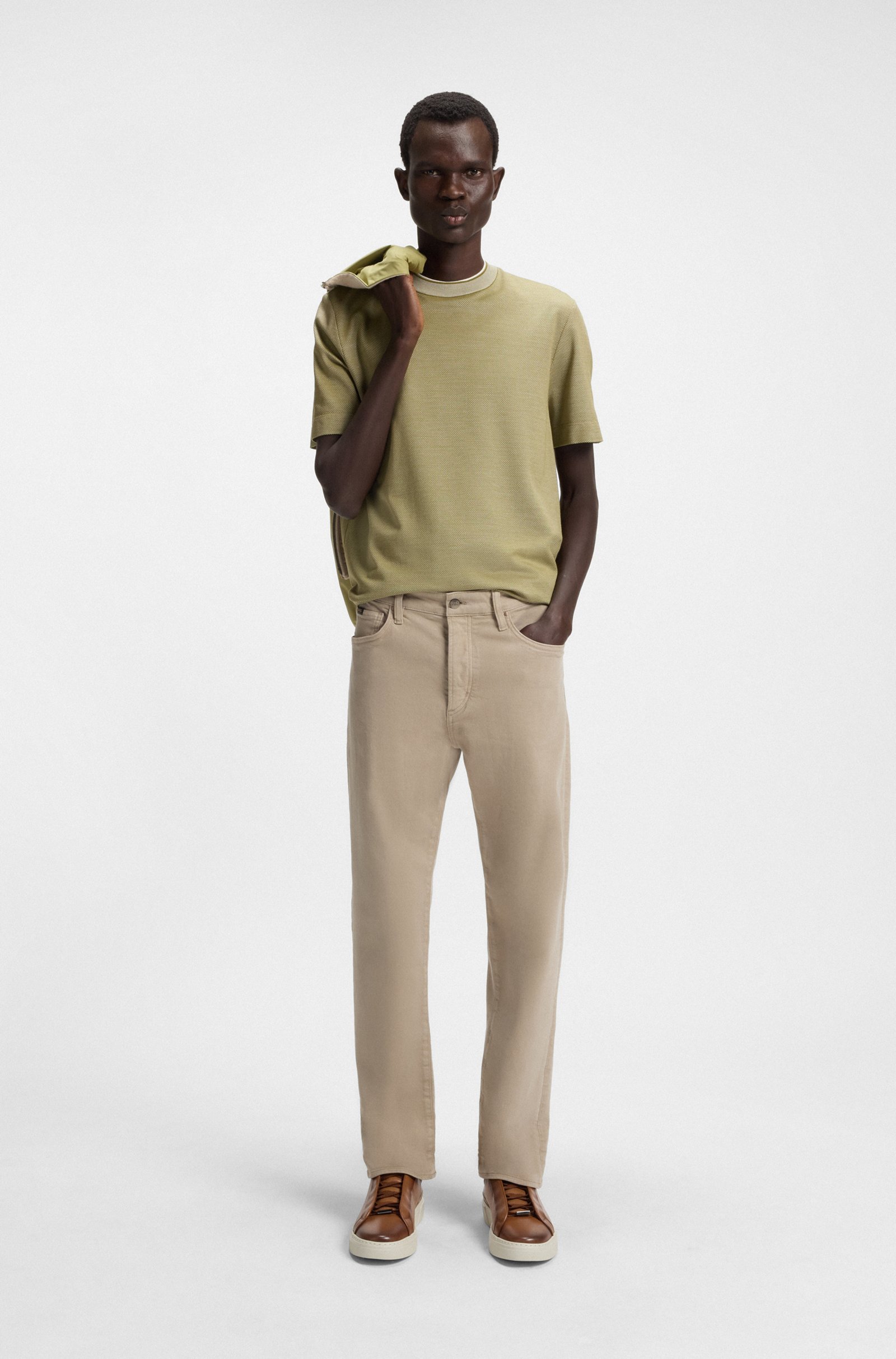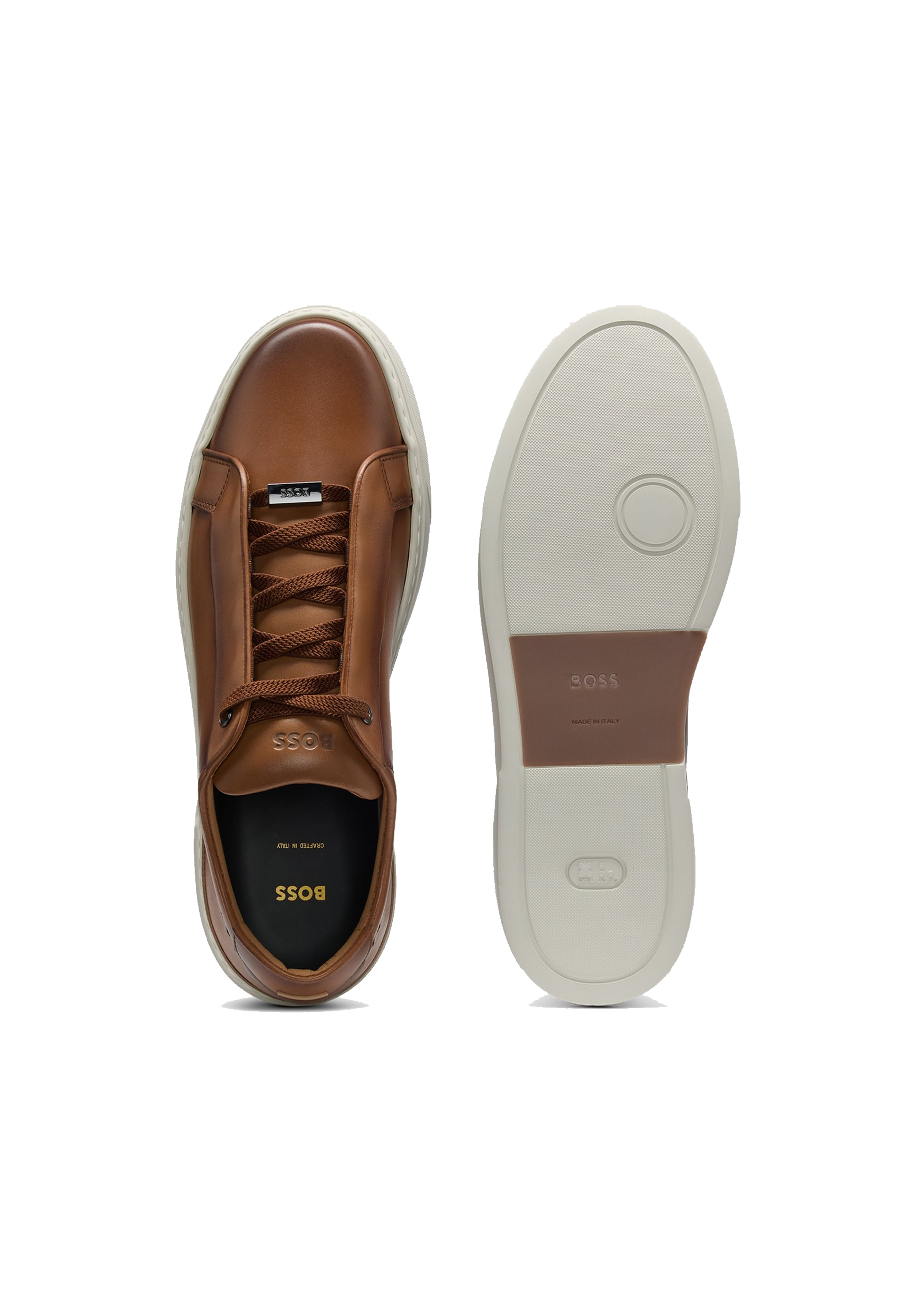 Die in Italien gefertigten BOSS Sneakers aus cleanem Leder mit verdeckten Schnürsenkeln passen zu allen Looks. Metallenes Logo-Detail an der Schlaufe.
