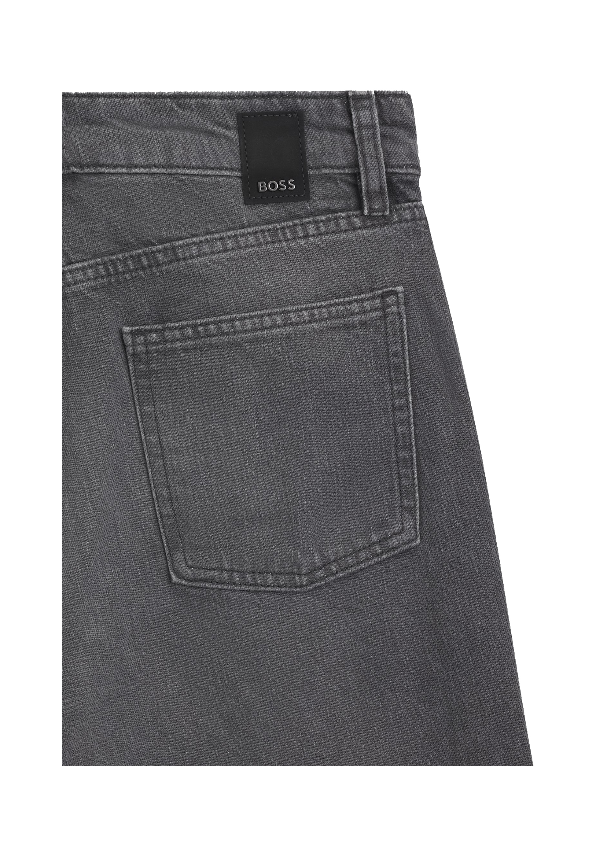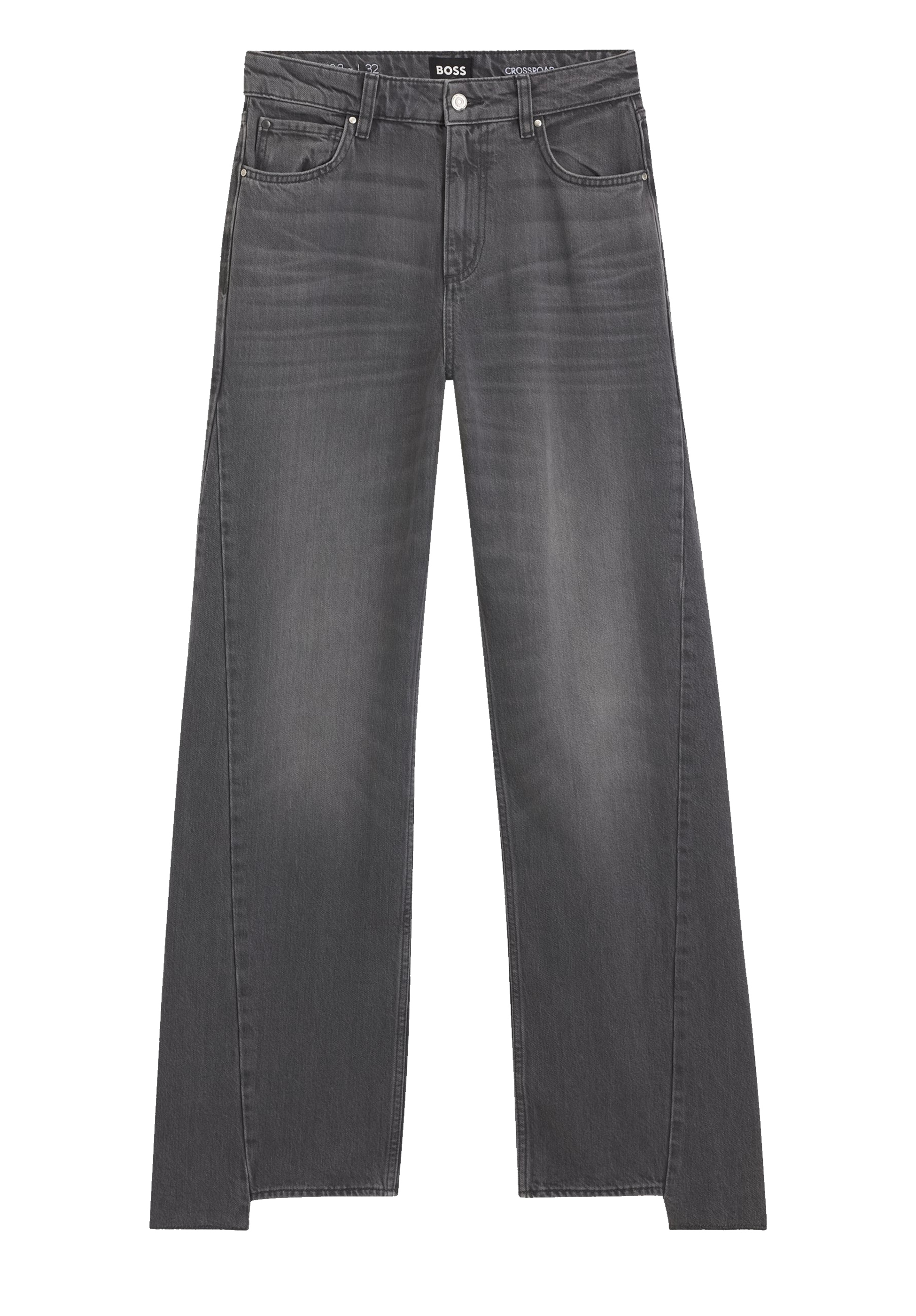 Die BOSS Jeans mit weitem Beinverlauf, Boyfriend-Passform und asymmetrischem Saum sorgt für ein zeitgemäßes Profil. Dezenter Grauton. Softer, fester Denim.