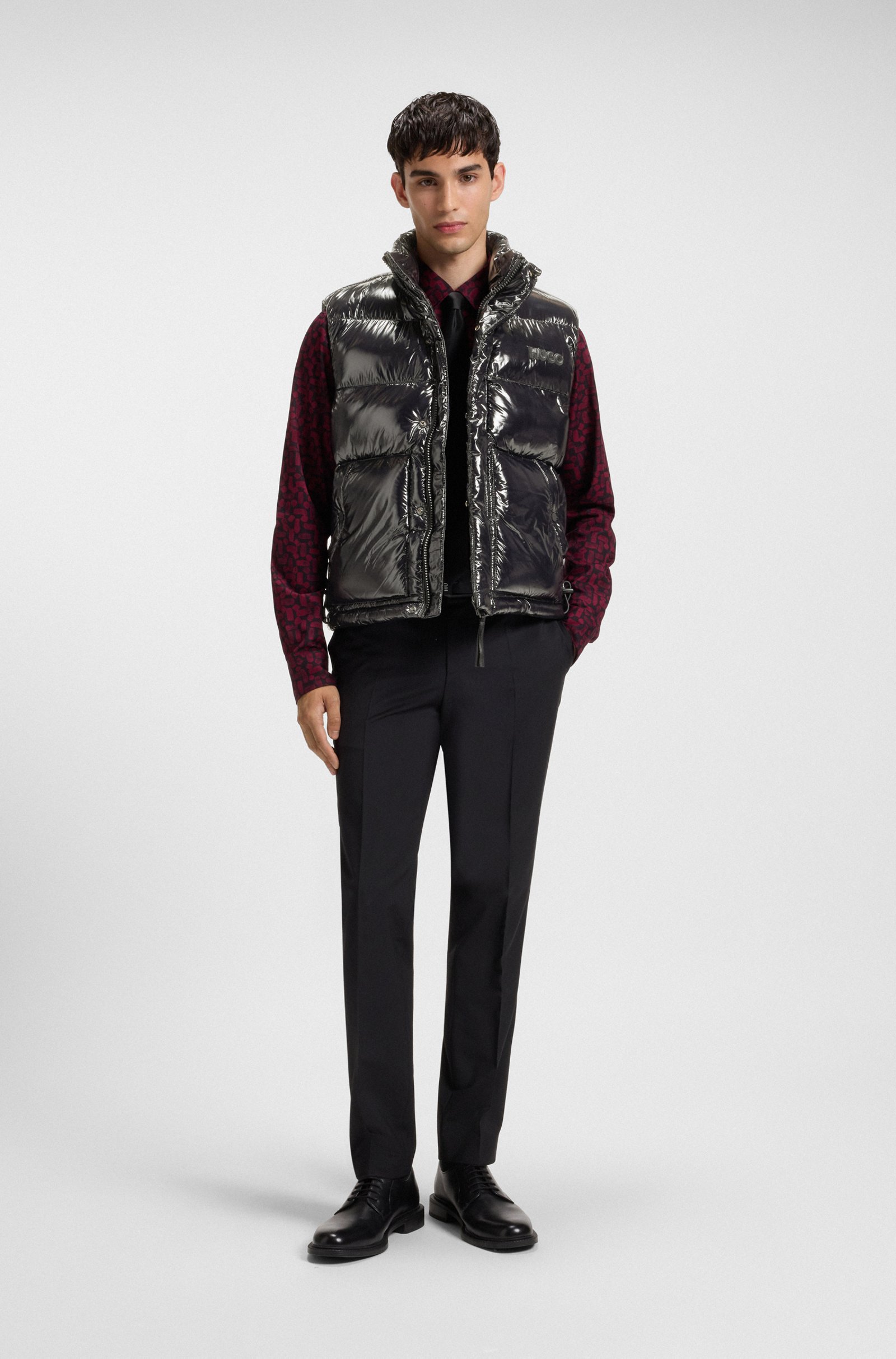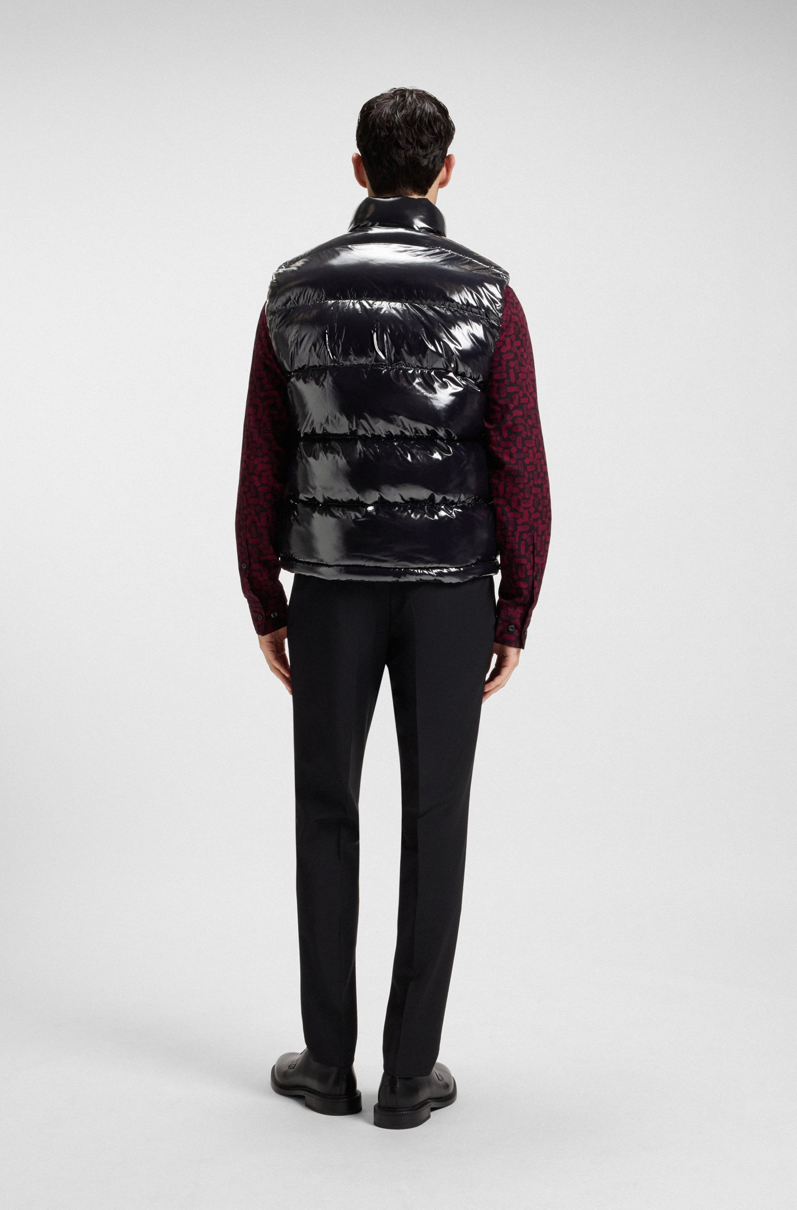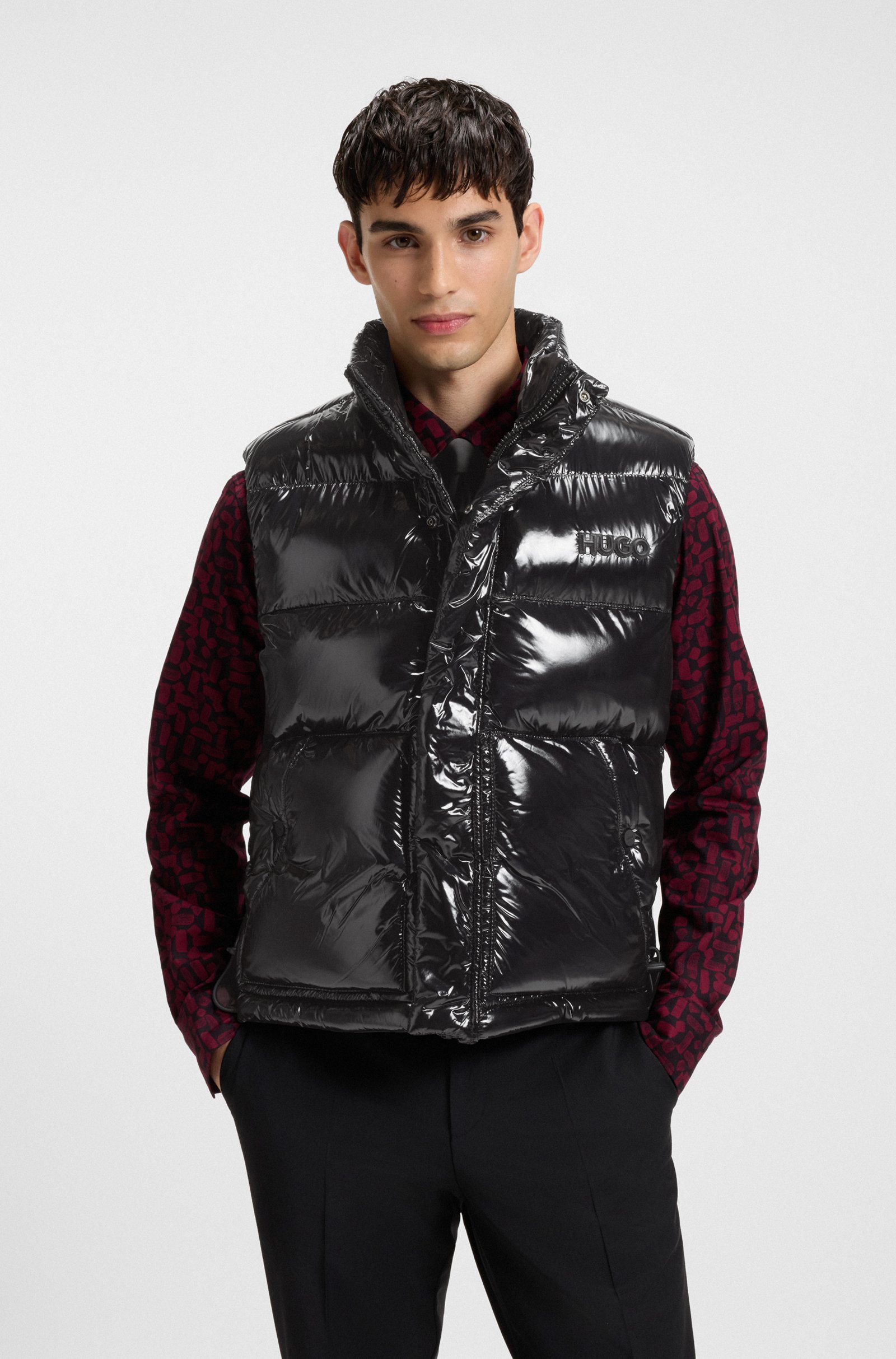 Die wasserabweisende HUGO Weste mit markantem Glanz-Effekt hält dich warm und trocken. Gummiertes Logo. Gerade Passform. Verstellbarer Saum.