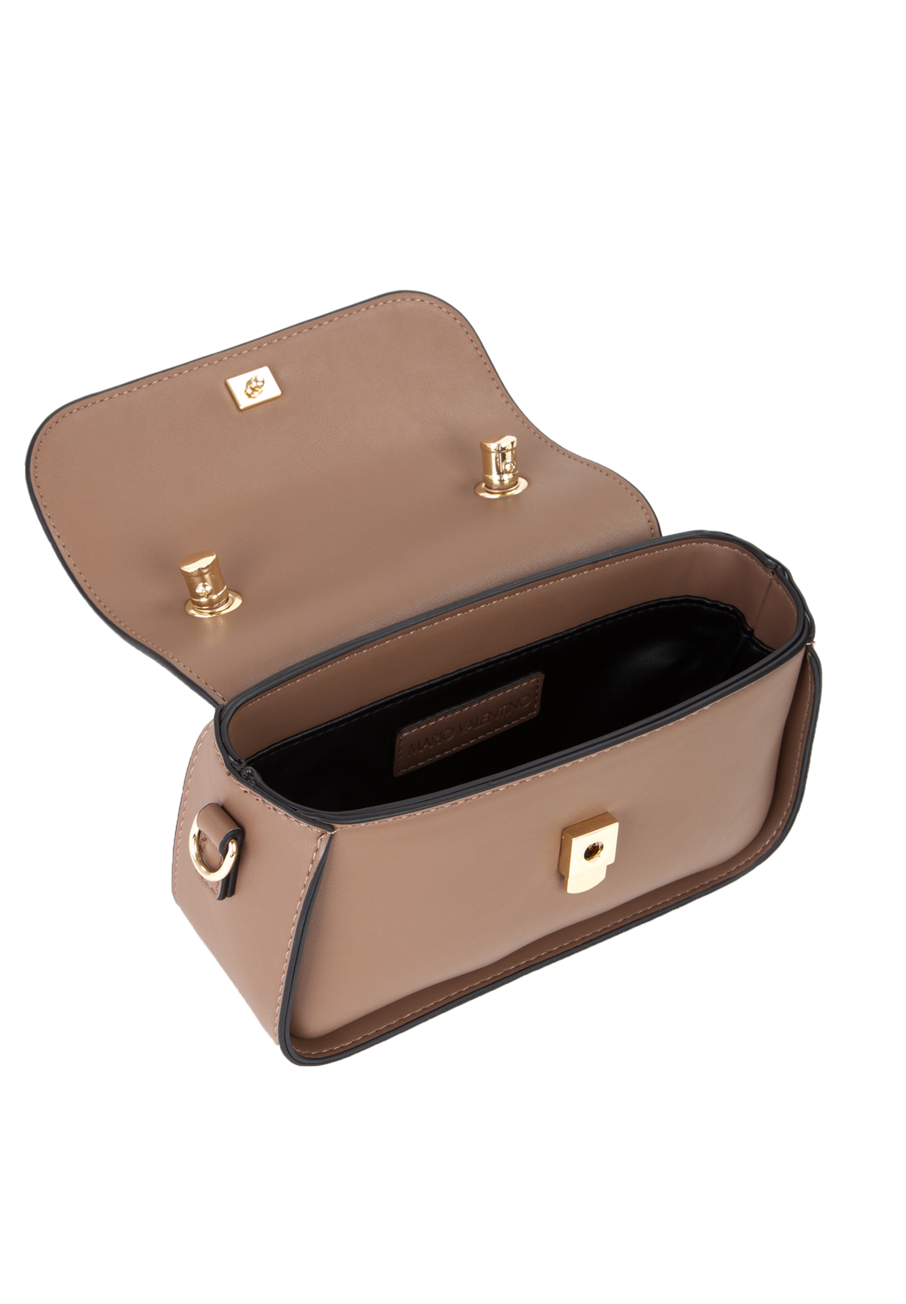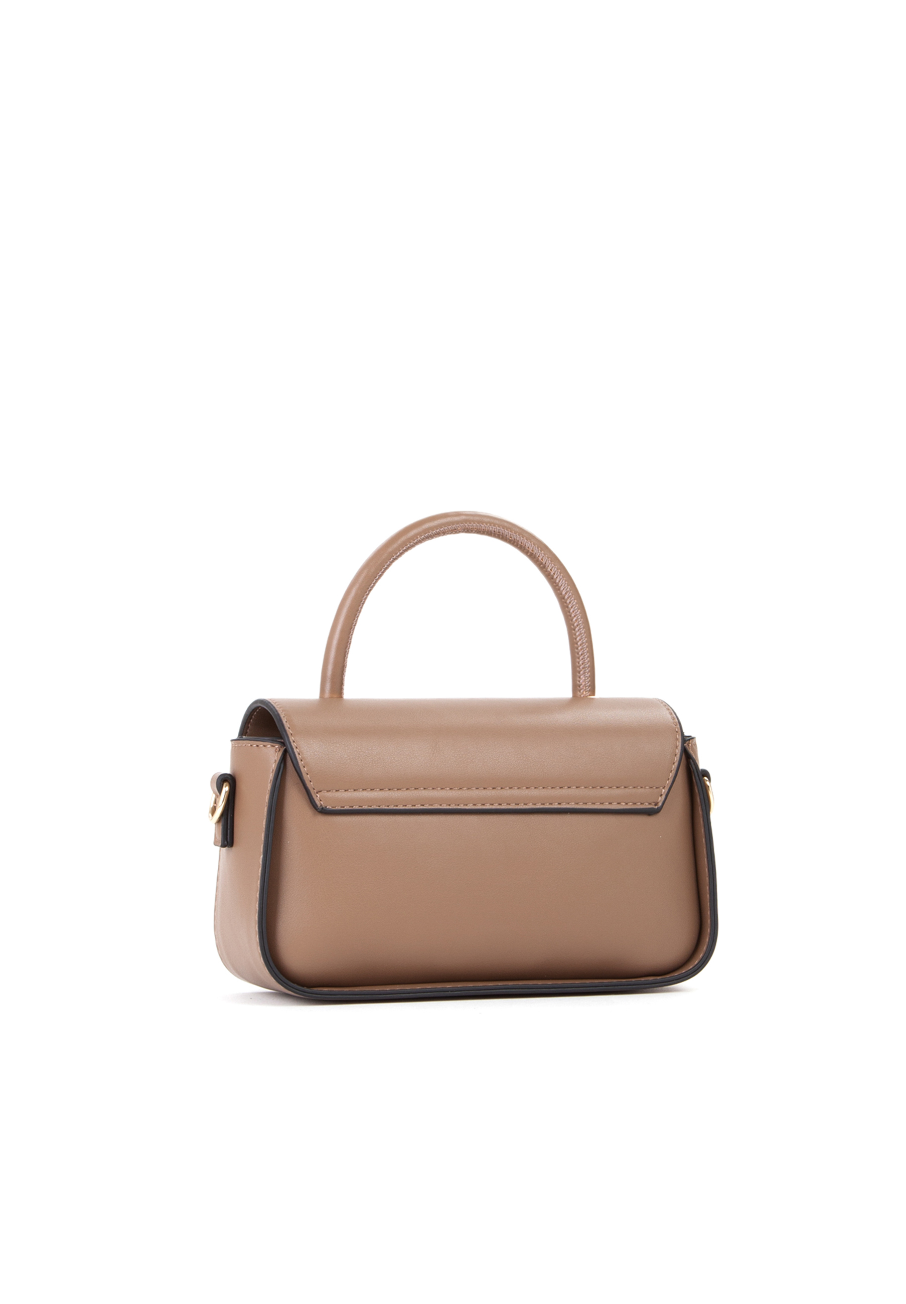 - Handtasche wird mit Überschlagklappe und Steckverschluss geschlossen
