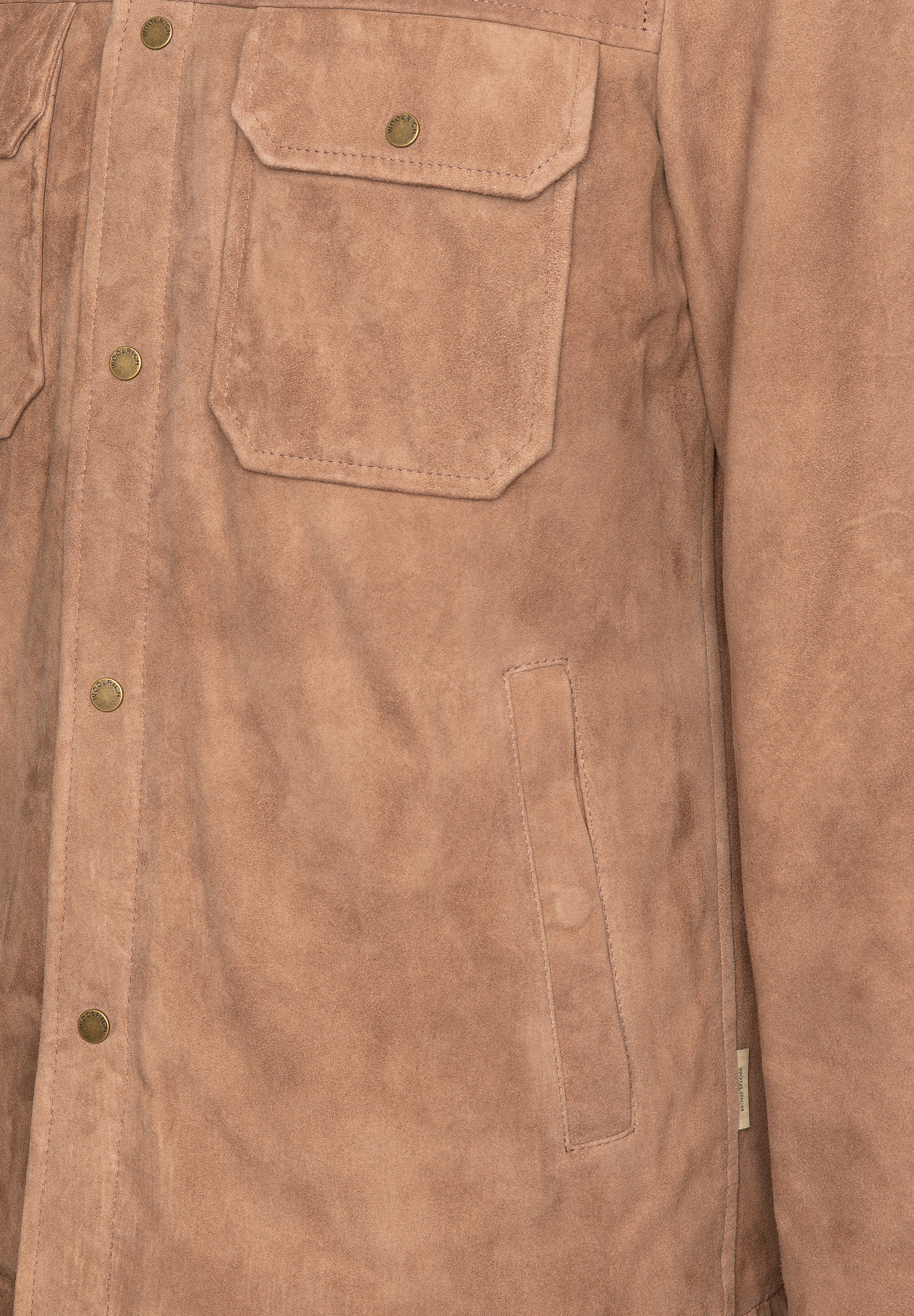 Die Lederjacke von Woolrich aus weichem Veloursleder vereint luxuriöse Materialqualität mit lässigem Overshirt-Design – eine stilvolle Übergangsjacke, die sich vielseitig kombinieren lässt und jedem Look eine besondere Note verleiht.