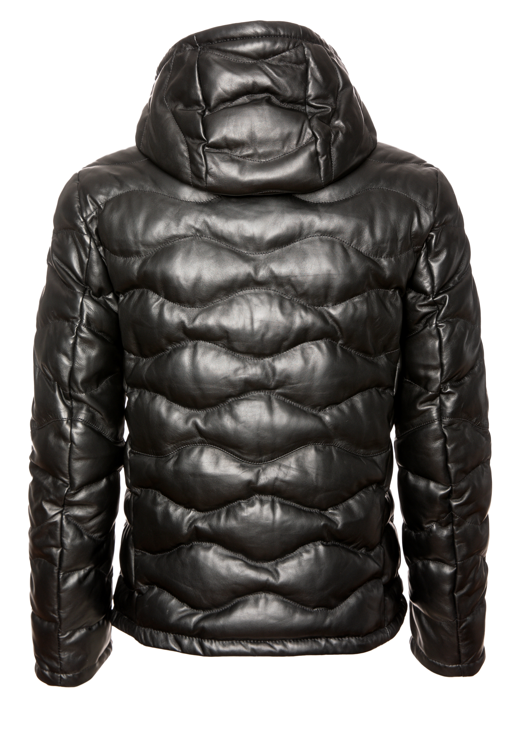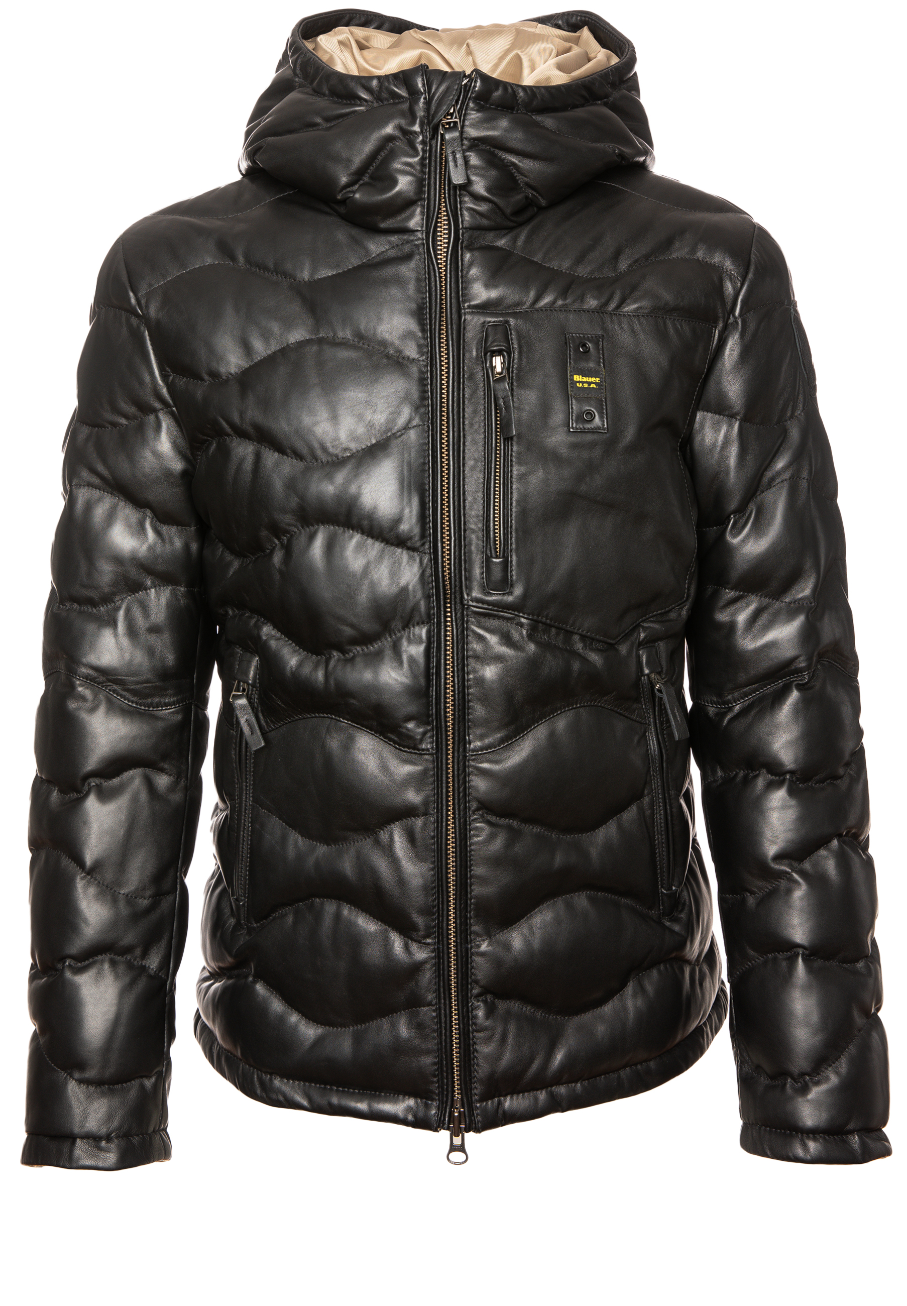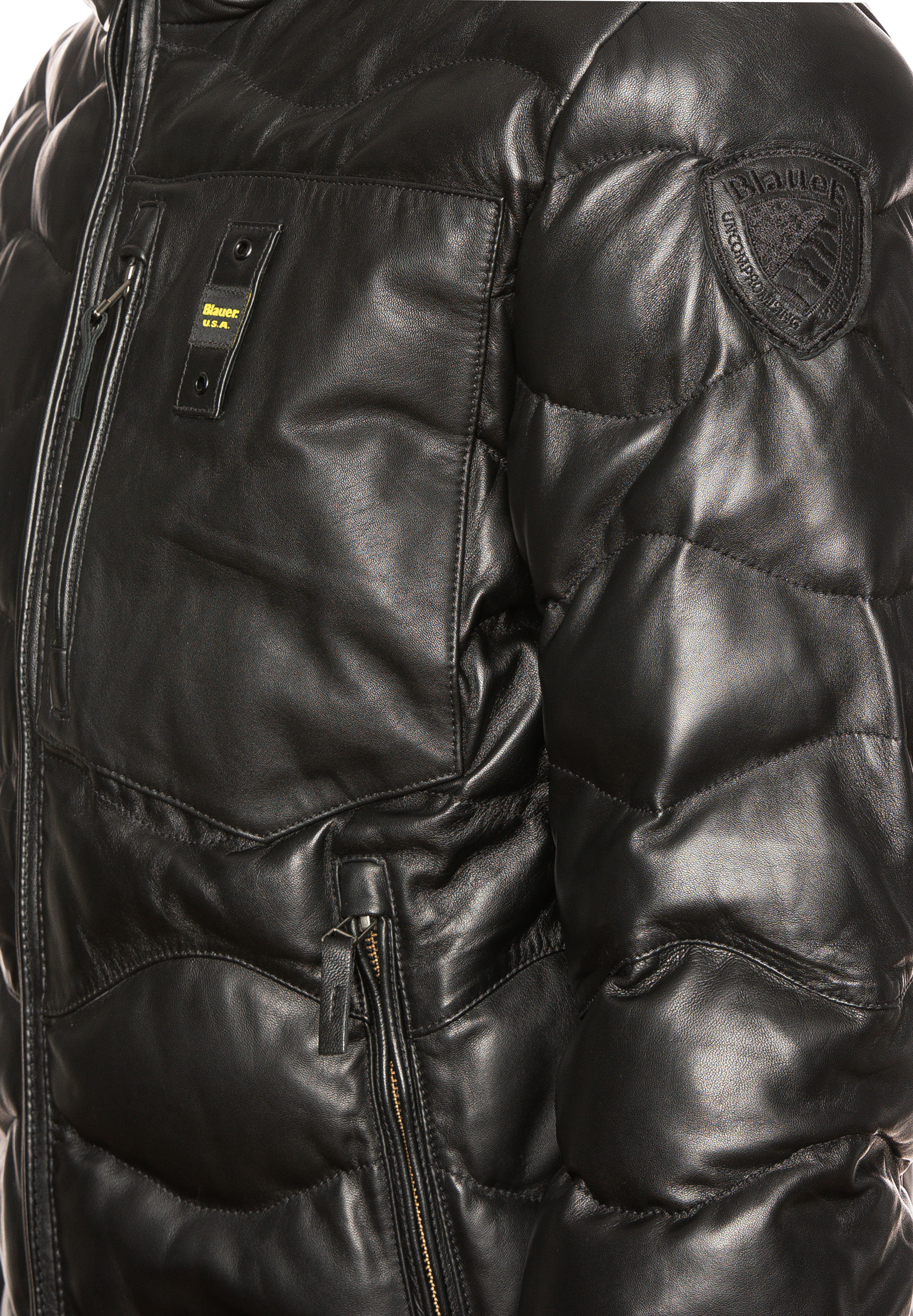 Jacke Drohan von BLAUER USA aus Leder mit wellenförmiger Steppung im Vintage-Effekt. Ein außergewöhnlicher Blouson, der eine Alternative zwischen der klassischen Daunenjacke und der traditionellen Lederjacke darstellt.