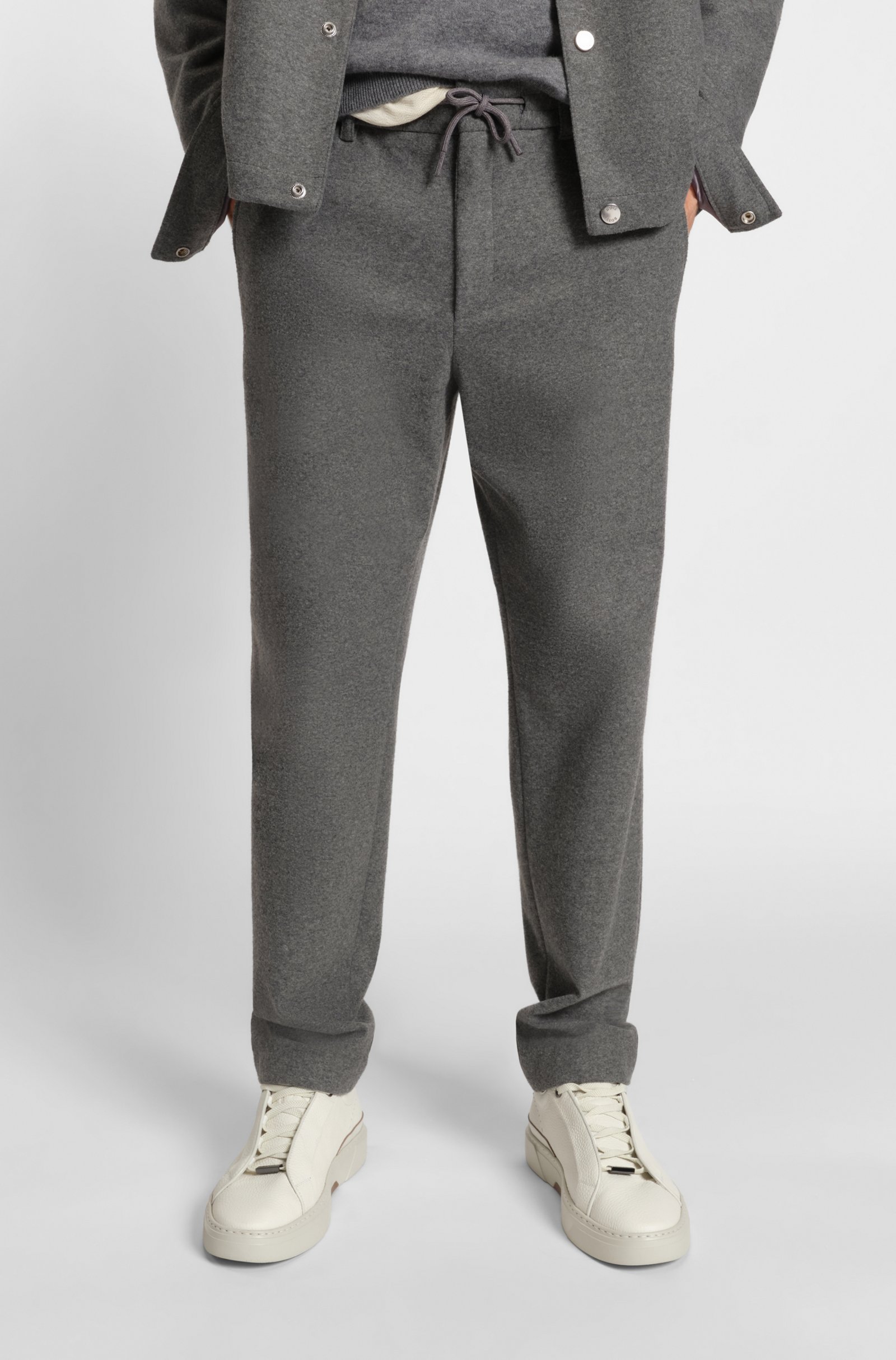 Die BOSS Hose mit schmaler Passform und konischem Beinverlauf ist aus elastischem Flanell mit gebürstetem Finish gefertigt, der angenehm warm hält. Mit Woll-Anteil.