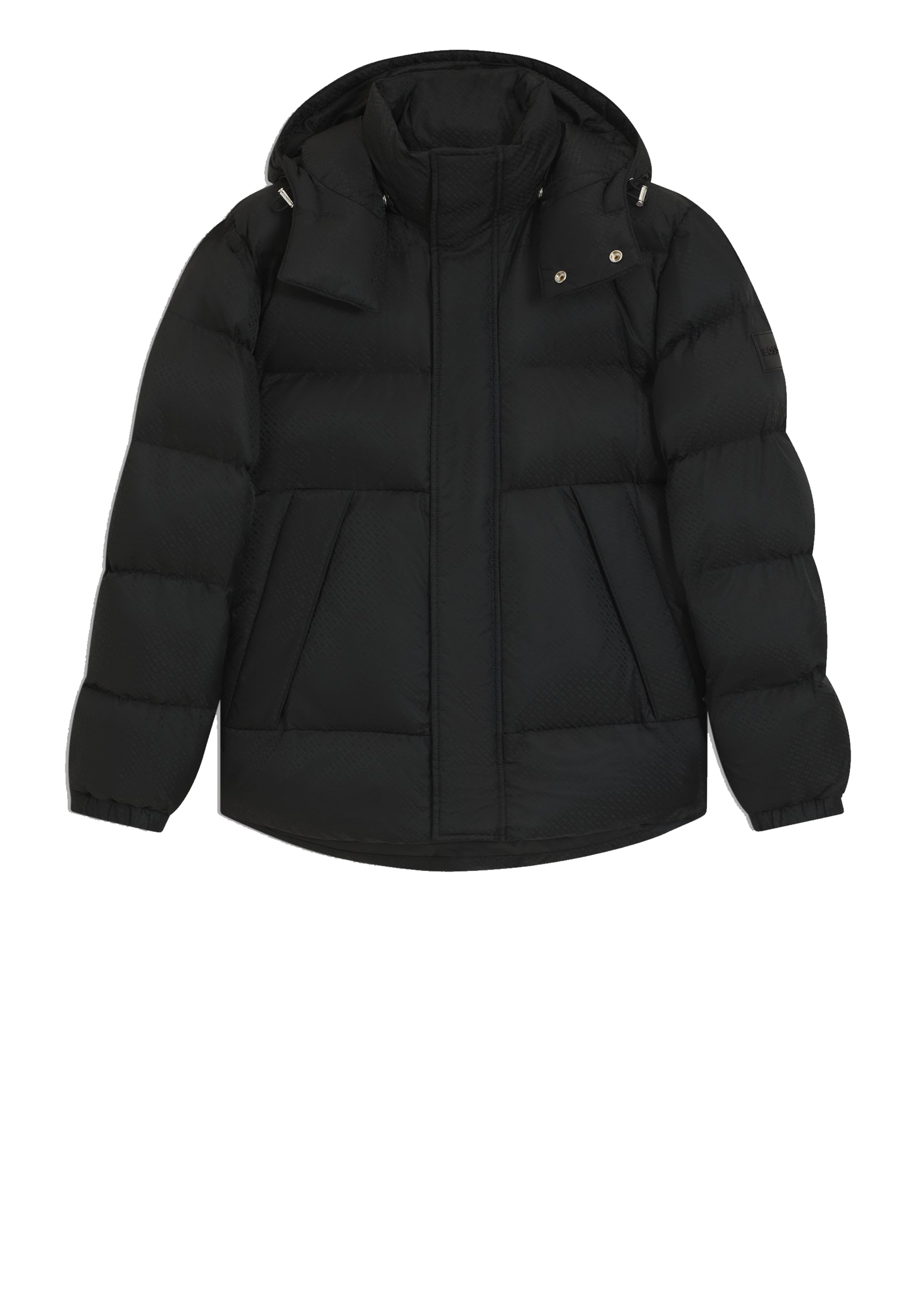Die komfortable BOSS Jacke ist aus einem wasserabweisenden Gewebe mit markanten Mikro-Monogrammen gefertigt. Logo-Aufnäher am linken Ärmel.