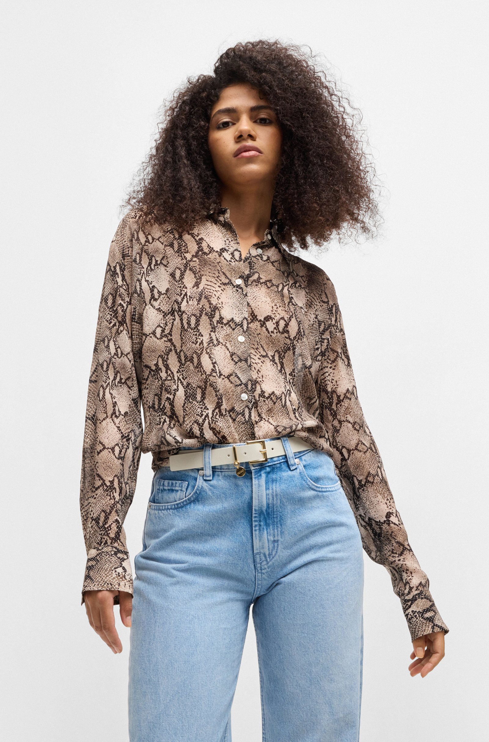 Charakteristischer HUGO Gürtel mit 2,5 Zentimetern Breite. Das Accessoire aus italienischem Leder ist mit einer Dornschließe und einem goldfarbenen Logo-Anhänger versehen. Für die optimale Passform sollte der Gürtel eine Größe größer als dein Taillenumfang sein.