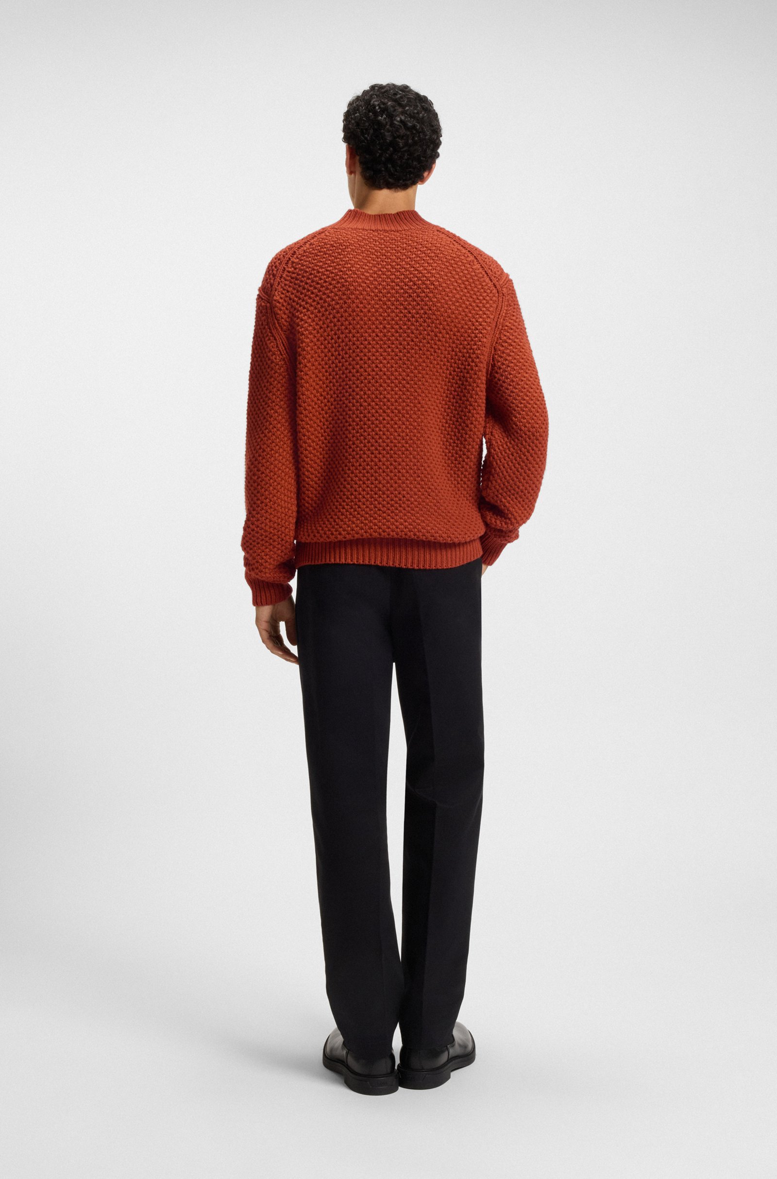 Mit seiner geraden Passform, der winterlichen Struktur und dem Stehkragen eignet sich der BOSS Pullover perfekt für Layering-Looks in der kalten Jahreszeit. Aus temperaturausgleichender Schurwolle.