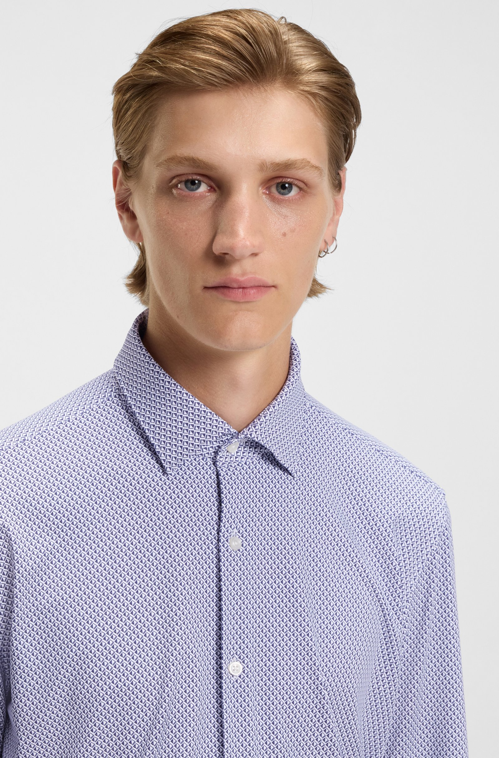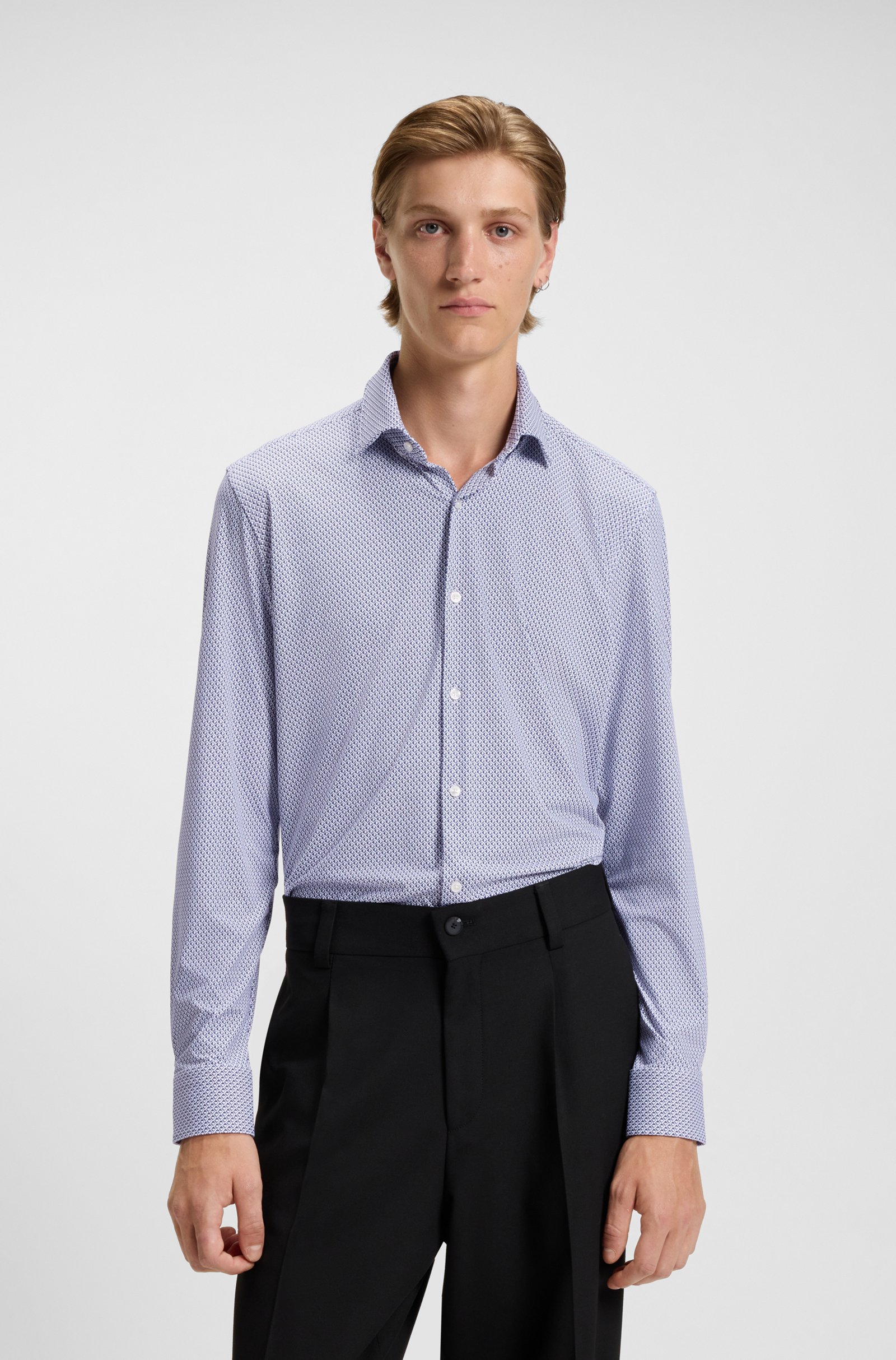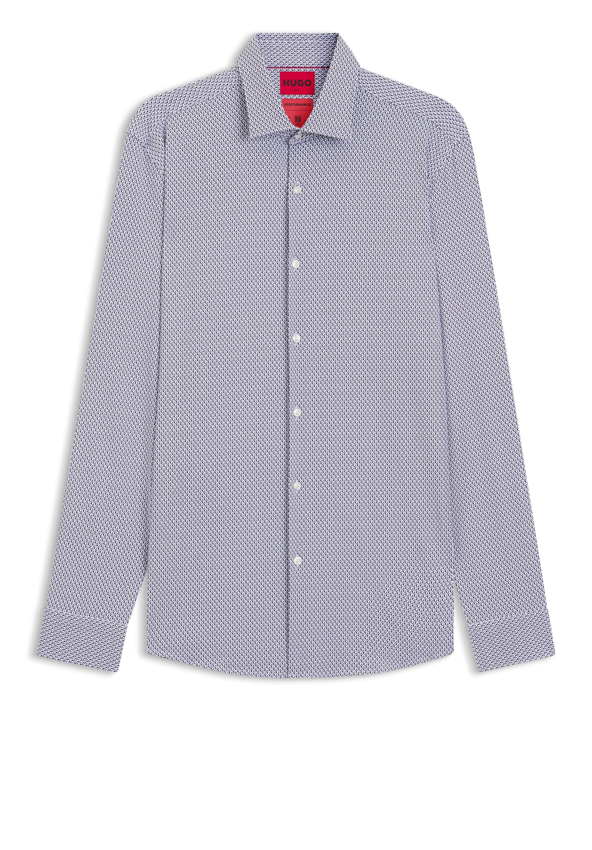 Frischen Sie Ihre Business-Garderobe mit dem trendigen Print dieses Hemdes von HUGO Menswear auf. Es ist aus superelastischem Jersey gefertigt und hat eine schmale Passform.