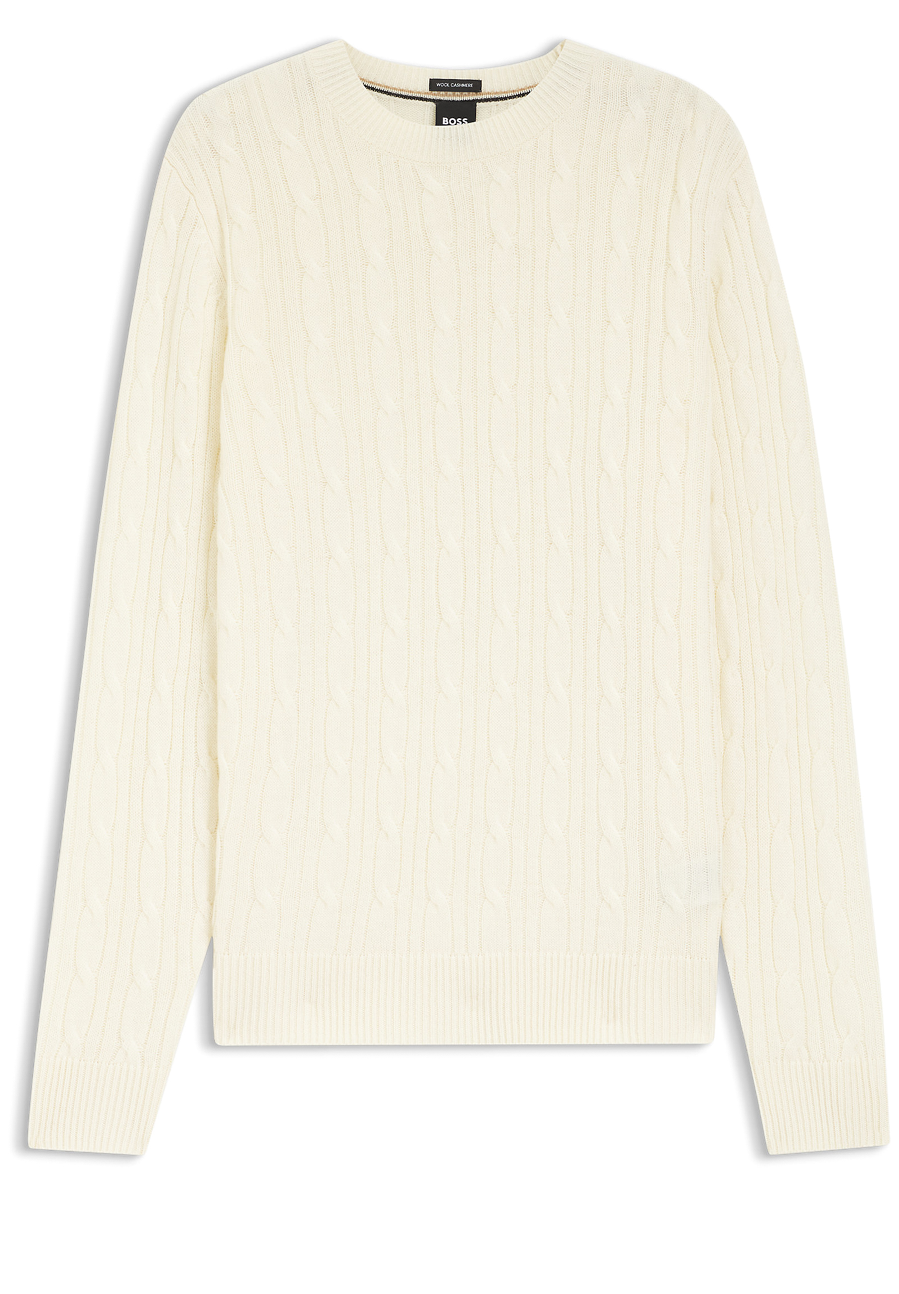Der BOSS Pullover aus einem Schurwoll-Mix mit edlem Kaschmir-Anteil ist mit einer klassischen Zopfmuster-Struktur versehen. Lässige, gerade Passform.