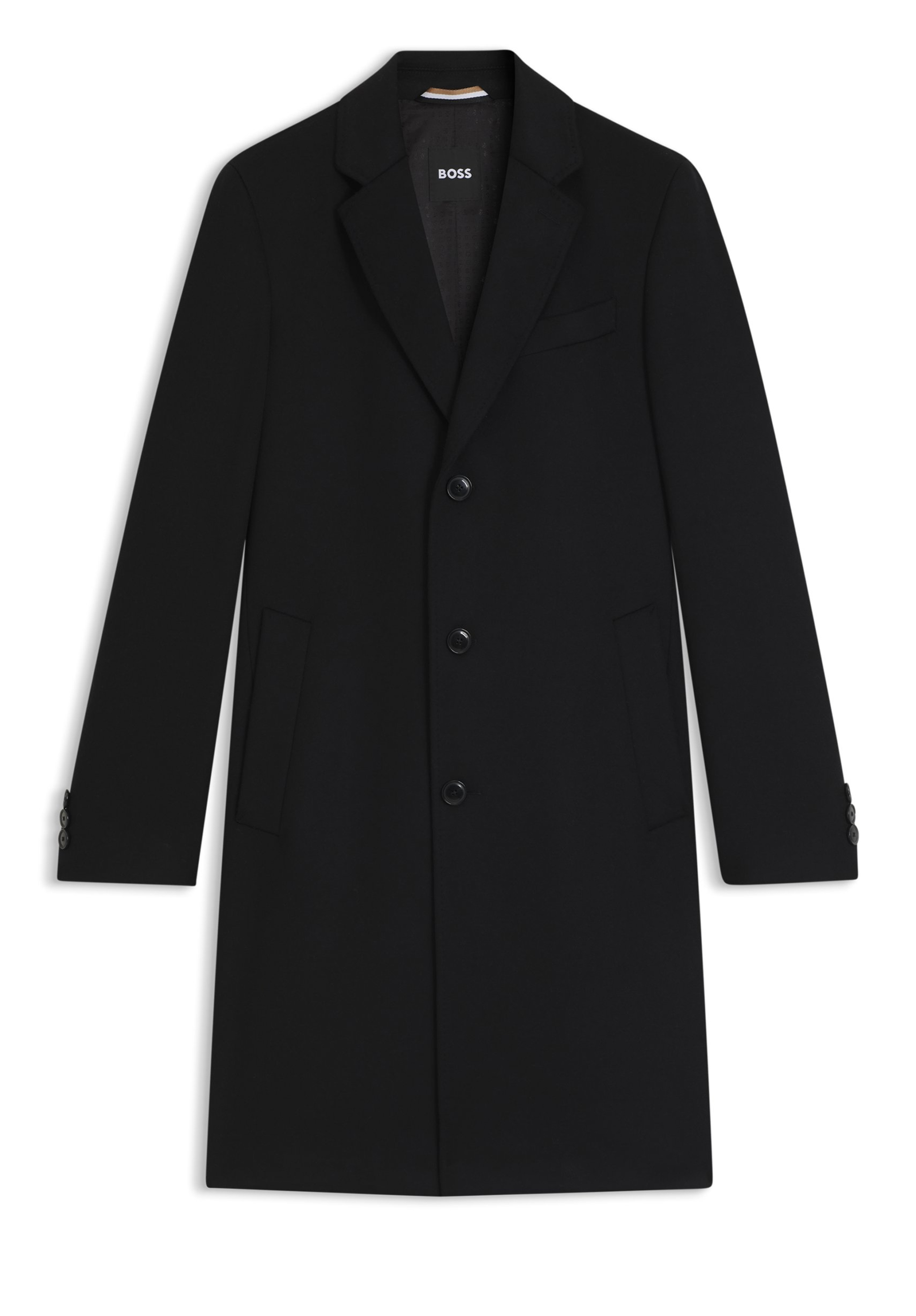 Der zeitlose BOSS Mantel aus einem soften Woll-Mix mit edlem Kaschmir-Anteil ist die ideale Wahl für formelle Layering-Looks.
