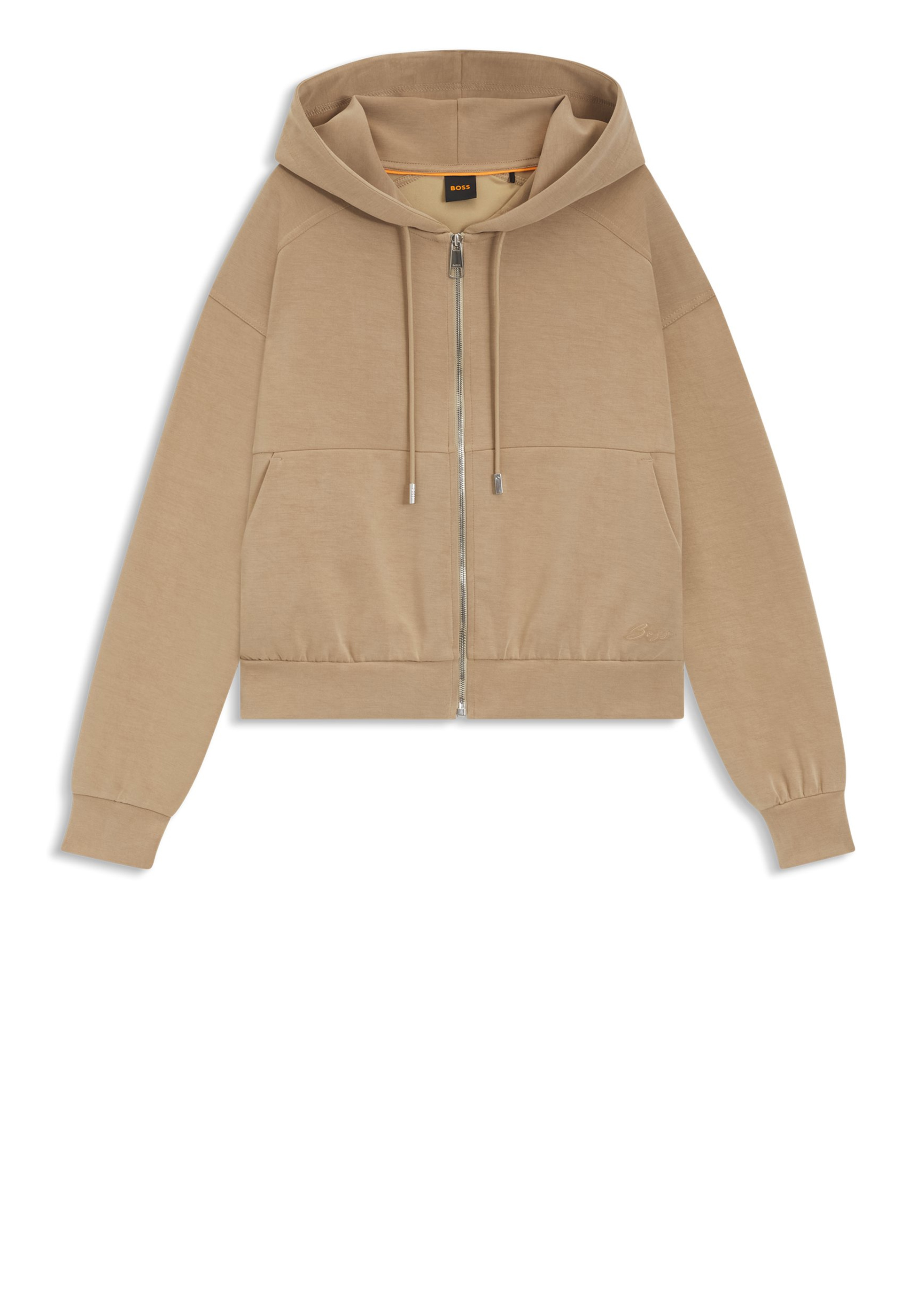 Der locker geschnittene BOSS Hoodie mit weiten Ärmeln lässt sich mühelos layern. Softes elastisches Gewebe. Gesticktes handgeschriebenes Logo.