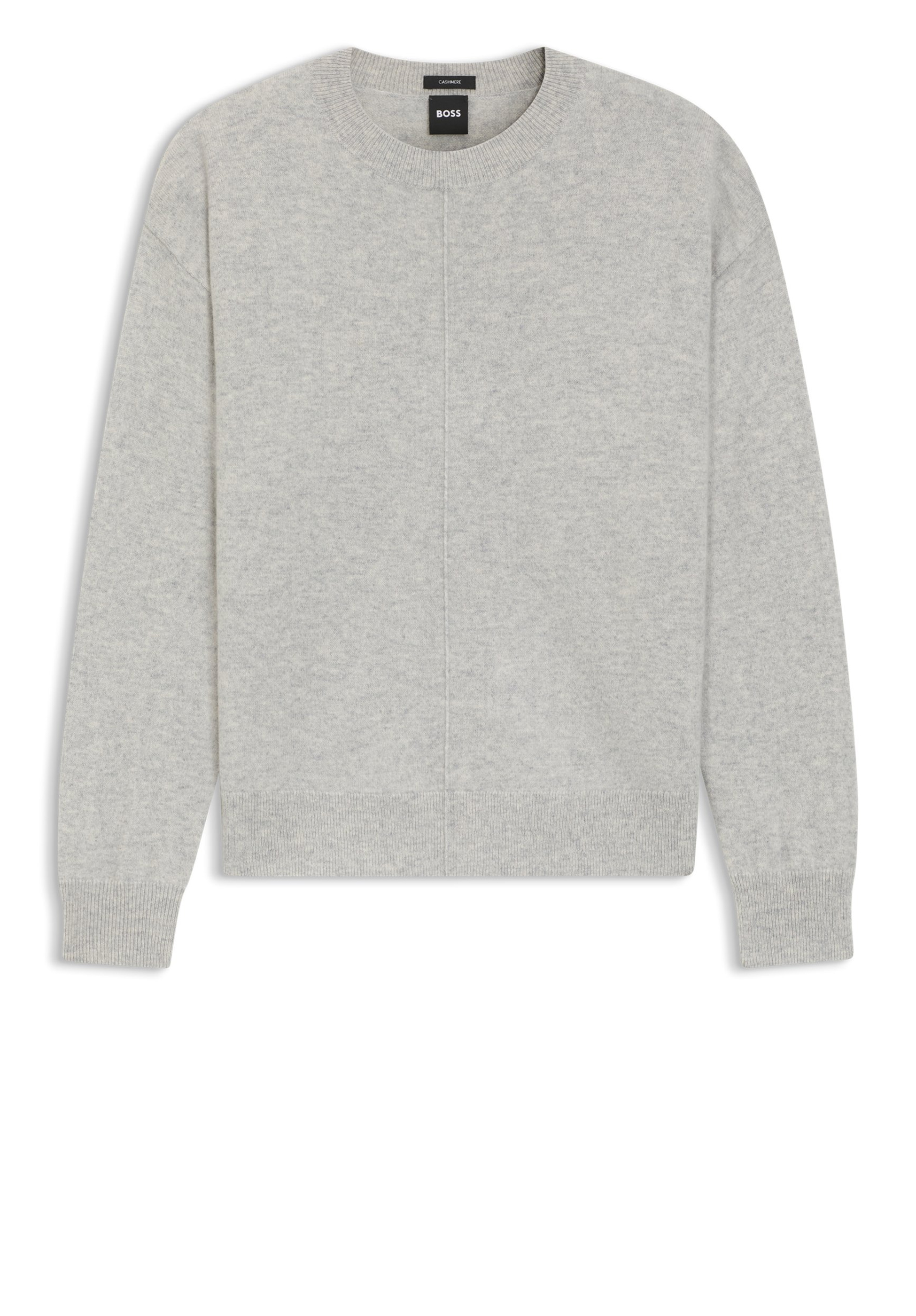 Veredle deine Strickmode mit dem besonders soften Kaschmir dieses relaxten BOSS Pullovers. Edle Nahtdetails. Komfortabler Rundhalsausschnitt.
