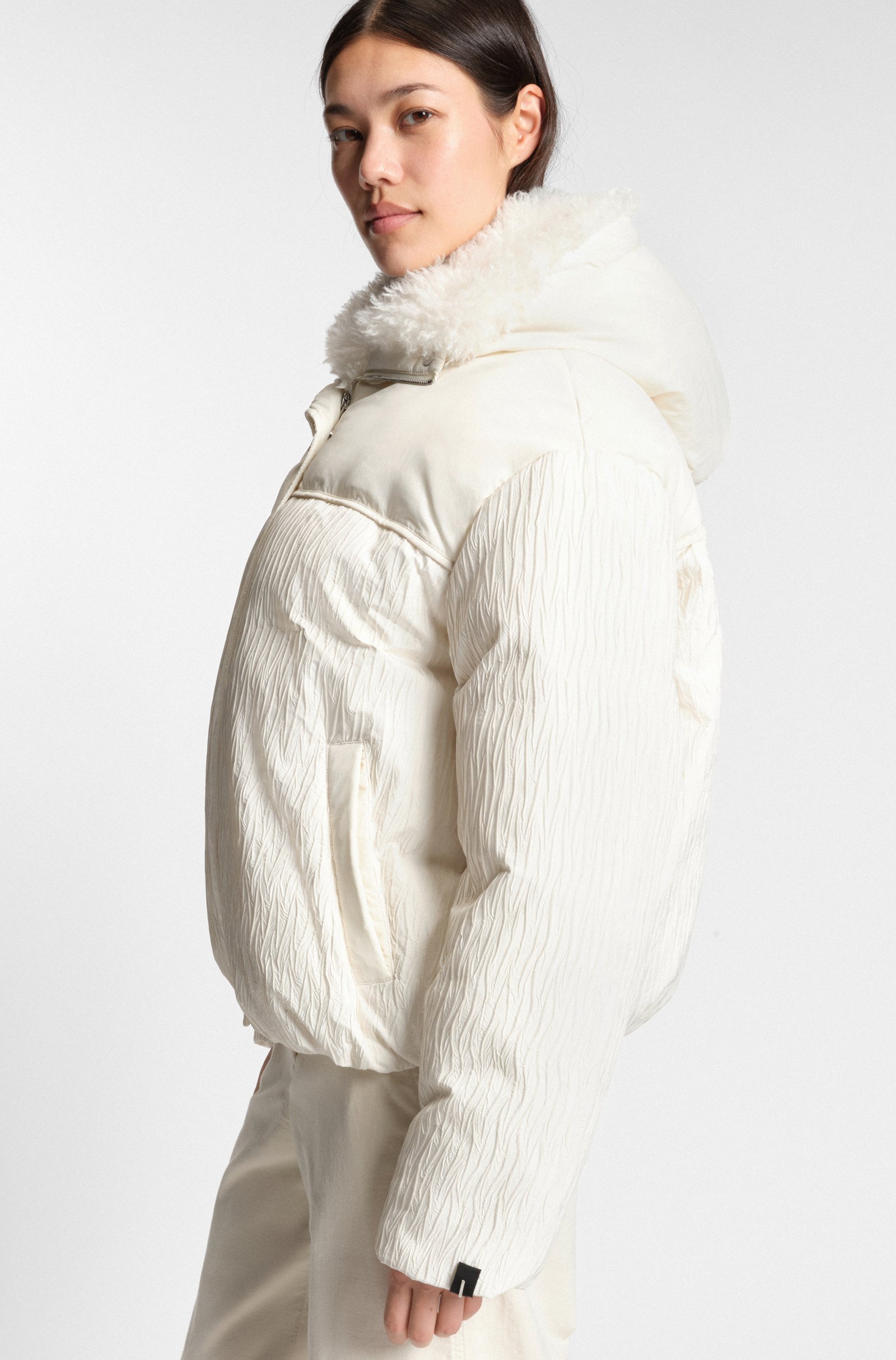 Die BOSS Jacke mit Jacquard-Einsätzen und wasserabweisendem Finish kombiniert Stil und Schutz. Abnehmbares Lätzchen aus Kunstfell.