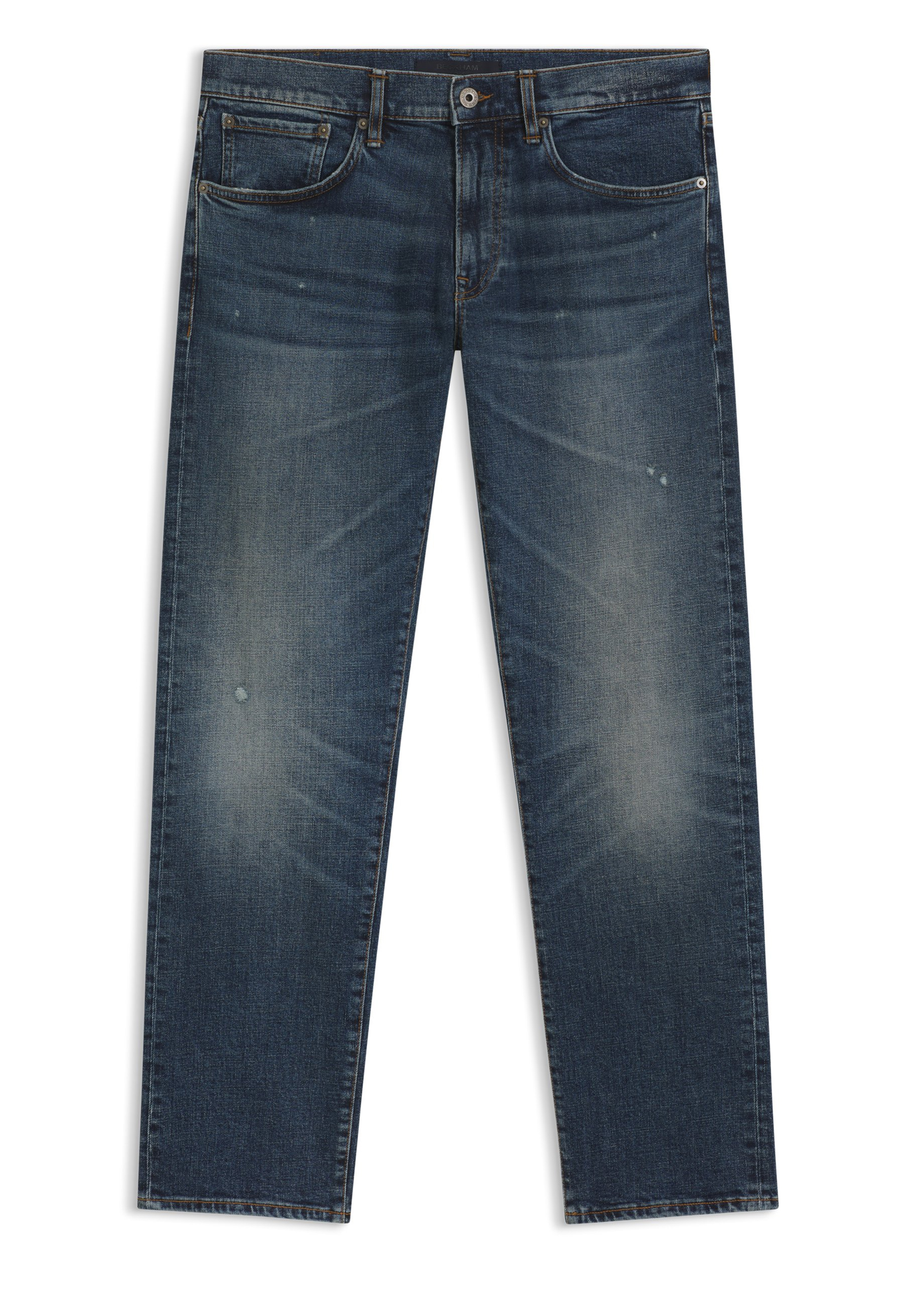 Die BECKHAM x BOSS Jeans verleiht Freizeit-Looks einen eleganten Touch. Schmale Passform aus authentischem blauem Denim mit Elasthan-Anteil und Used-Effekten. BECKHAM x BOSS sorgt mit zeitlosen und eleganten Statement-Pieces, die von Davids Garderobe inspiriert sind, für ein müheloses Styling.