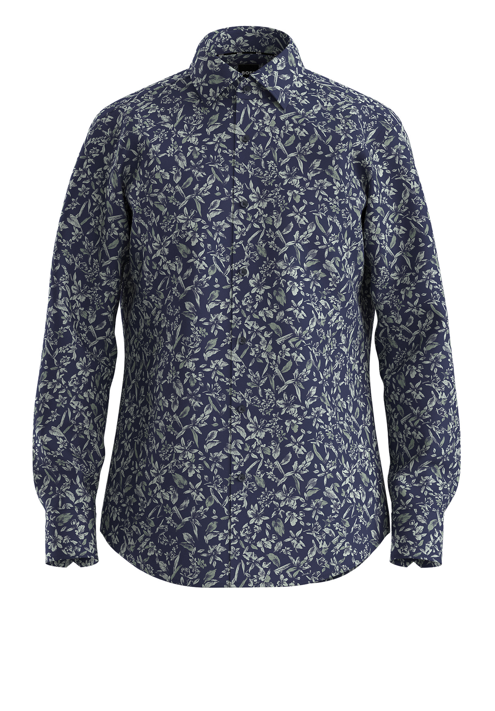 BOSS Menswear Slim-Fit-Hemd aus Baumwolle mit Allover-Blattmuster. Kentkragen, gerade Manschetten. Leicht strukturierte Oberfläche für einen modernen Freizeit-Look.