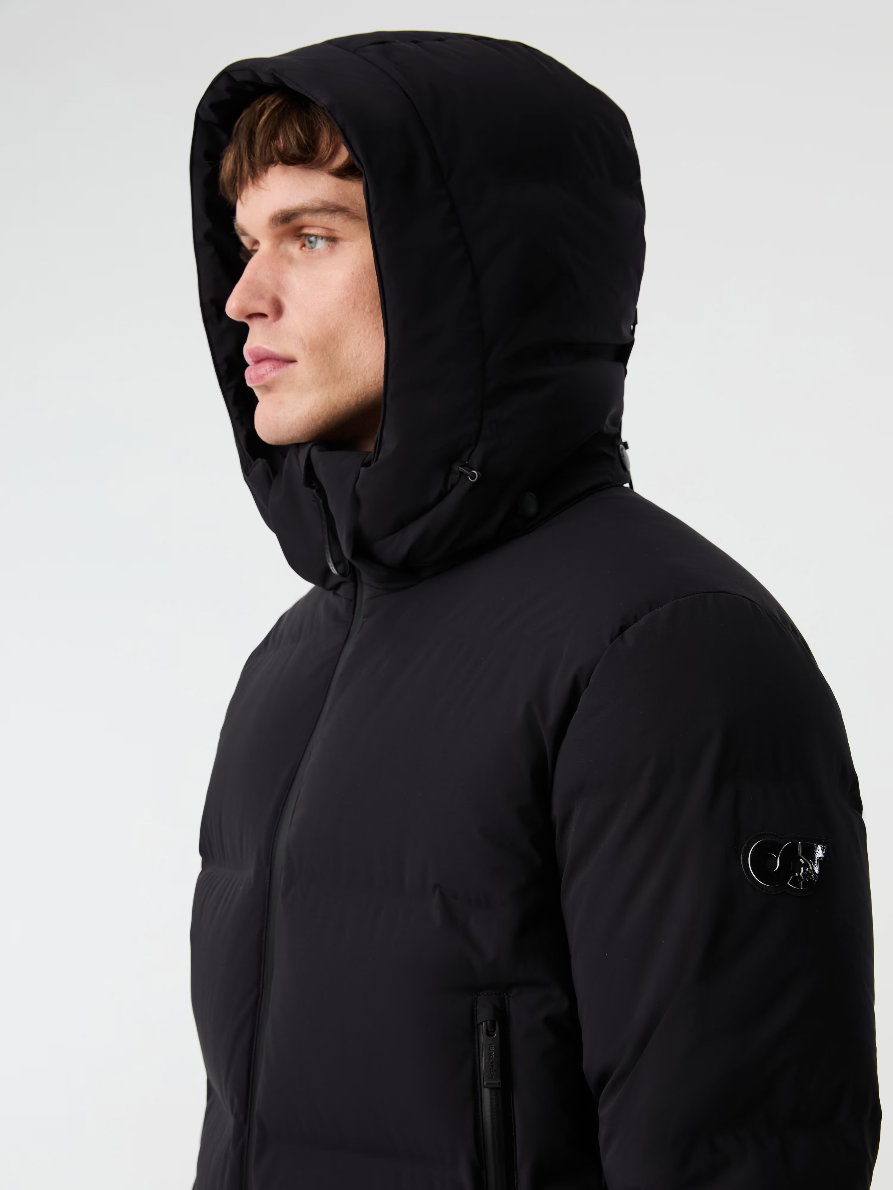 c_change®-Membrane ist eine thermo-reaktive, wind- und wasserdichte Membran der Schoeller Textil AG, die in AlphaTauri-Designs verwendet wird. Das atmungsaktive 3-Lagen-Gewebe öffnet seine Struktur bei hohen Temperaturen, um überschüssige Körperfeuchtigkeit und Wärme entweichen zu lassen. Bei kaltem Wetter bleibt das Gewebe geschlossen und hält die Wärme dicht am Körper. Frösteln oder Auskühlen wird vermieden und ein optimales Körperklima konstant aufrechterhalten. Dieser sogenannte Tannenzapfen-Effekt veranlasst das Gewebe, sich je nach Wetterlage zu öffnen oder zu schließen.