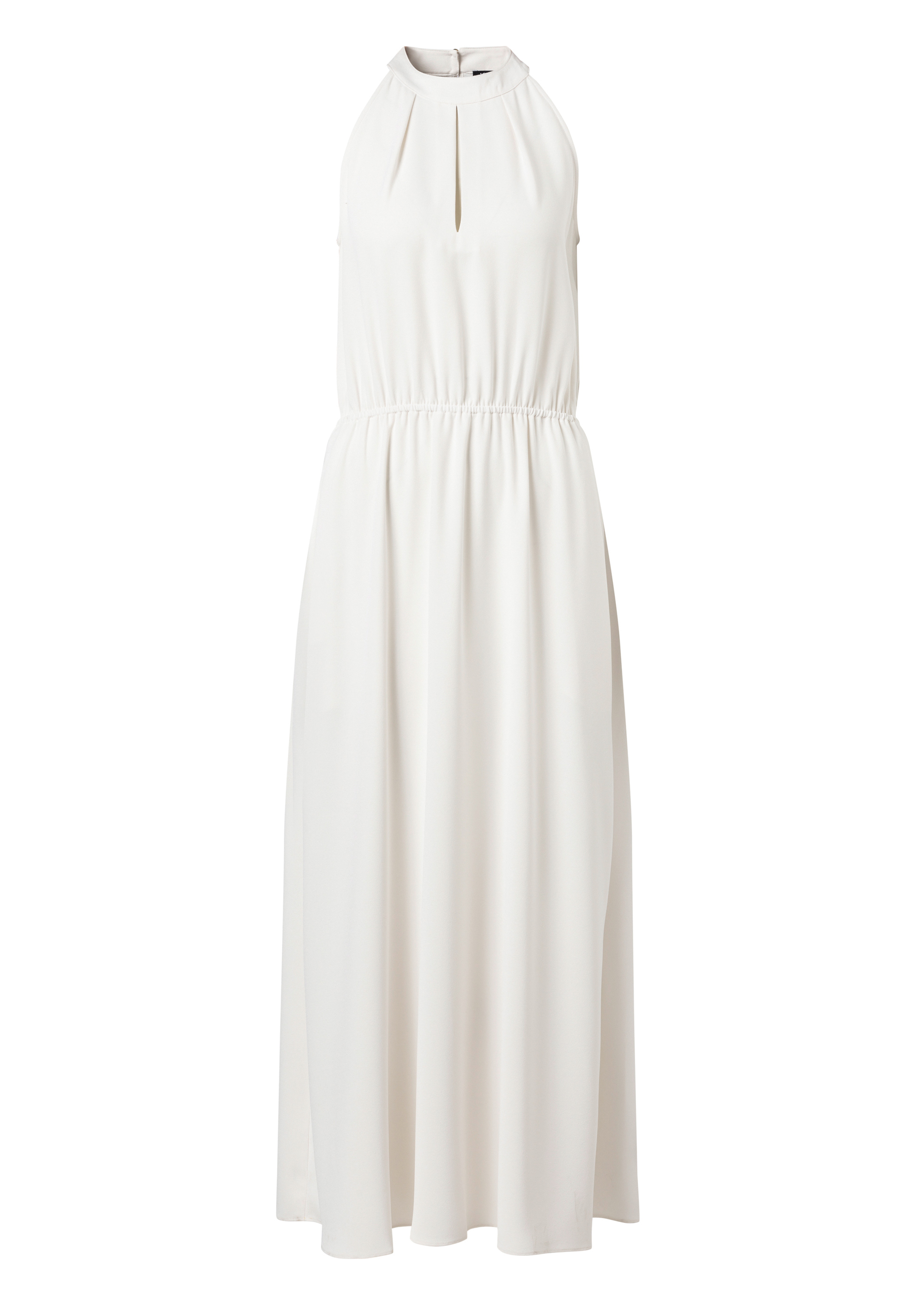 Das Crêpe-Kleid von JOOP! in klassischer A-Linien-Silhouette besticht durch eleganten Schnitt und raffinierte Details. Stehkragen, Schlüssellochausschnitte vorn und hinten sowie rückseitige Logoknöpfe verleihen dem ärmellosen Design eine edle Note. Faltendetails, elastische Taillenpartie und zwei seitliche, nahtverdeckte Eingrifftaschen sorgen für Komfort und feminin fließende Optik, während der klassisch vernähte Saumabschluss das Kleid stilvoll abrundet.