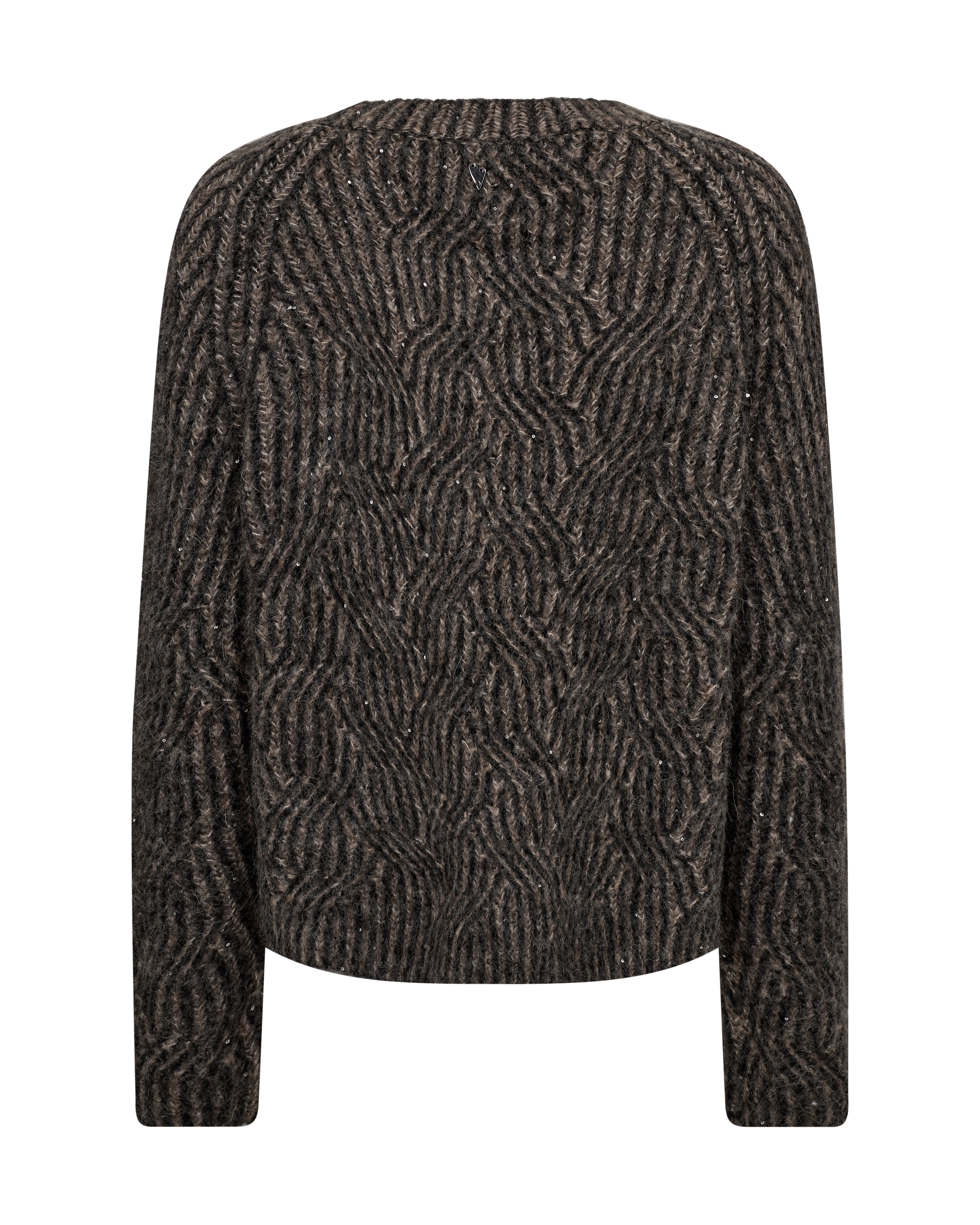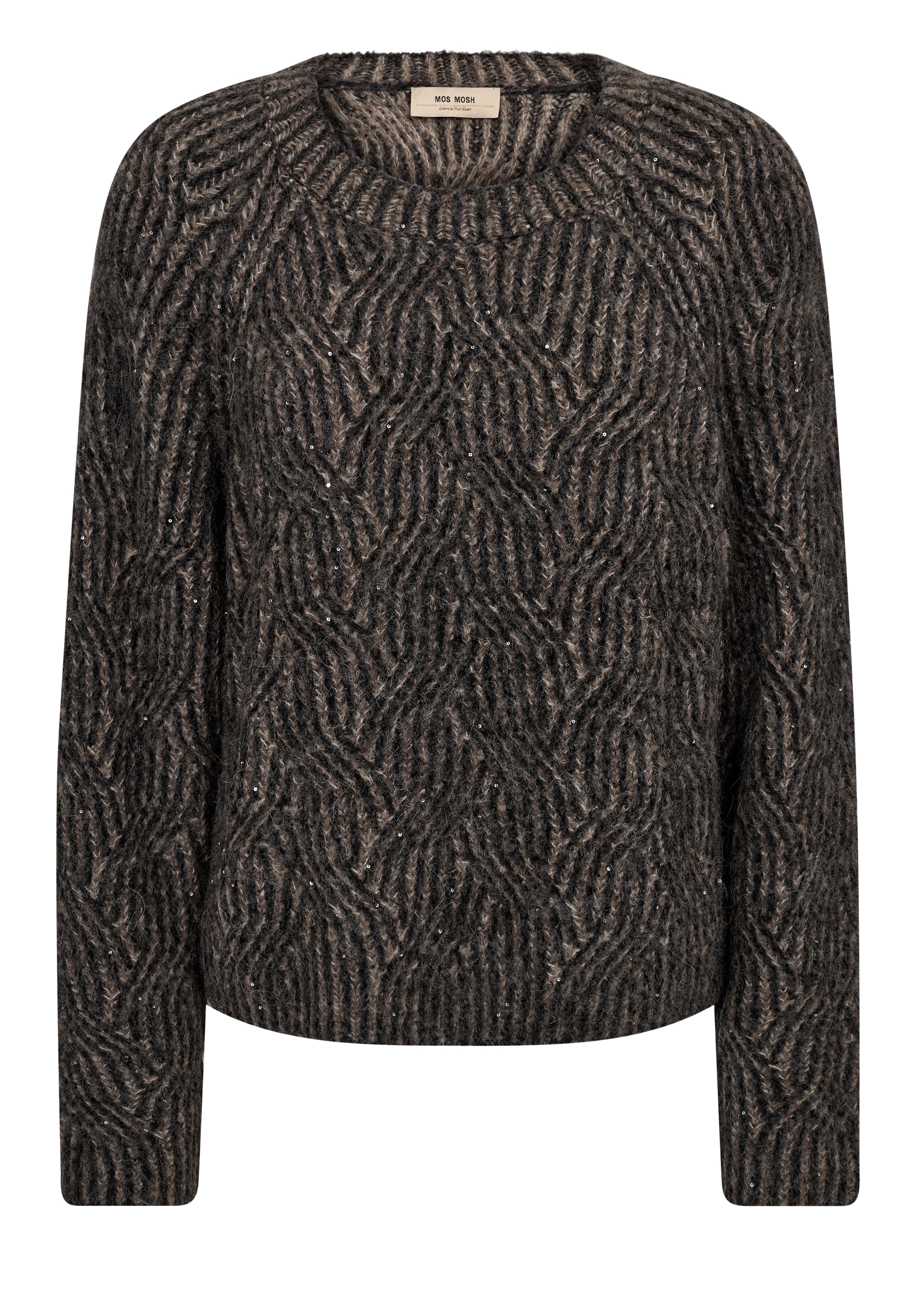 Der Pullover von MOS MOSH im Relaxed Fit vereint Komfort und Glamour. Mit wellenförmigem Strickmuster, dezent besetzten Pailletten und klassischem Rundhalsausschnitt verleiht er jedem Look eine stilvolle, verspielte Note.