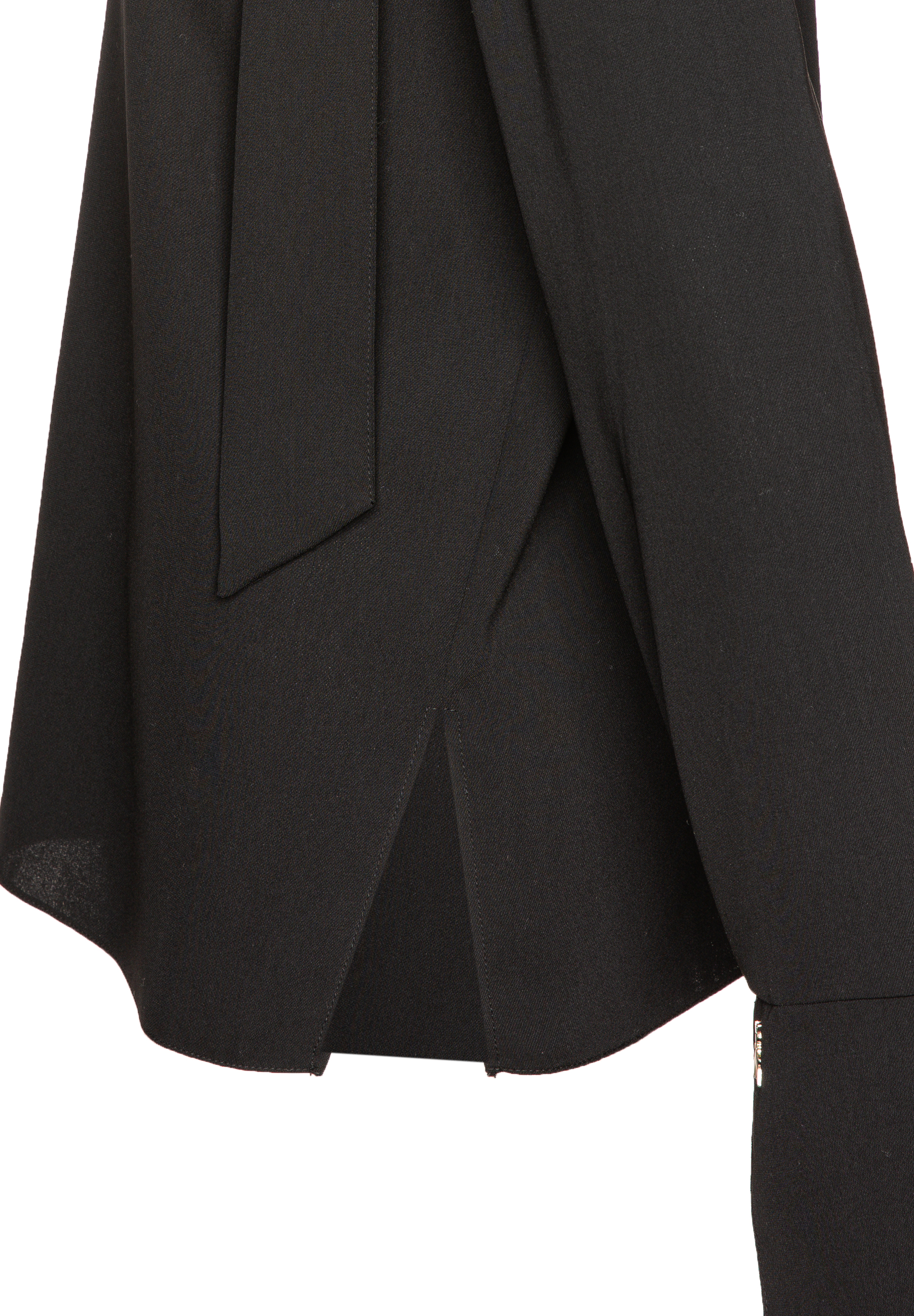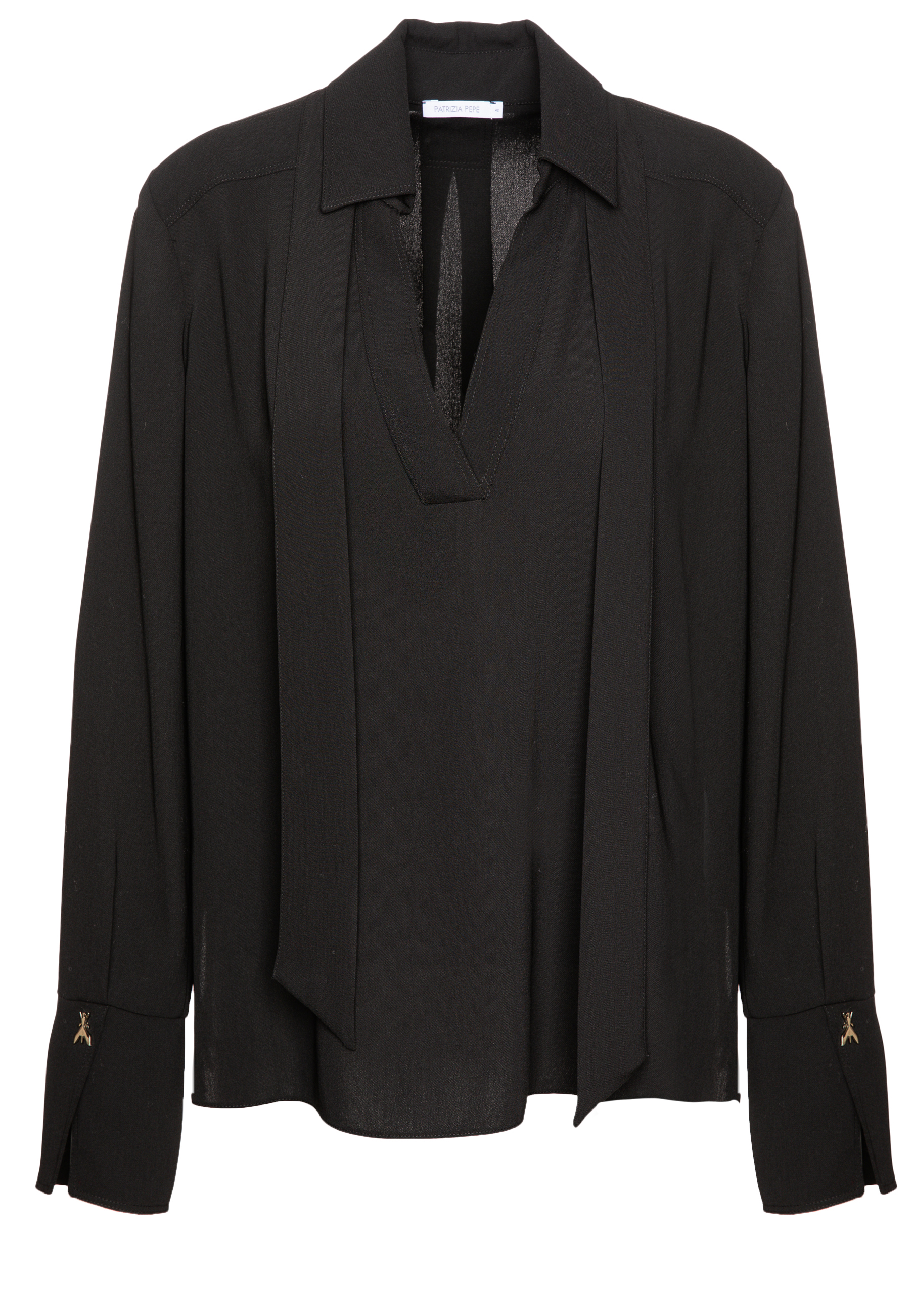Die langärmelige Bluse von PATRIZIA PEPE überzeugt mit einem eleganten V-Ausschnitt und Hemdkragen, ergänzt durch eine abnehmbare Schärpe für vielseitige Styling-Optionen. Der doppellagige Crêpe sorgt für ein strukturiertes Design und eine weich fließende Passform, während markante Nähte Schultern und Ausschnitt betonen. Lange Ärmel mit Fly-Logo an den Manschetten runden den modernen, Casual-Glam Look perfekt ab.