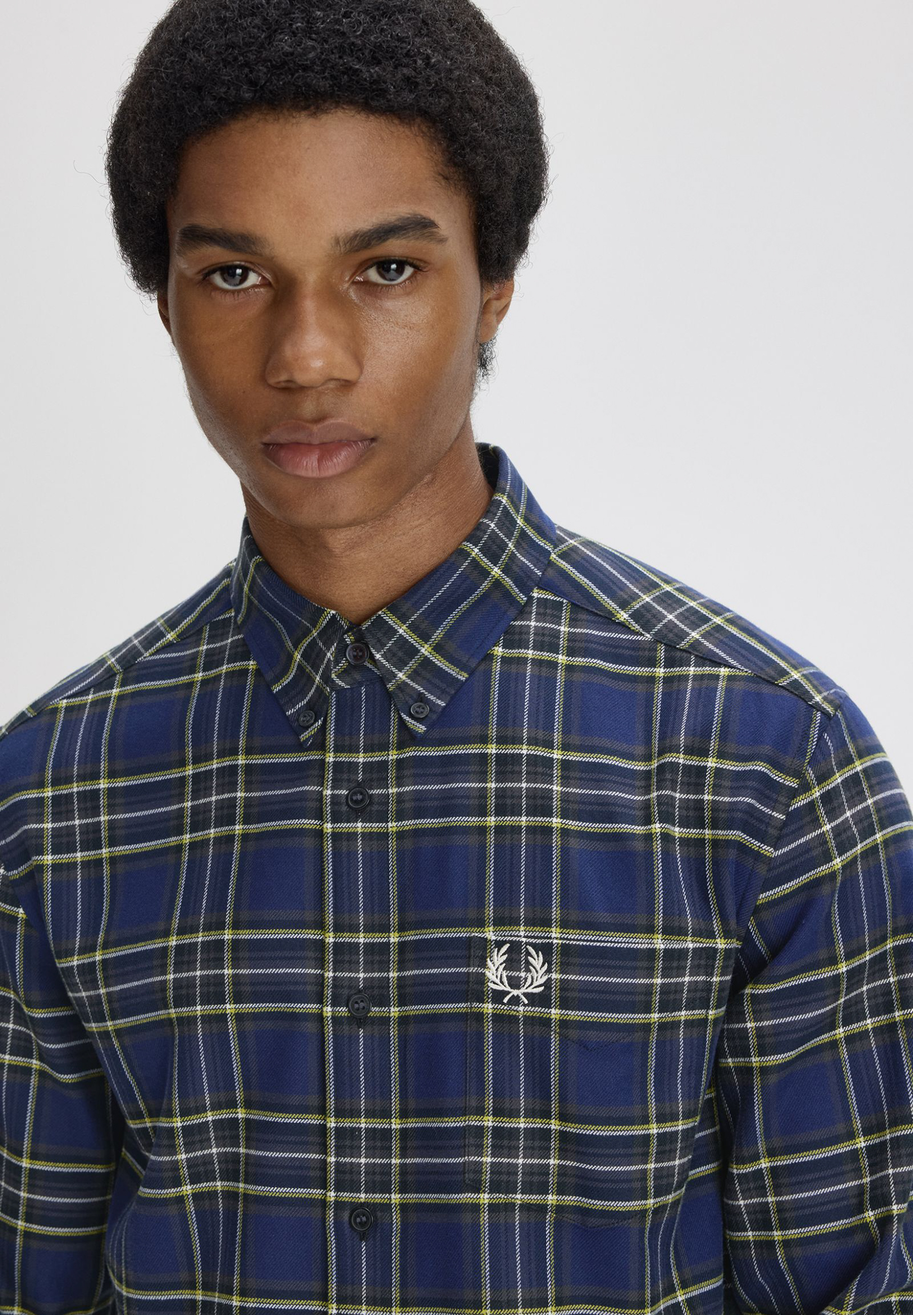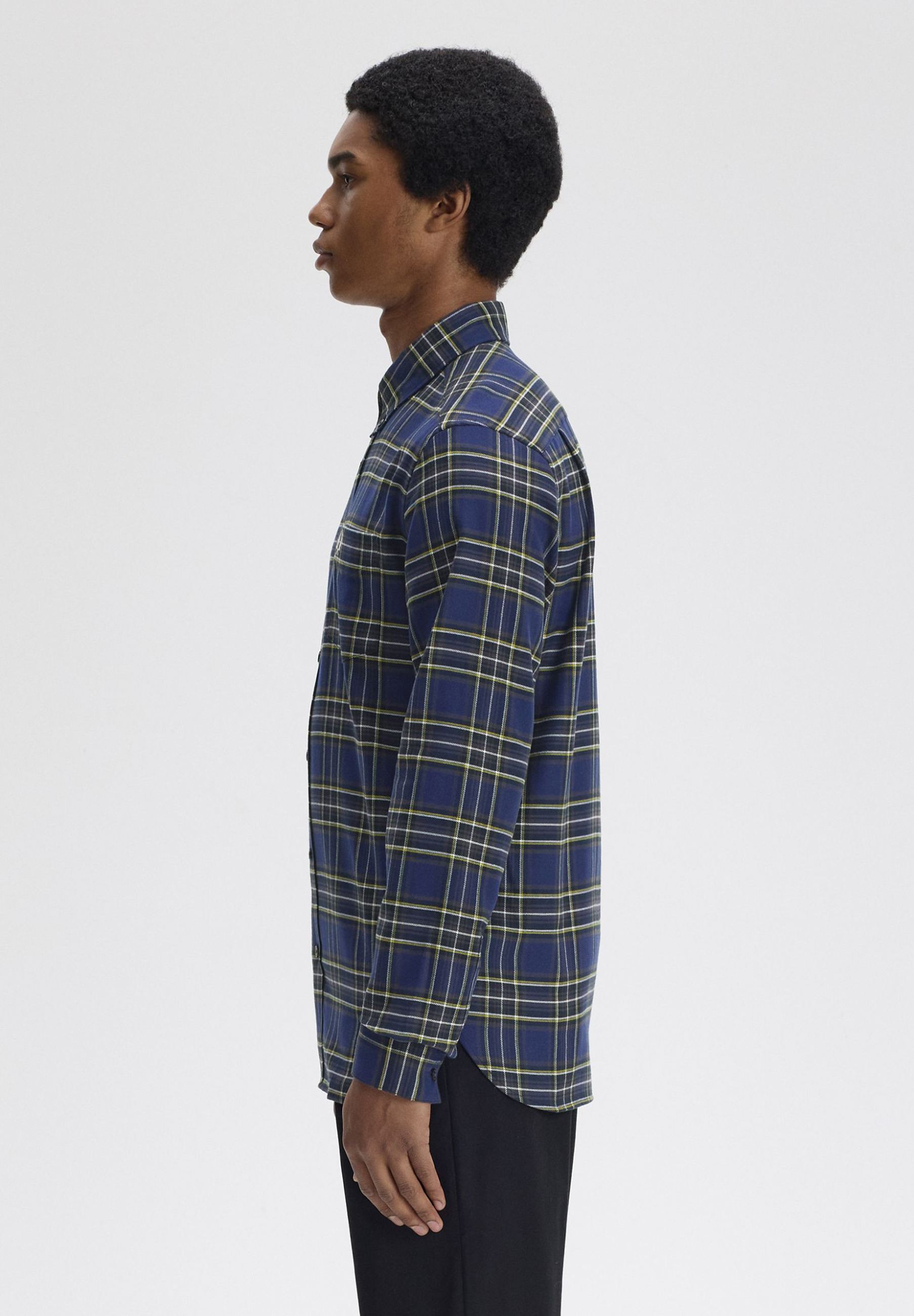 Unser Button-down-Hemd aus Schottenkaro und elegantem Baumwolltwill mit gebürsteter Oberfläche sorgt für einen weicheren und wärmeren Tragekomfort.