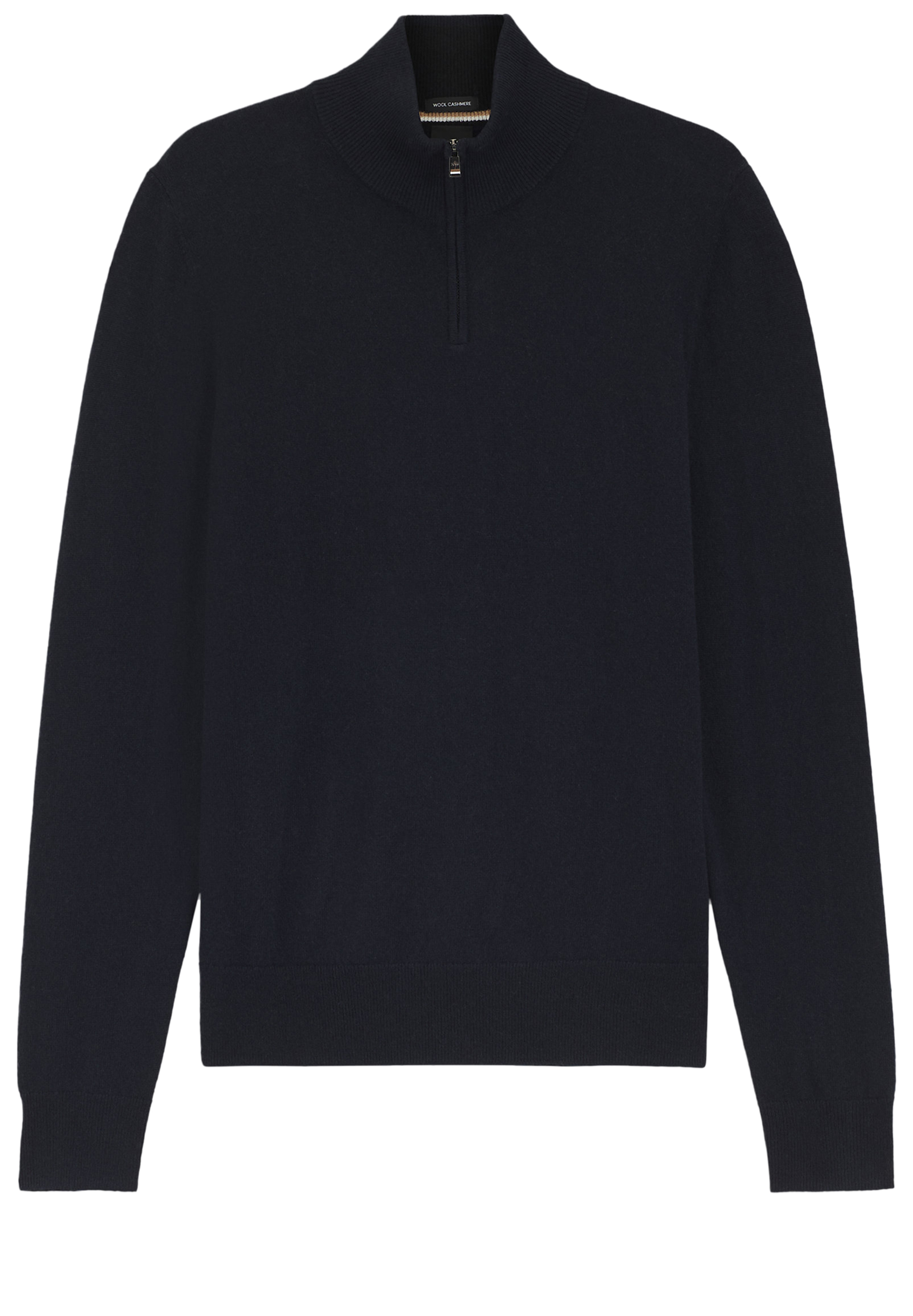 Der gerade geschnittene BOSS Pullover aus einem Woll-Mix mit Kaschmir-Anteil ist ein luxuriöser Layer. Troyerkragen mit kontrastfarbener Innenseite.