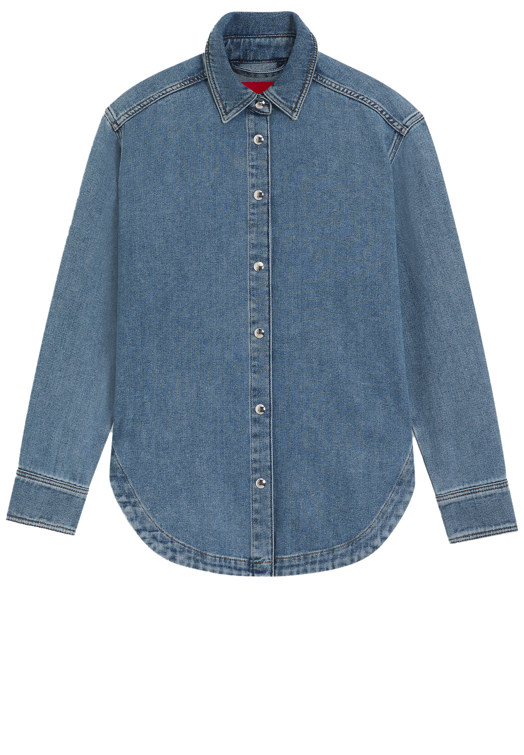Dieses HUGO Hemd aus blauem festem Denim verpasst deinen Casual-Looks ein Update. Mit Druckknöpfen in glänzend polierter Optik.