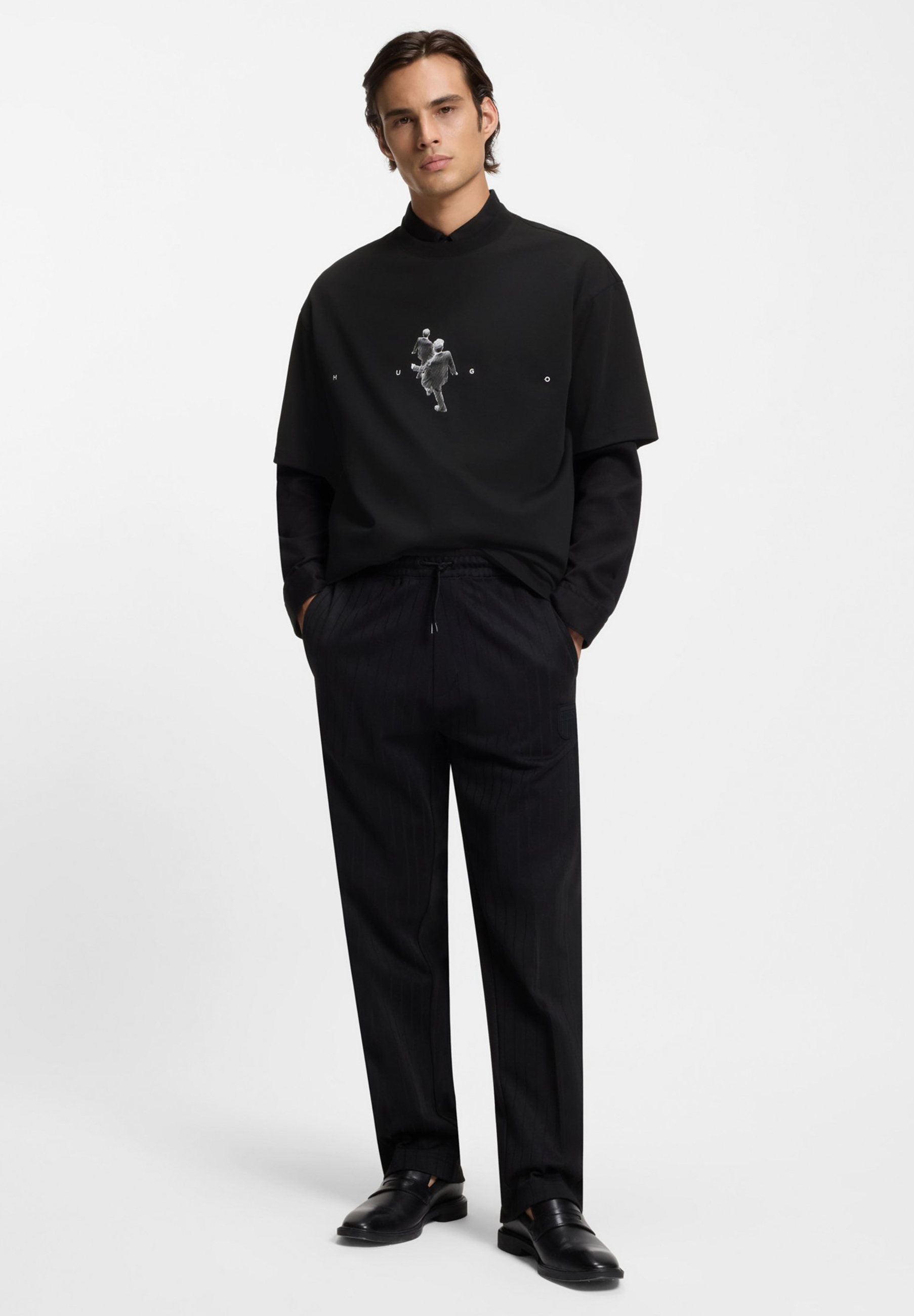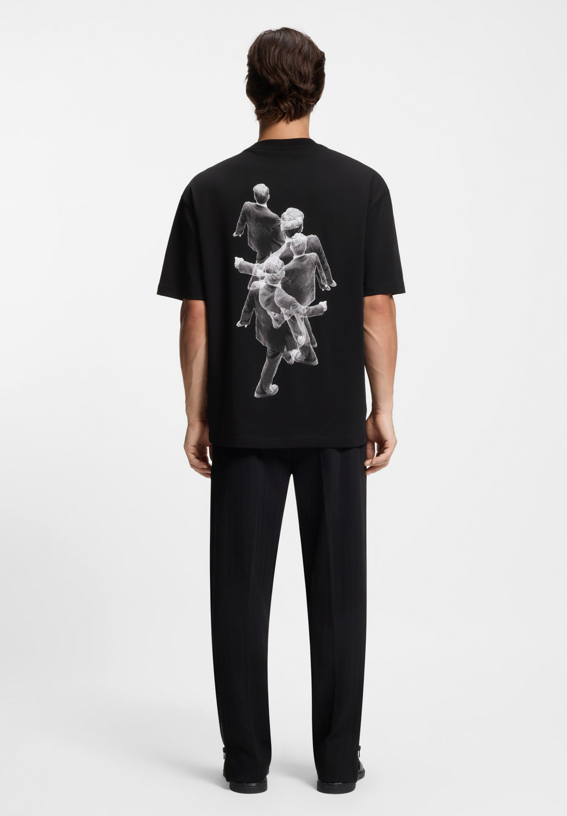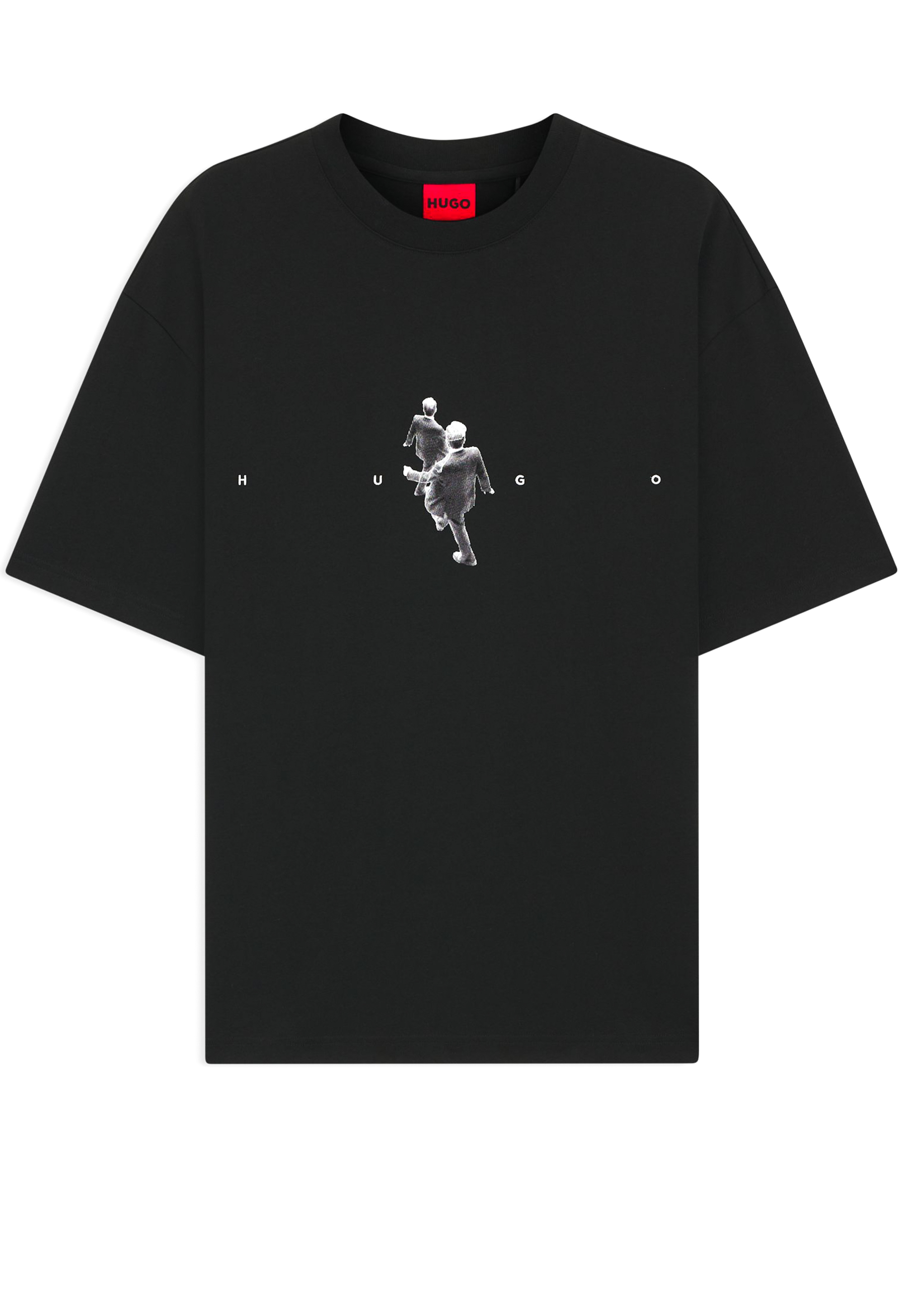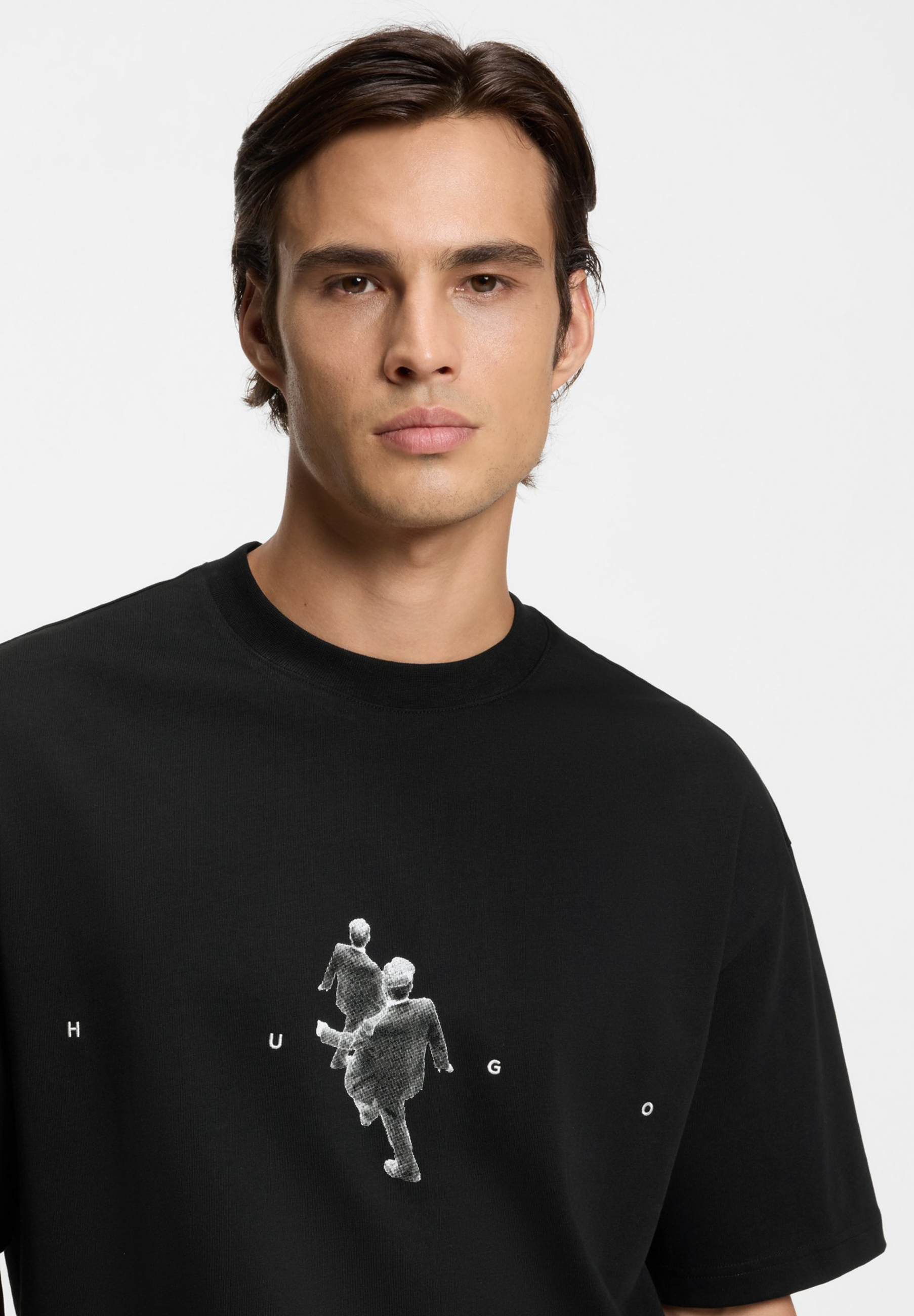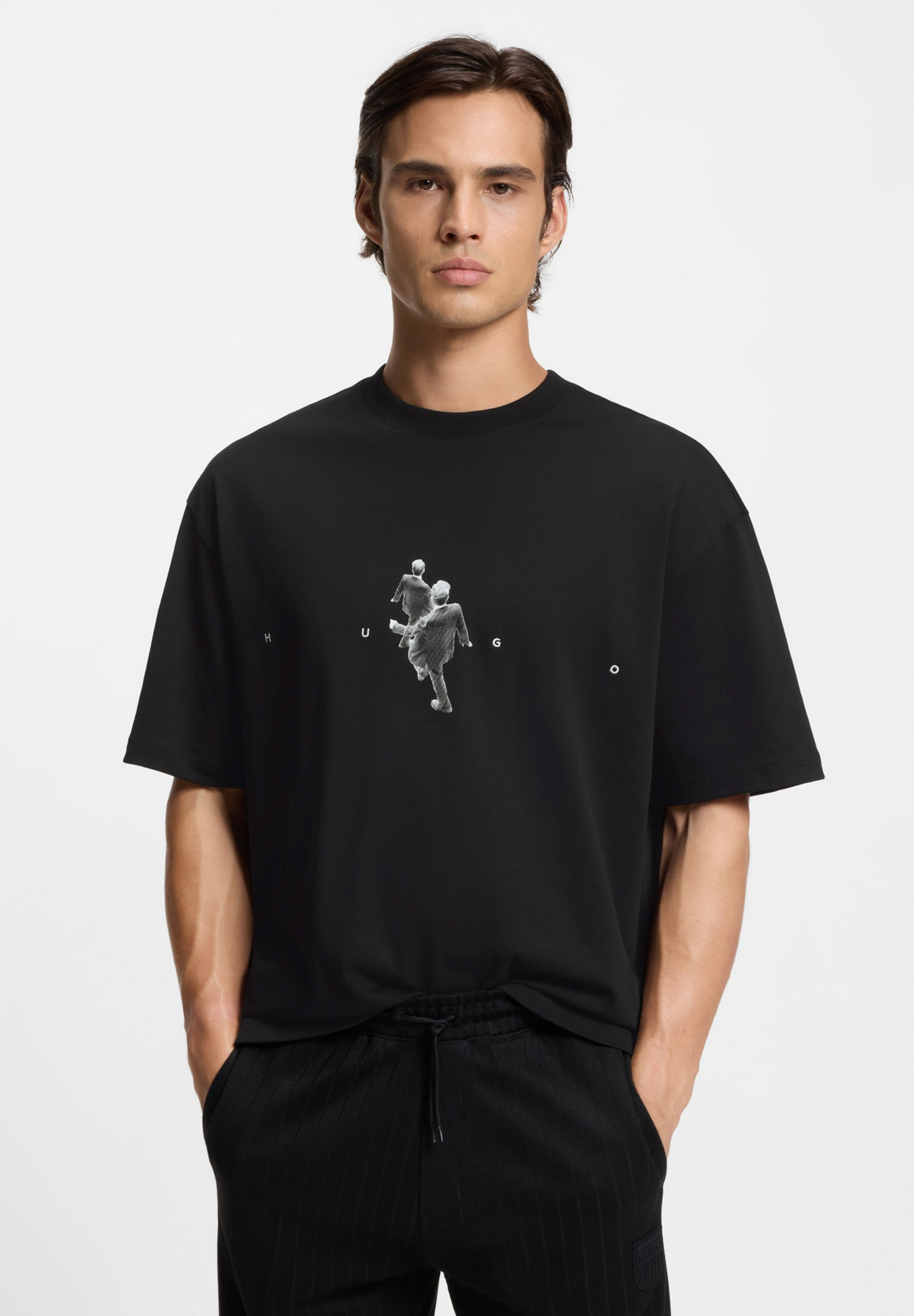 Das HUGO T-Shirt kombiniert ein Logo mit einem Statement-Artwork auf Vorder- und Rückseite und verleiht so Casual-Looks mehr Dimension. Softer Baumwoll-Jersey. Oversize-Passform.