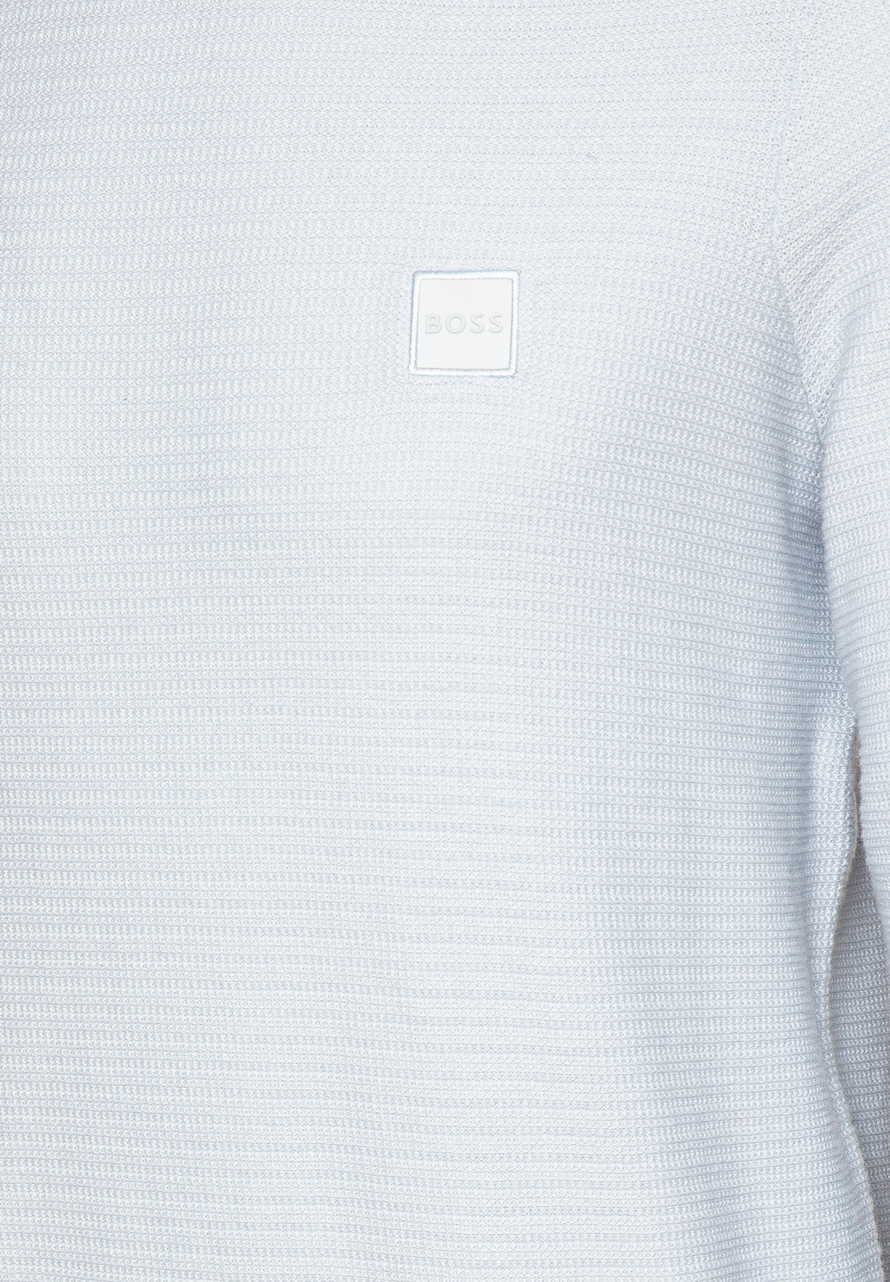 Der BOSS Pullover aus einem weichen Baumwoll-Mix mit edlem Kaschmir-Anteil ist mit einer charaktervollen Struktur gestrickt. Logo-Aufnäher auf der Brust. Gerade Passform.