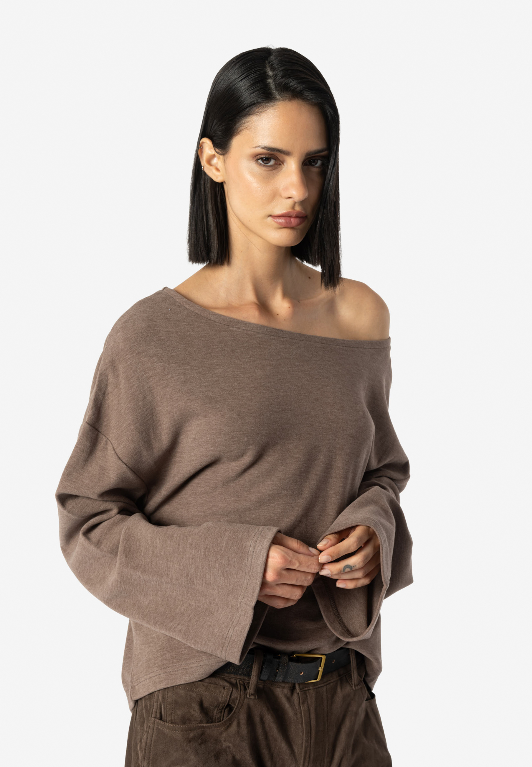 • Ärmel in ausgestellter Silhouette