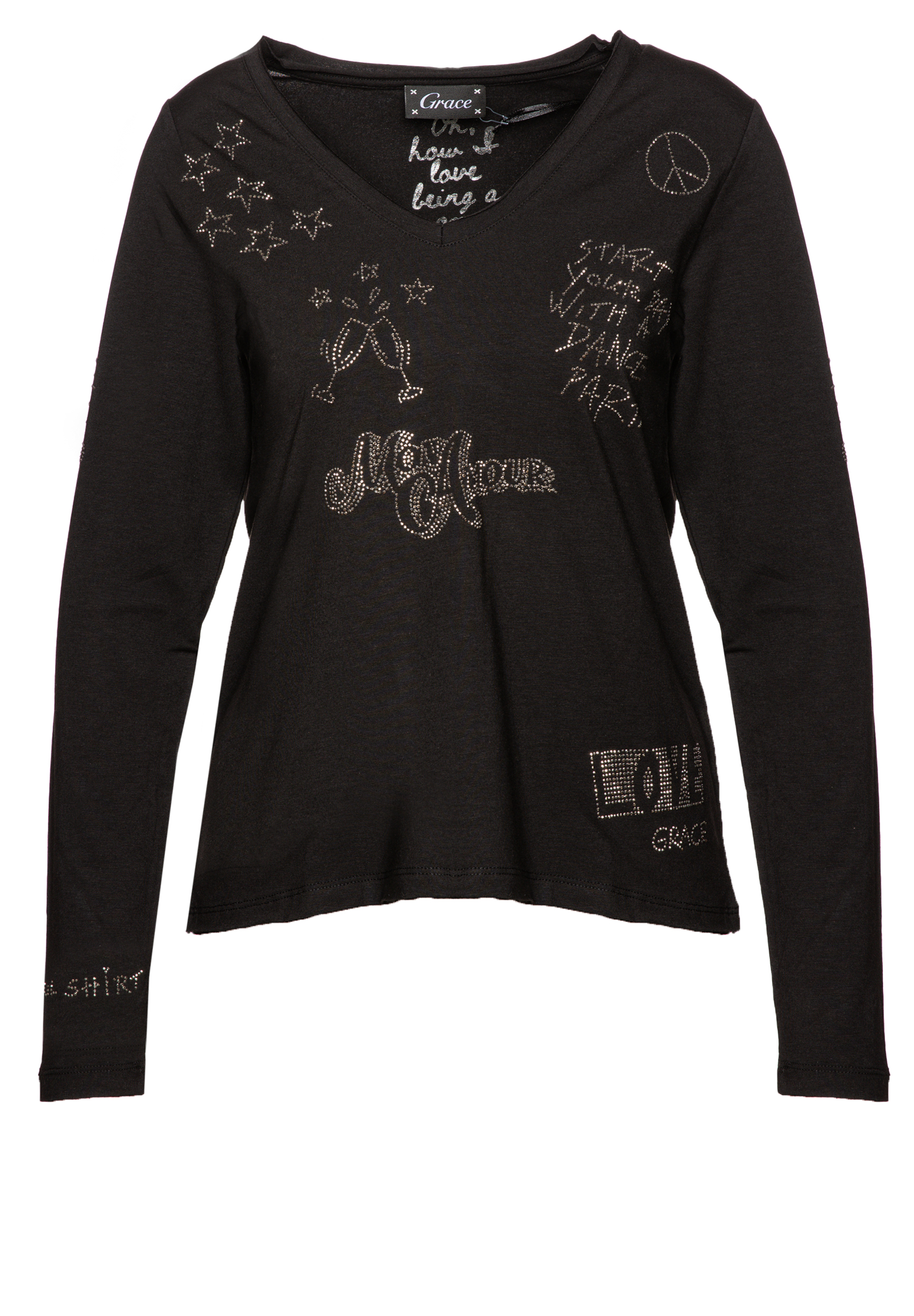 GRACE Langarmshirt Mon Amour mit Glitzer-Details