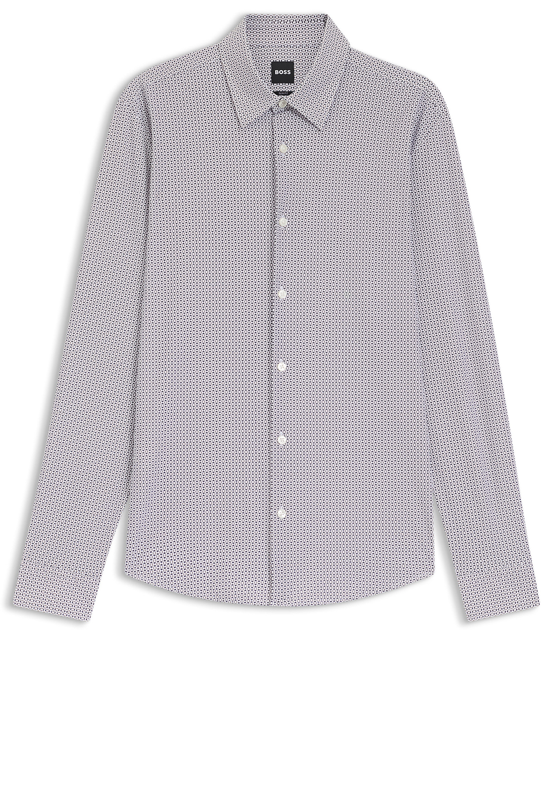 Das BOSS Hemd mit cleaner Passform und dezentem Print verleiht jedem Look das gewisse Etwas. Komfortabler Performance-Stretch-Jersey