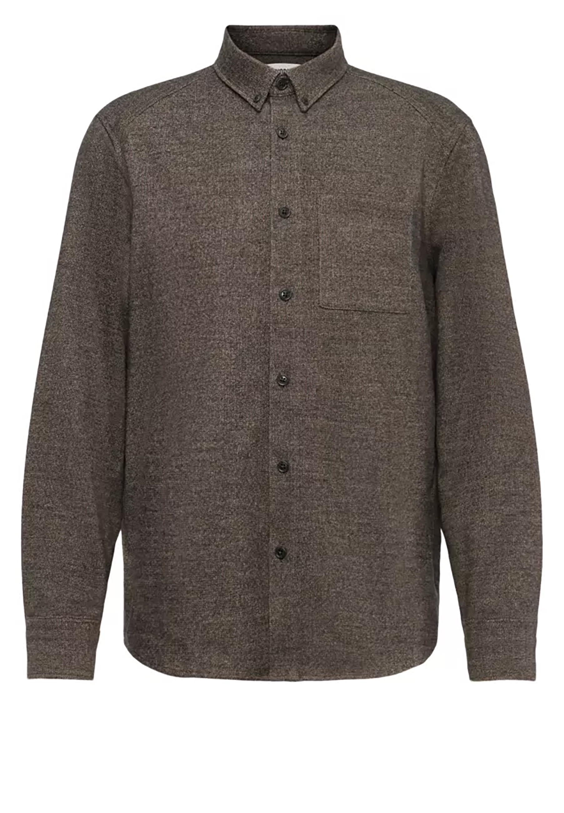 Ein klassisches Langarmhemd mit Button-down-Kragen und aufgesetzter Brusttasche. Die klare Silhouette wird durch eine durchgehende Knopfleiste und dezente Manschetten ergänzt. Die strukturierte Verarbeitung verleiht dem Design eine moderne Note.
