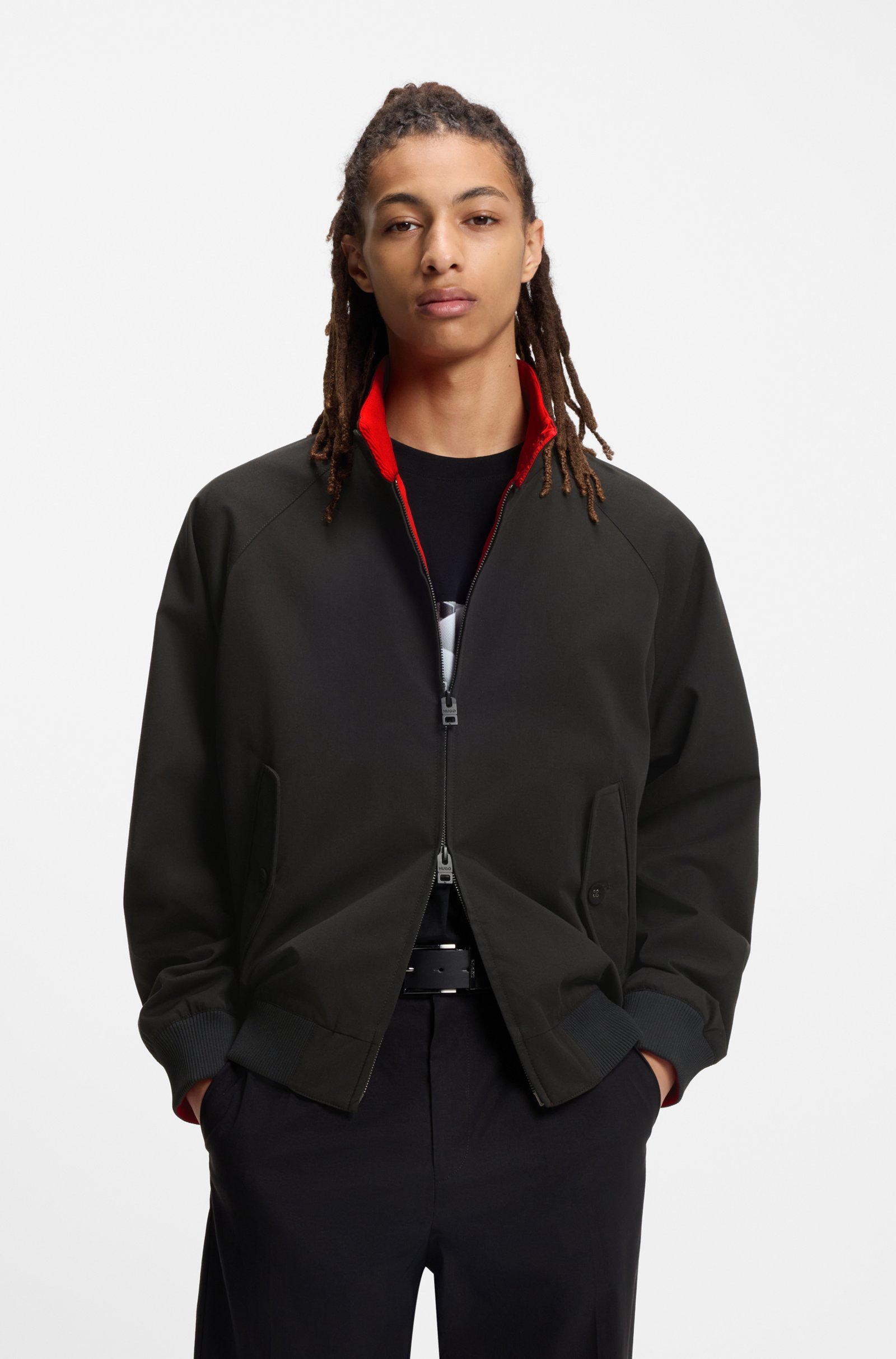 Diese HUGO Menswear Bomberjacke ist ideal für saisonales Wetter und ist in wasserabweisenden Twill mit Baumwolle geschnitten. Gestrickte Besätze. Logo-Aufhängerschleife. Kontrastfutter.