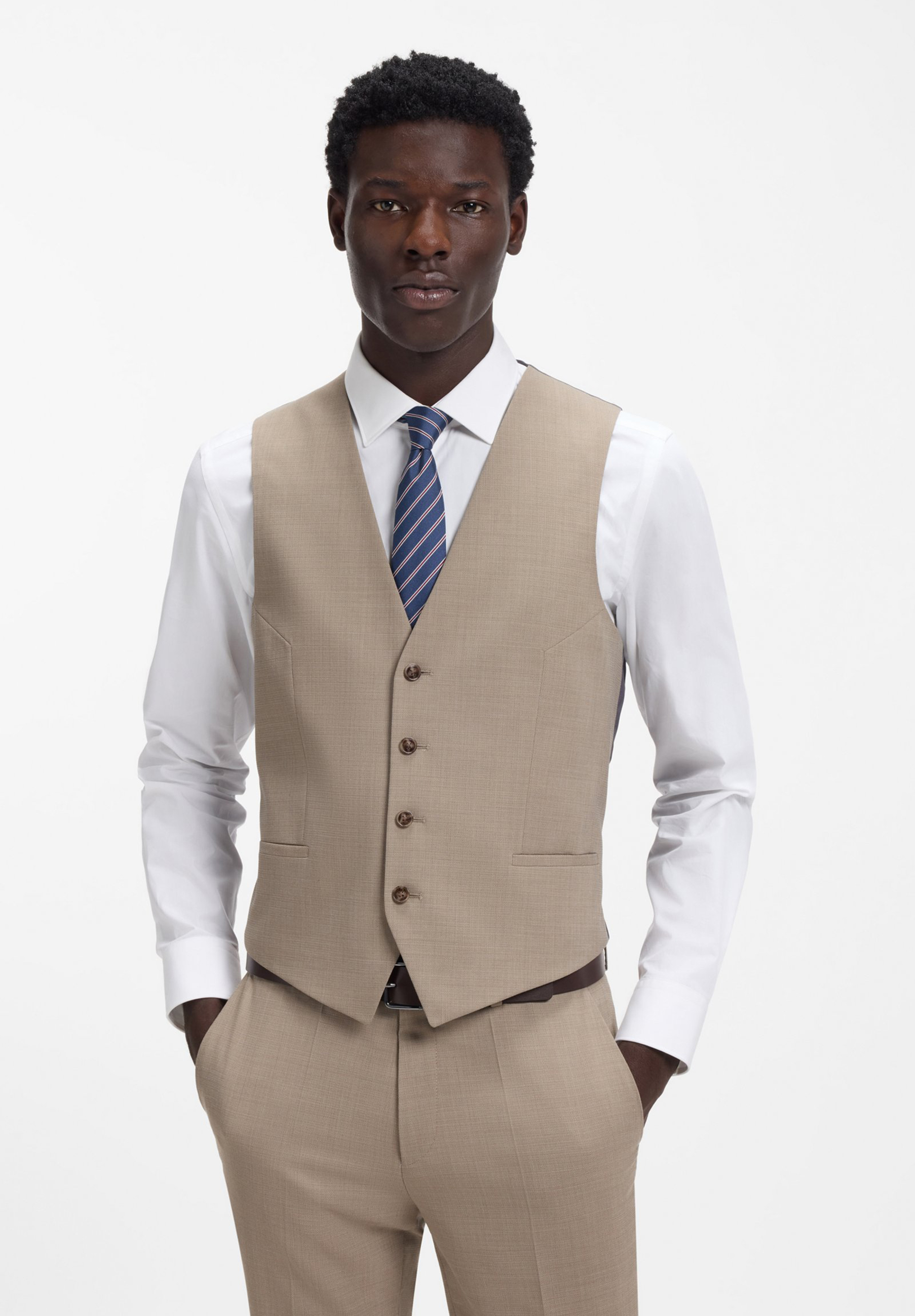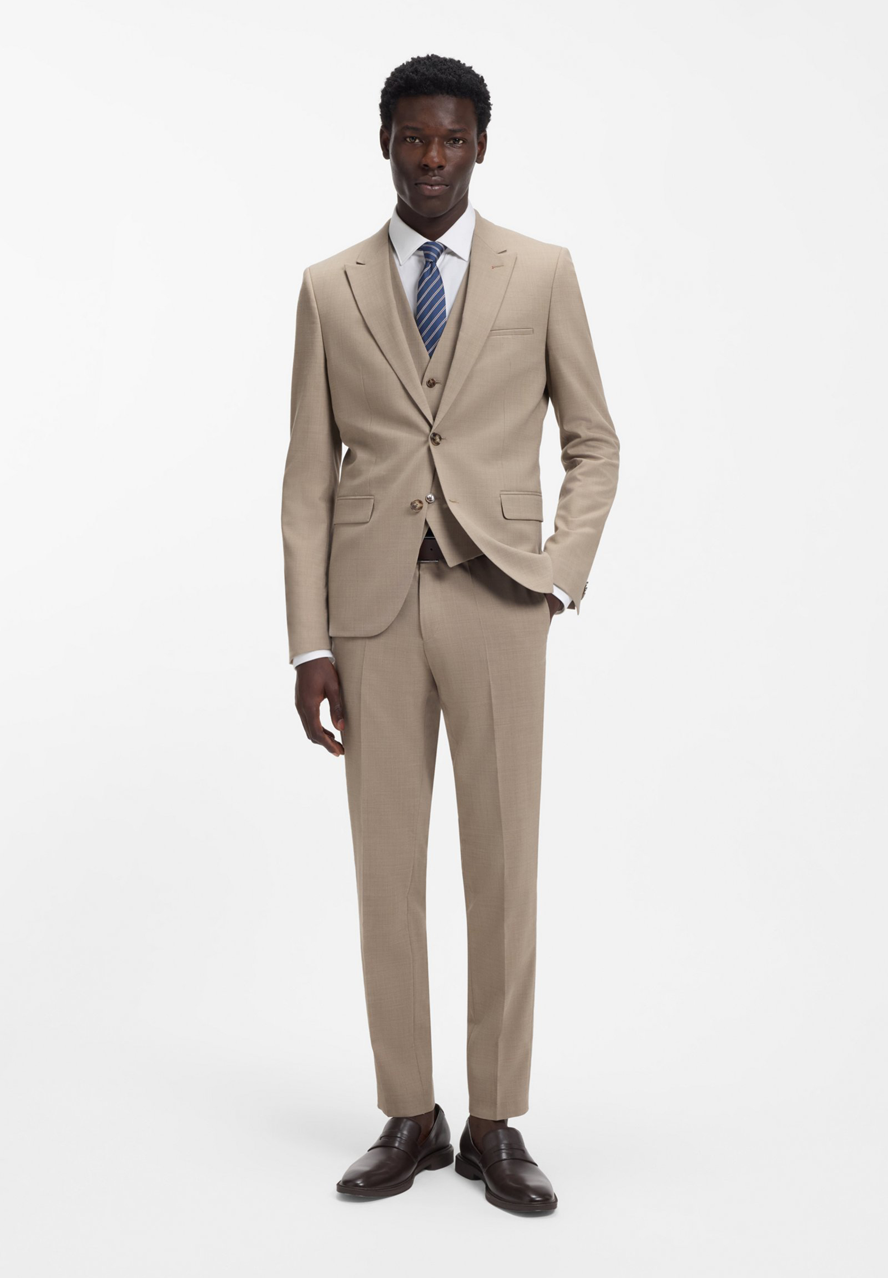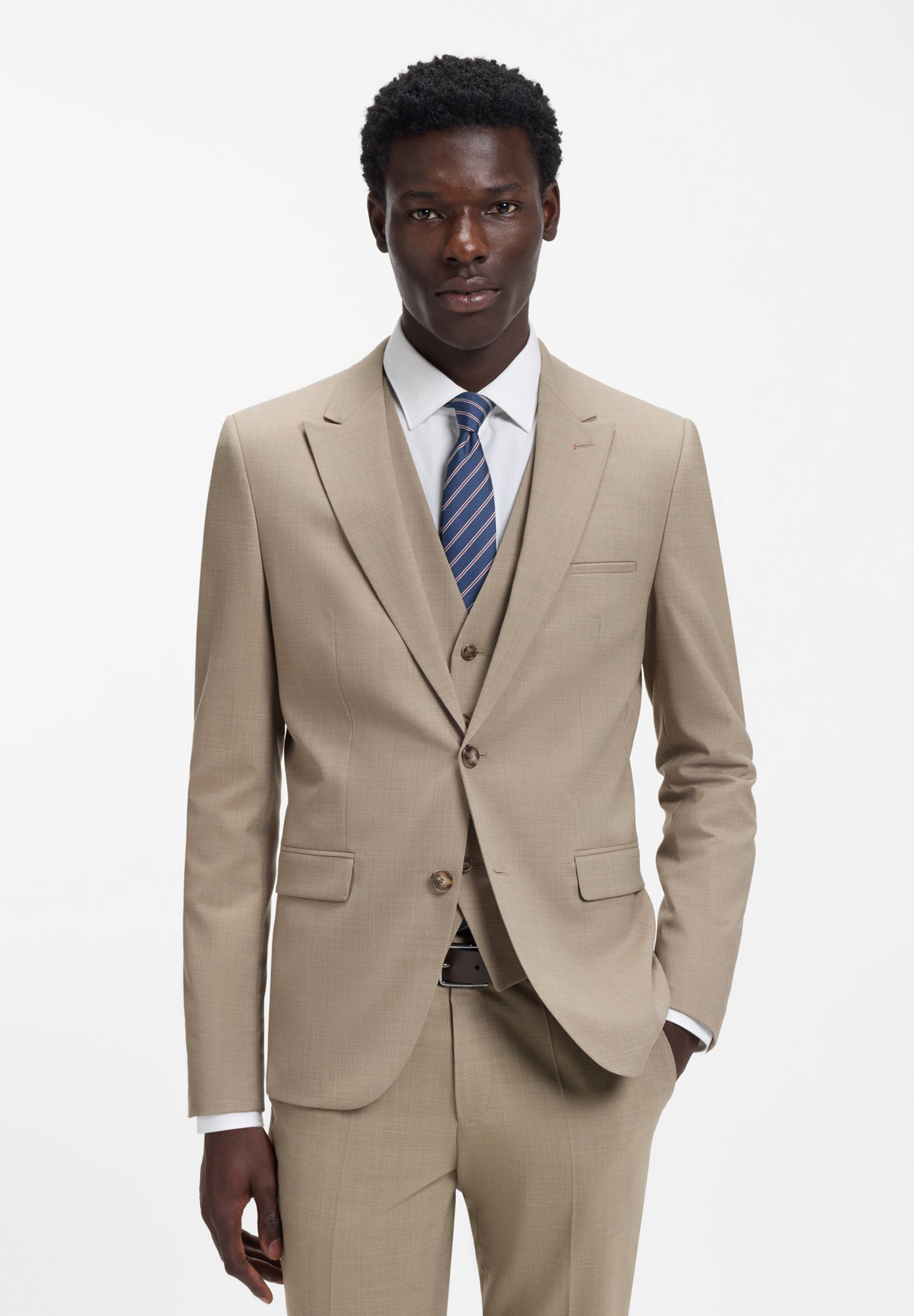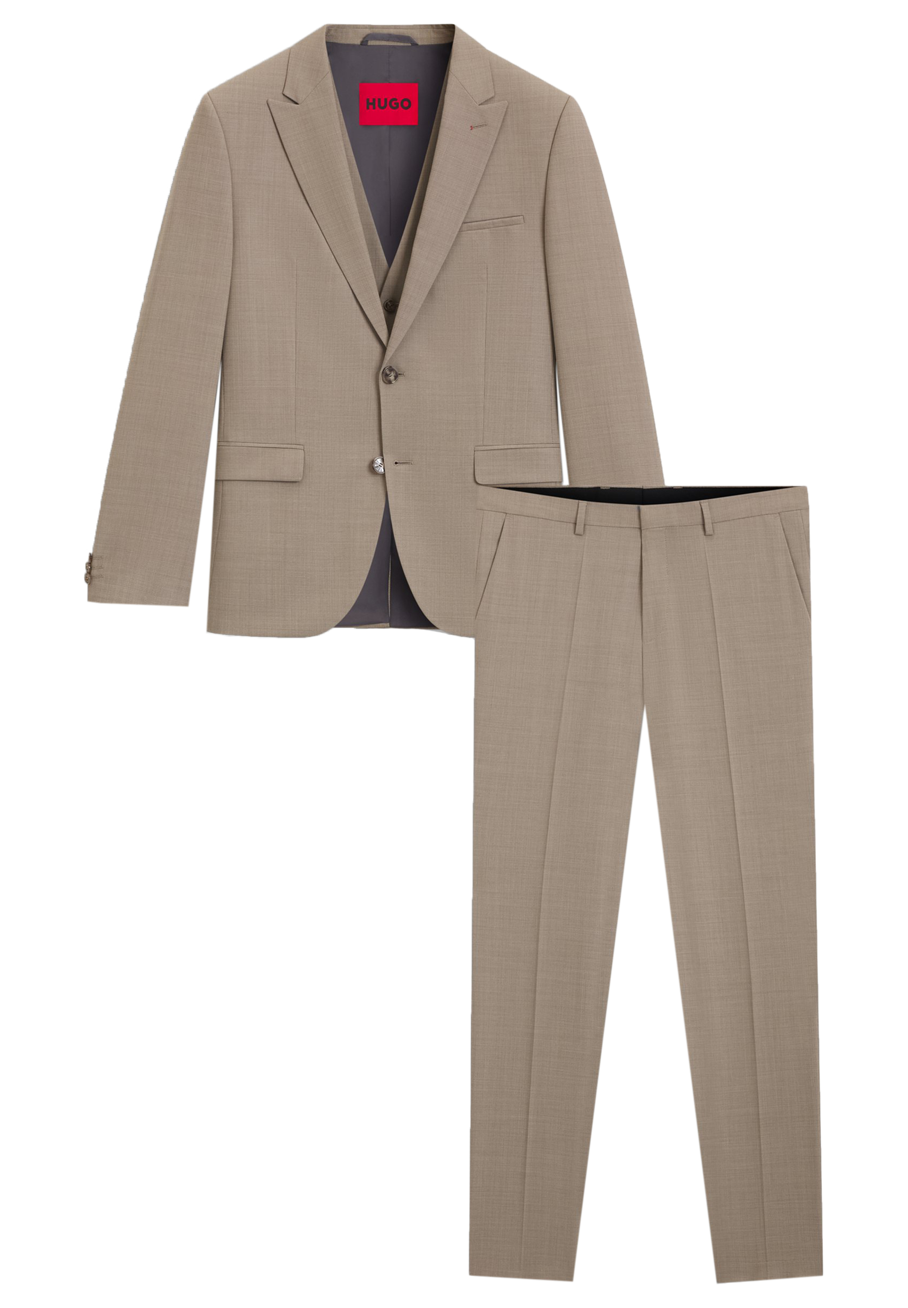 Der extra schmal geschnittene HUGO Dreiteiler ist ideal für formelle Anlässe. Aus Stretch-Dobby mit hochwertiger Schurwolle.