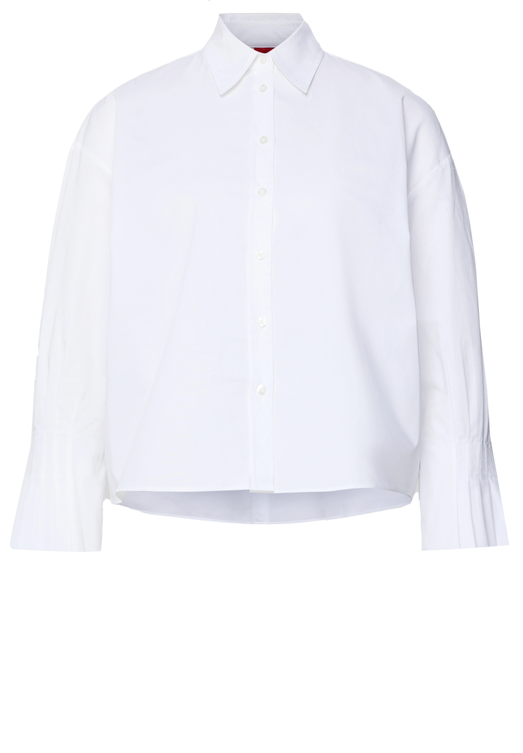 Die Damen Hemdbluse von HUGO, Modell 'Eggy', zeichnet sich durch ihre klassische Regular-Fit Passform aus und sorgt so für ein angenehmes Tragegefühl im Alltag. Gefertigt aus glatter Popeline im Baumwoll-Mix, liegt sie leicht auf der Haut. Dezente Raffungen am Armabschluss setzen einen feinen Akzent und unterstreichen die schlichte Optik.