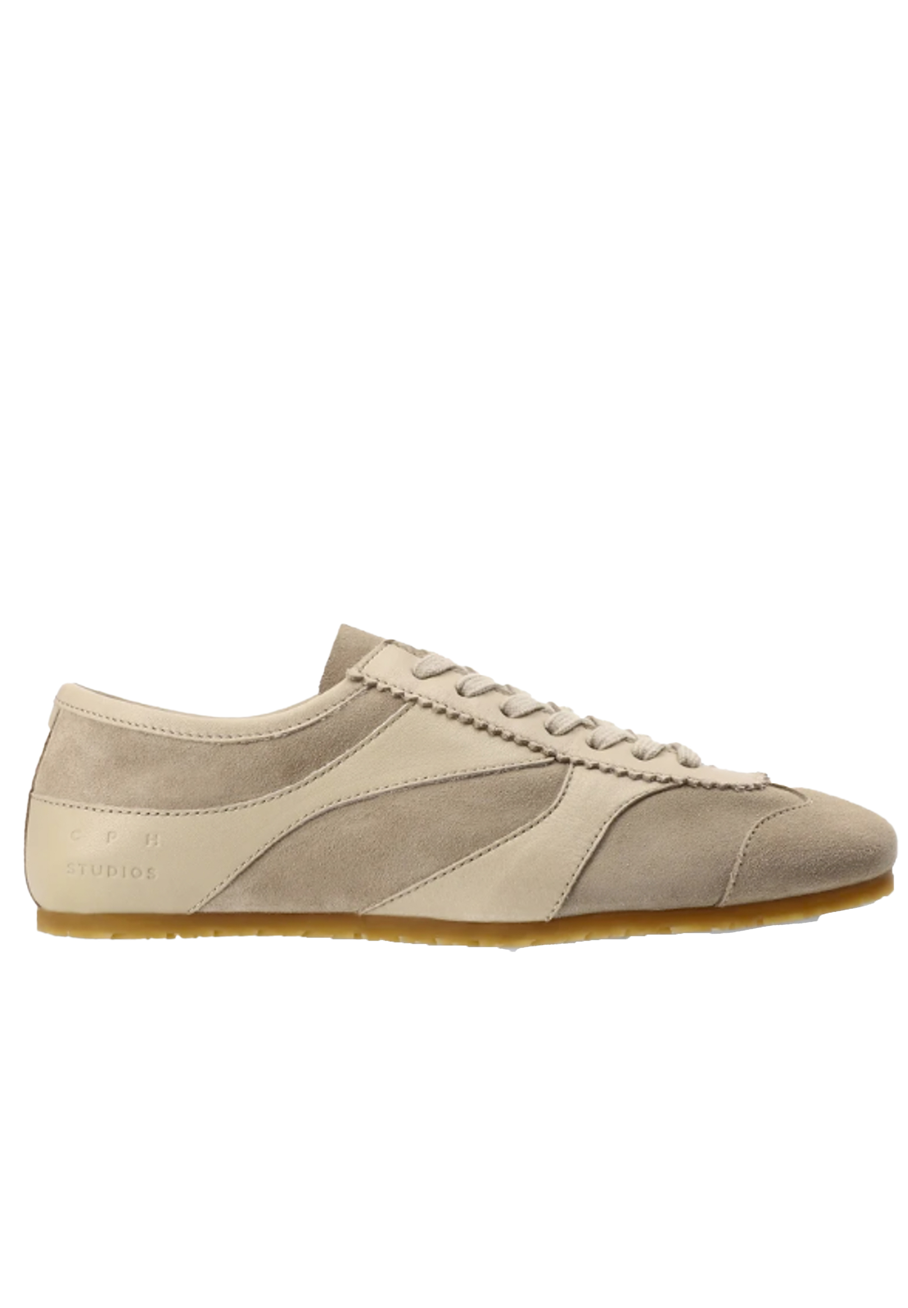 Der Copenhagen Studios CPH717 Sneaker in Sand ist ein minimalistischer Allrounder mit Retro-Charakter und einer klaren, schlanken Linienführung – genau die Art von Sneaker, die du zu Jeans, Kleidern oder Tailored Pants tragen wirst. Das edle Zusammenspiel aus weichem Glattleder und Suede in warmem Sandton verleiht dem Schuh eine elegante, aber gleichzeitig entspannte Ausstrahlung. Feine Lederdetails und das dezente Logo auf der Außenseite setzen subtile Akzente, während die flache, flexible Sohle für sportlich-komfortables Tragegefühl sorgt. Diese Silhouette verbindet nordisch-reduziertes Design mit sommerlich-lässigen Vibes und macht den CPH717 zum Everyday-Essential.