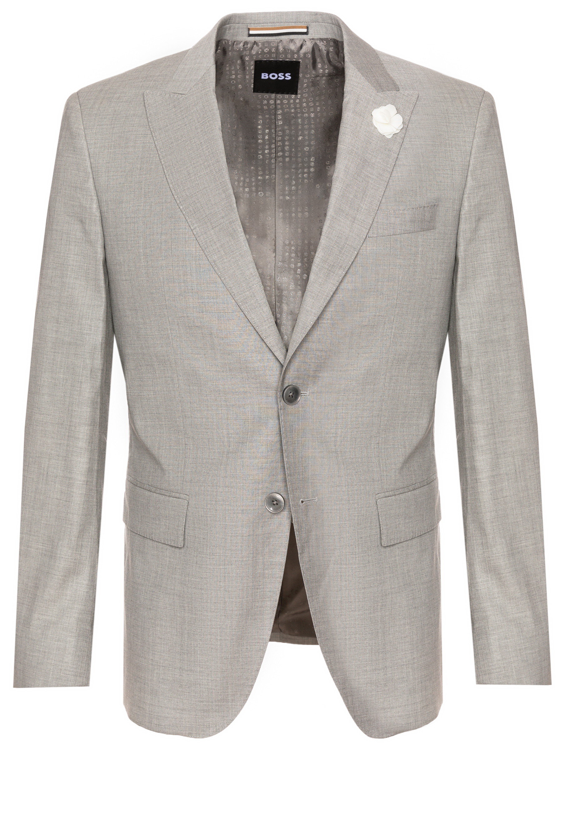 Mit einer schlanken Passform und einem dezenten Melange-Effekt ist dieser BOSS Menswear Sakko so einfach zu stylen. Wollmischung mit zusätzlichem Stretch. Moderne Spitzenreverse.
