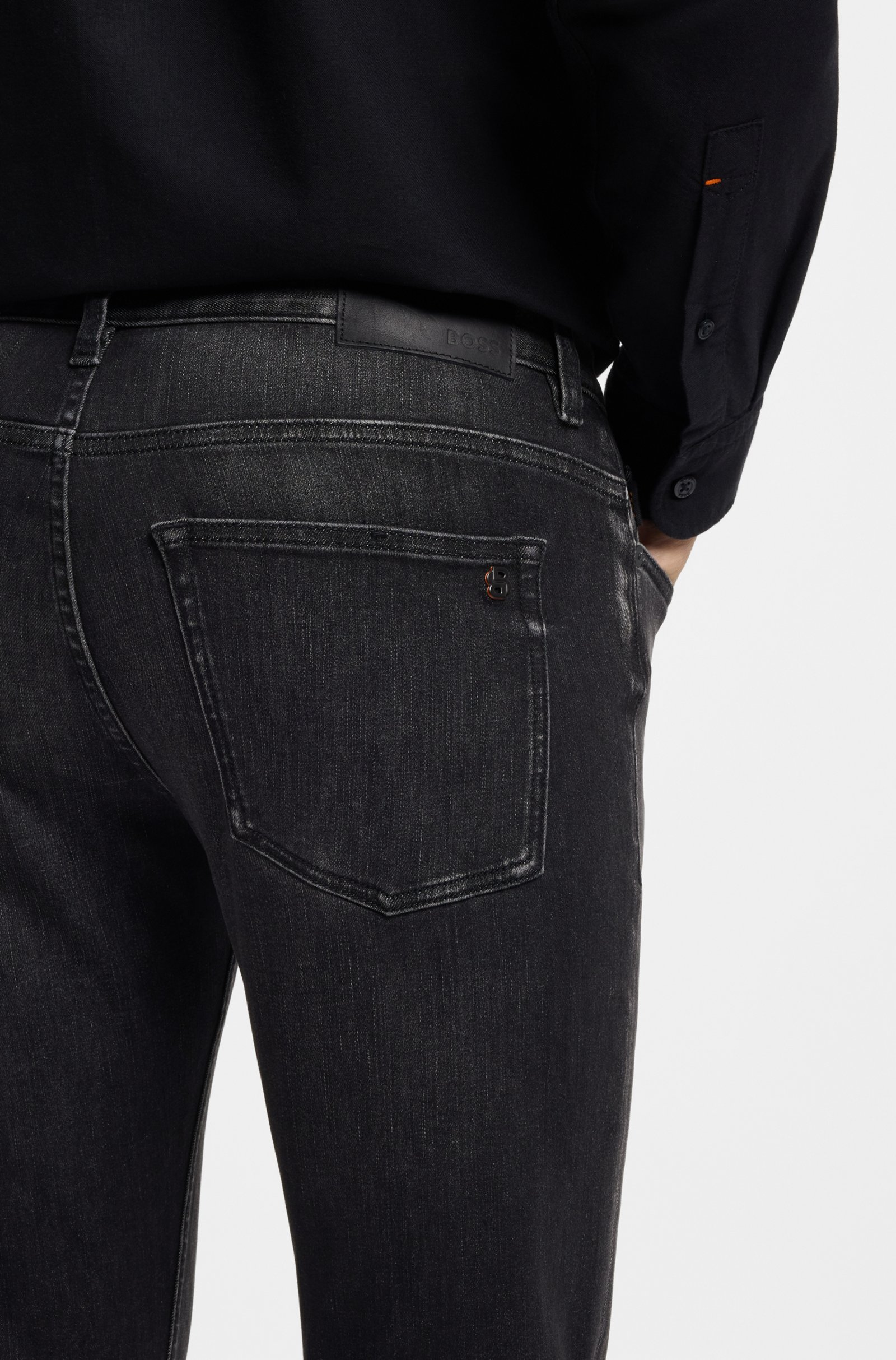 Die BOSS Jeans in verwaschenem Schwarz aus einem Baumwoll-Mix mit großzügigem Elasthan-Anteil verspricht optimale Bewegungsfreiheit. Zeitgemäße schmale Passform.