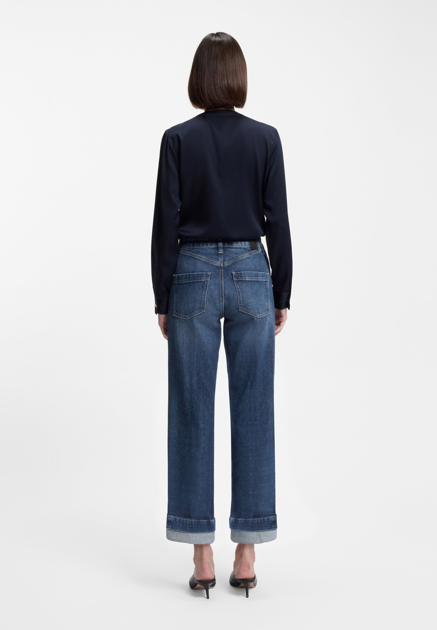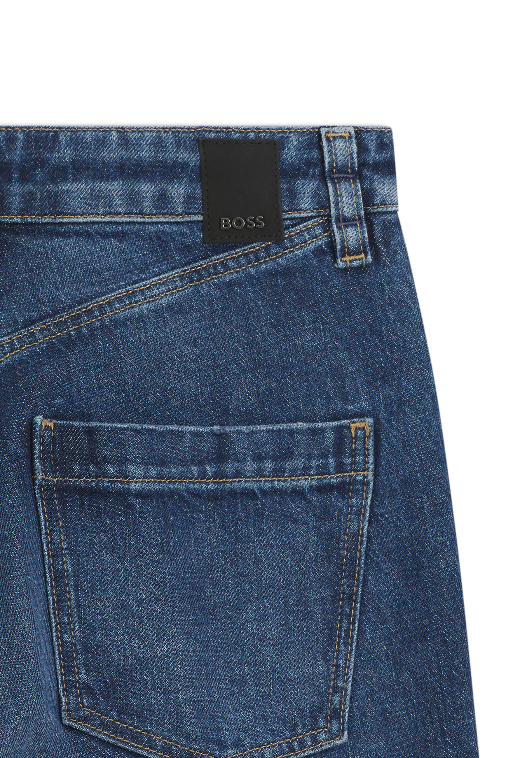 Die schmal geschnittene BOSS Jeans mit indigoblauer Waschung und tabakfarbenen Nähten ist ein authentischer Klassiker. Gerader Beinverlauf mit umgeschlagenen Hosensäumen. Komfortabler Stretch-Denim.