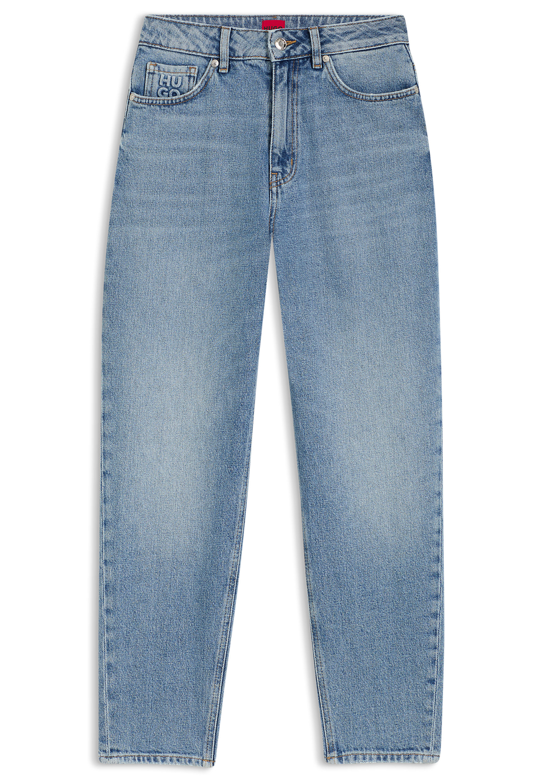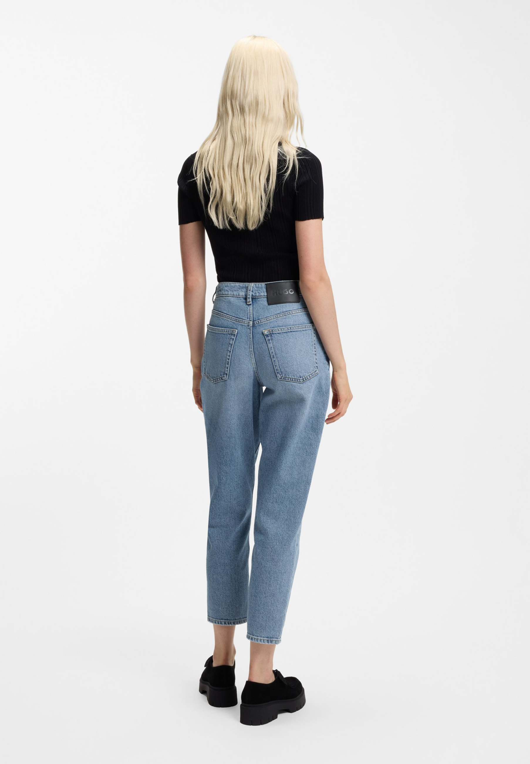Die HUGO Mom-Fit Jeans sorgt für einen zeitgemäßen Casual-Look. Komfortabler blauer Stretch-Denim mit natürlichem Falten-Effekt. Geprägtes Stack-Logo auf der Münztasche.