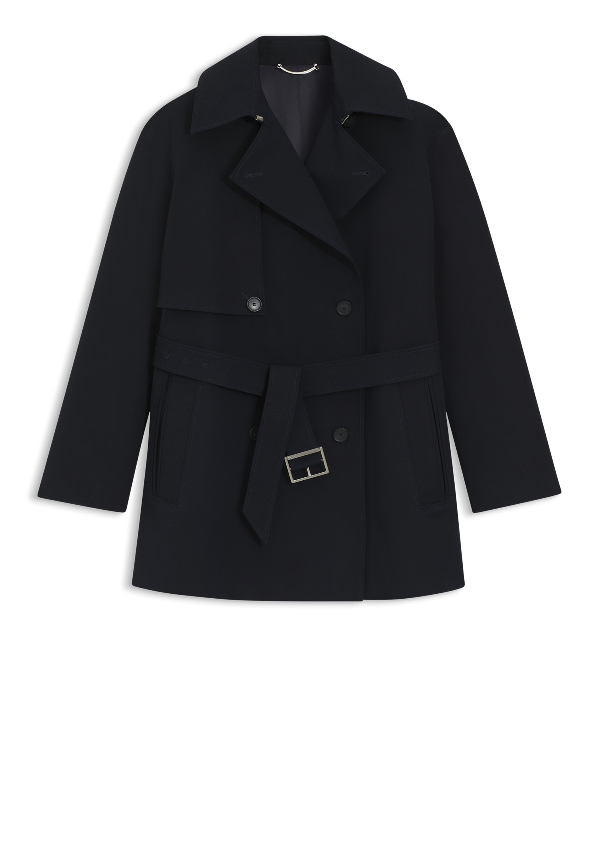 Trenchcoat neu aufgelegt: Der BOSS Mantel ist ein zeitgemäßes Must-have. Aus Baumwoll-Ottoman. Mit Logo-Schließe auf dem Taillengürtel.