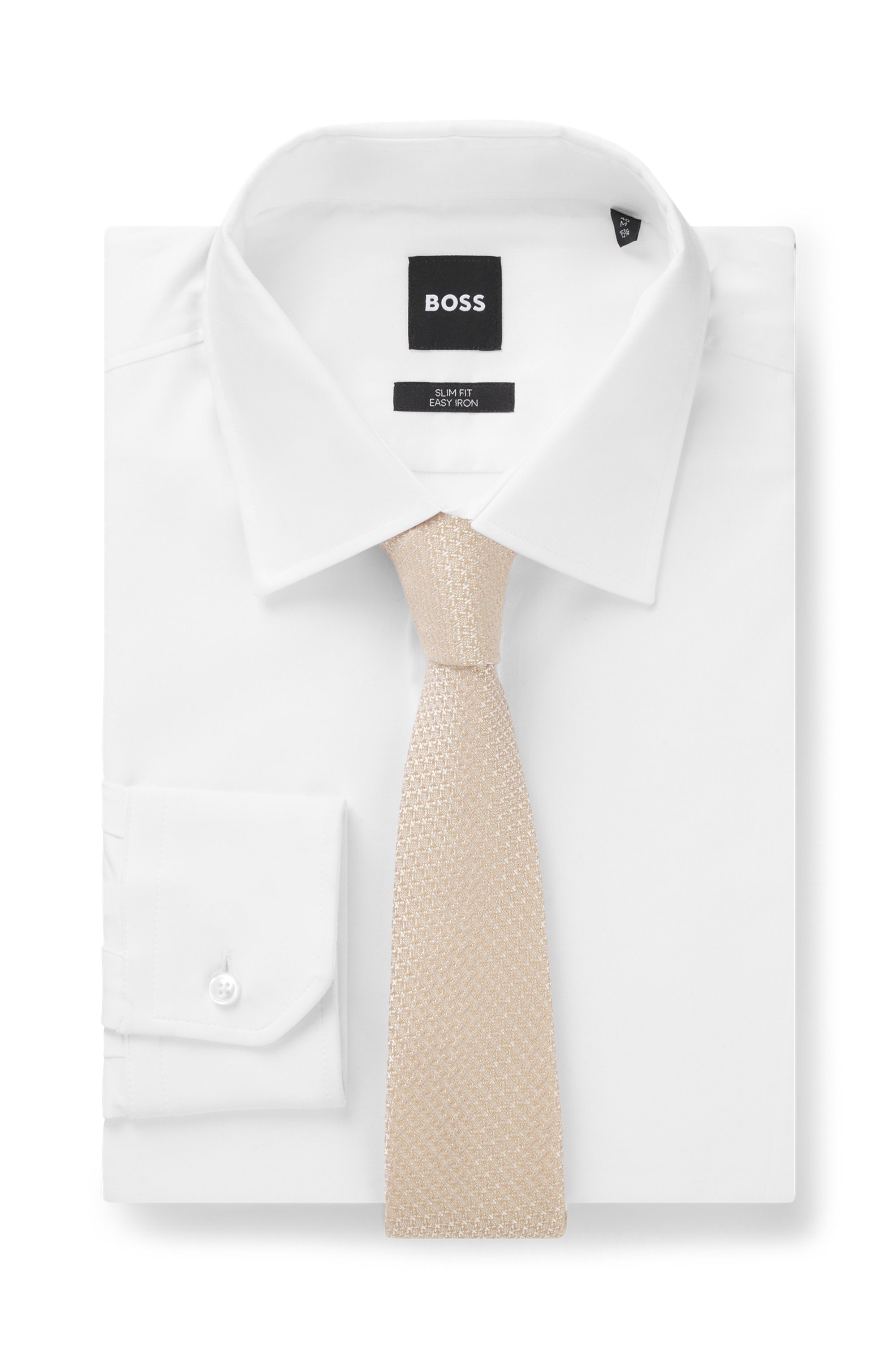Mit ihrer Jacquard-Struktur rundet diese Krawatte von BOSS Menswear jeden formellen Look ab. Hergestellt aus einer luxuriösen Baumwoll-Seiden-Mischung.